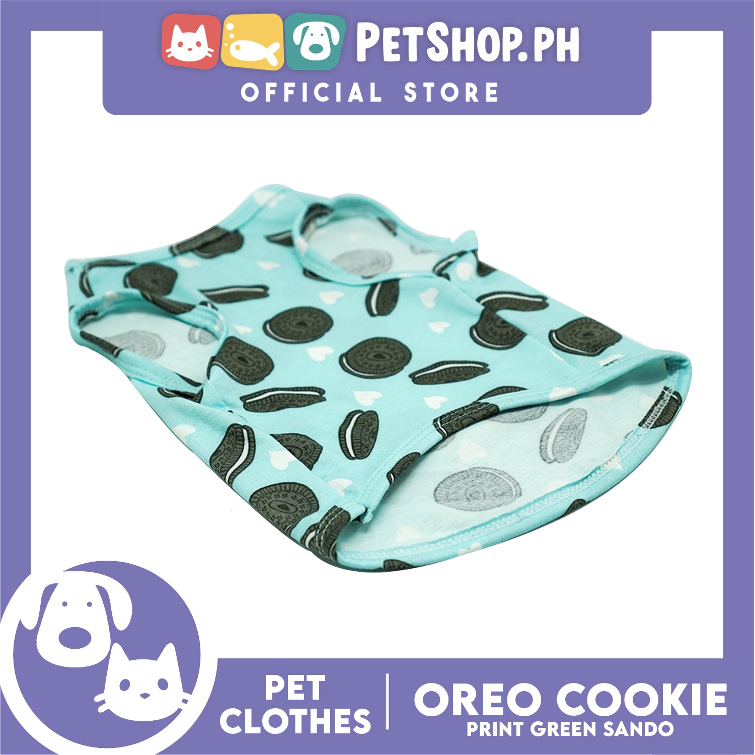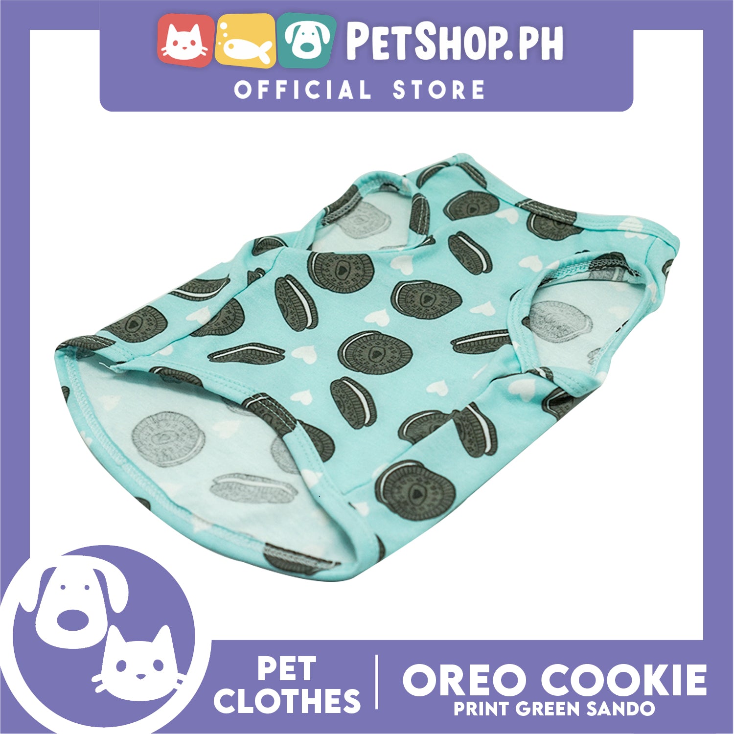 Pet Sando Cookie Print Design Mint Green Sando (Large) Pet Shirt for Puppy, Small Dog