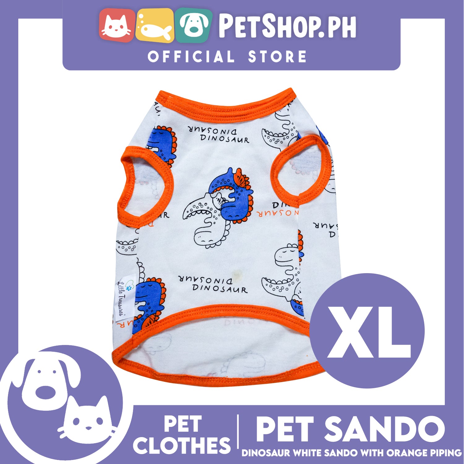 Pet Sando Dinosaur White with Orange Piping Sando (Extra Large) Perfect Fit for Dogs and Cats
