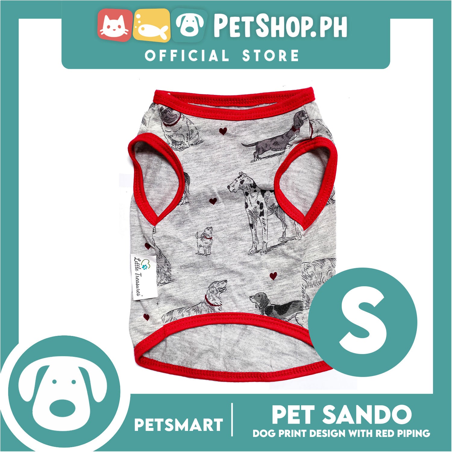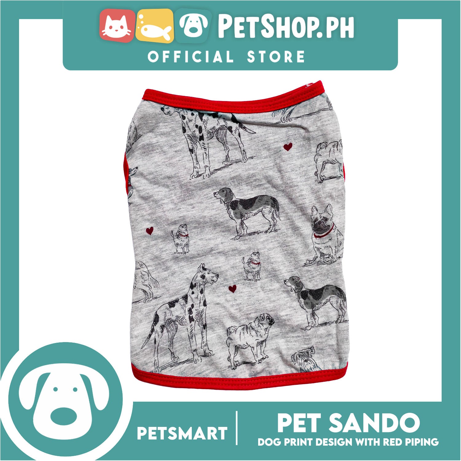 Pet Sando Dog Print Design With Red Piping, Gray Color DG-CTN107S (Small)
