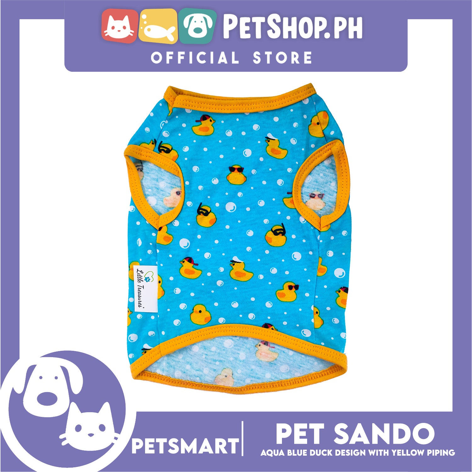 Pet Sando Ducks Design, Blue with Yellow Piping Colors (Large)