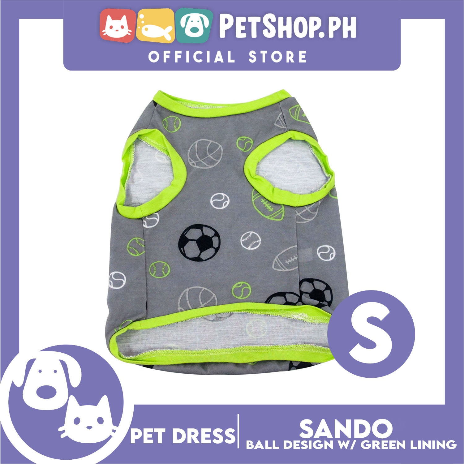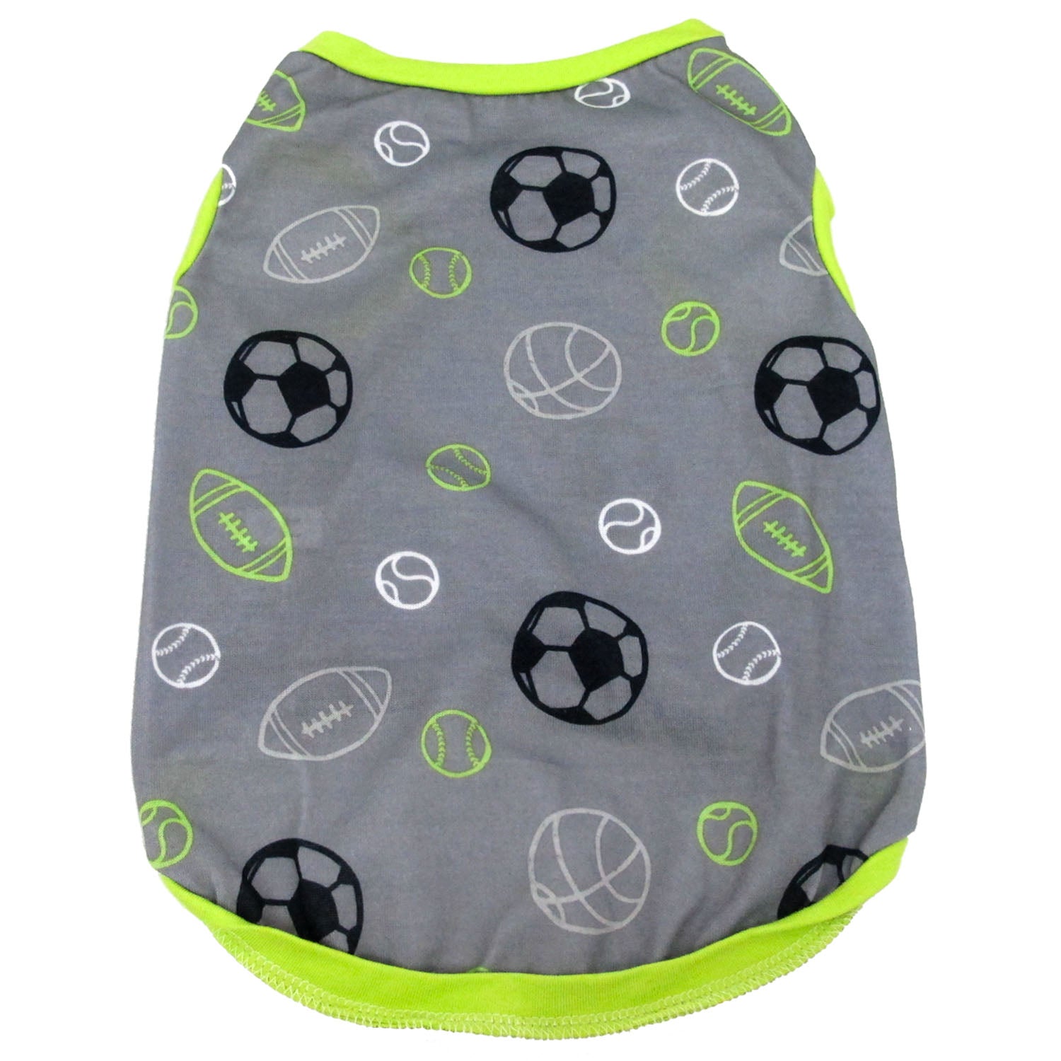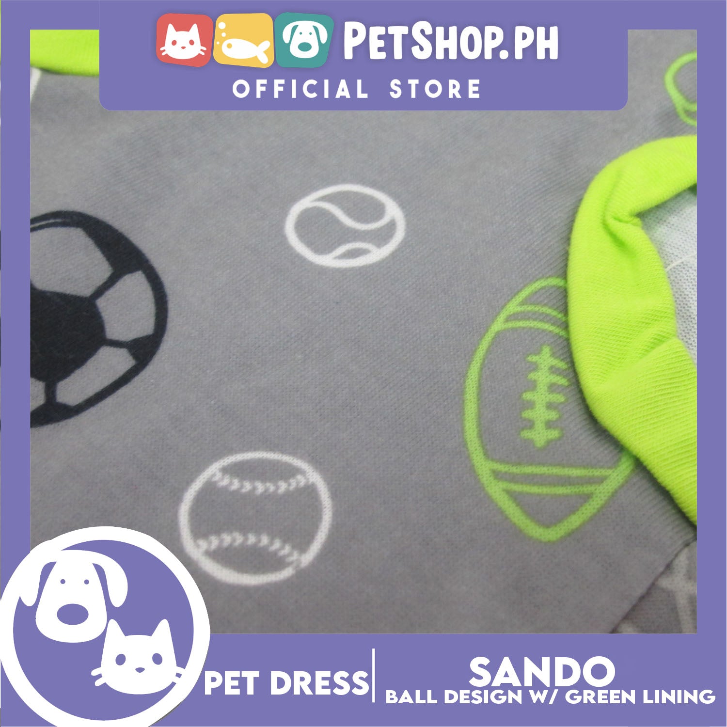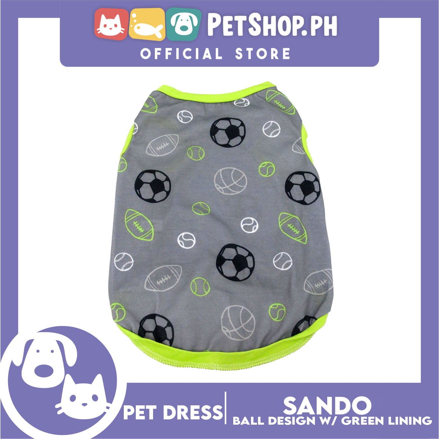 Pet Sando Gray with Soccer Print with Green Piping (Extra Large) for Small Dog- Pet Sport Clothes