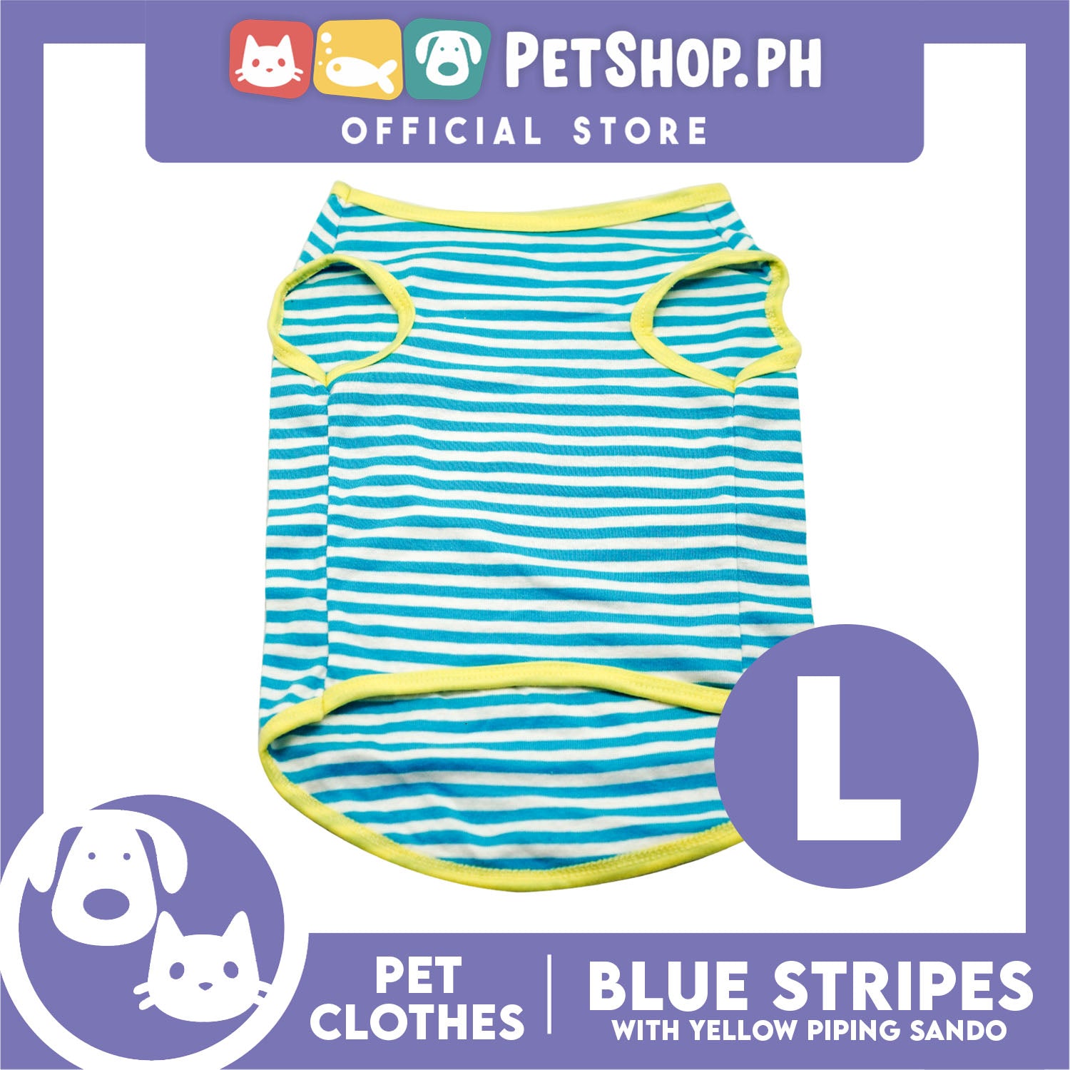 Pet Sando (Large) Blue and White Stripes with Yellow Piping Design Sando Pet Shirt