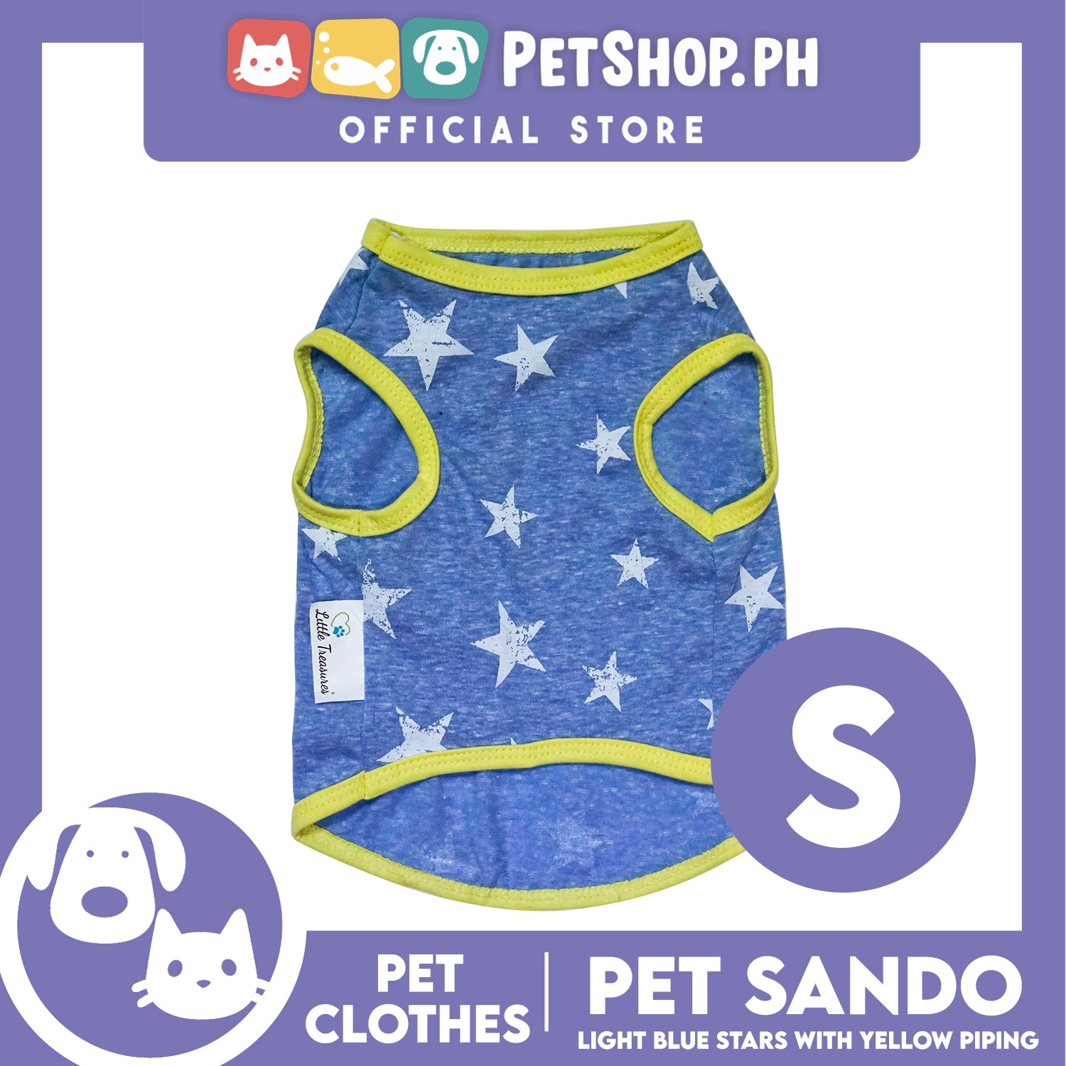 Pet Sando Light Blue Stars with Yellow Piping (Small) Pet Shirt Clothes Perfect fit for Dogs