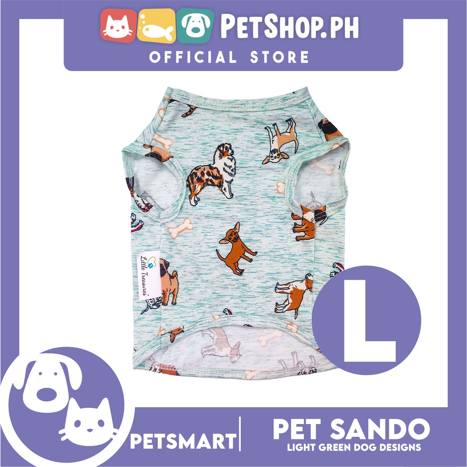 Pet Sando Light Green Color, Dog Design DG-CTN144L (Large) Perfect Fit For Dogs And Cats