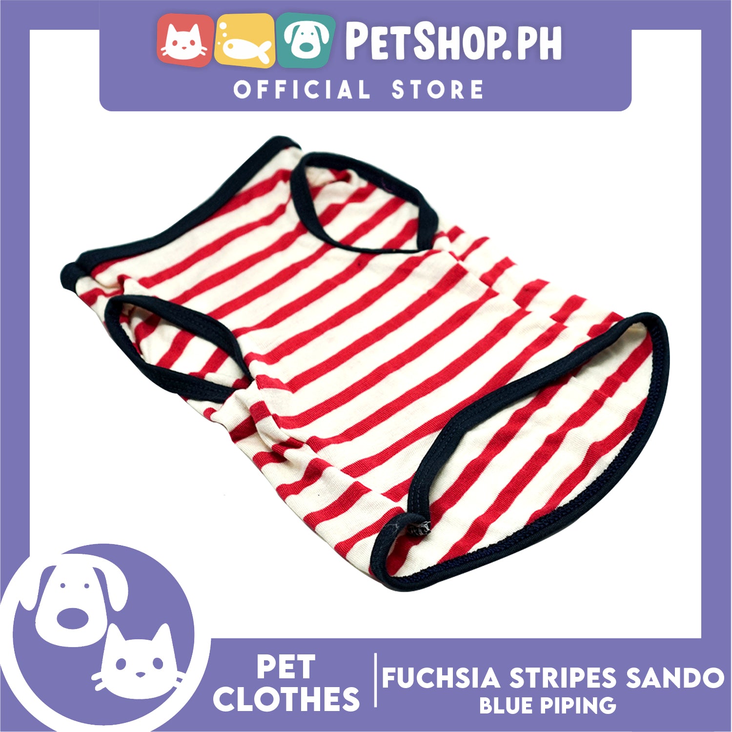 Pet Sando (Medium) Fuchsia Stripes with Blue Piping Sando Pet Shirt