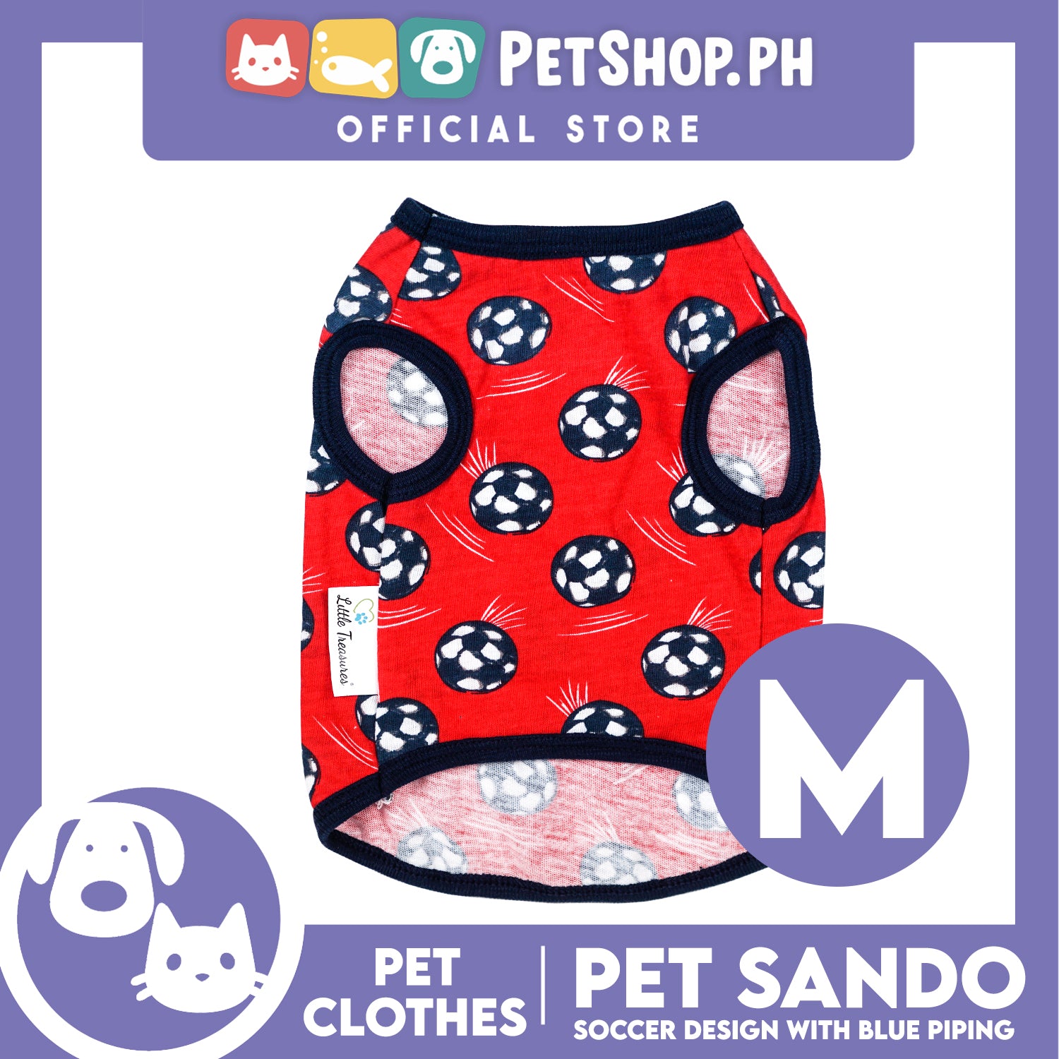 Pet Sando Red Soccer Ball Print with Blue Piping Pet Clothes (Medium) Perfect Fit for Dogs and Cats