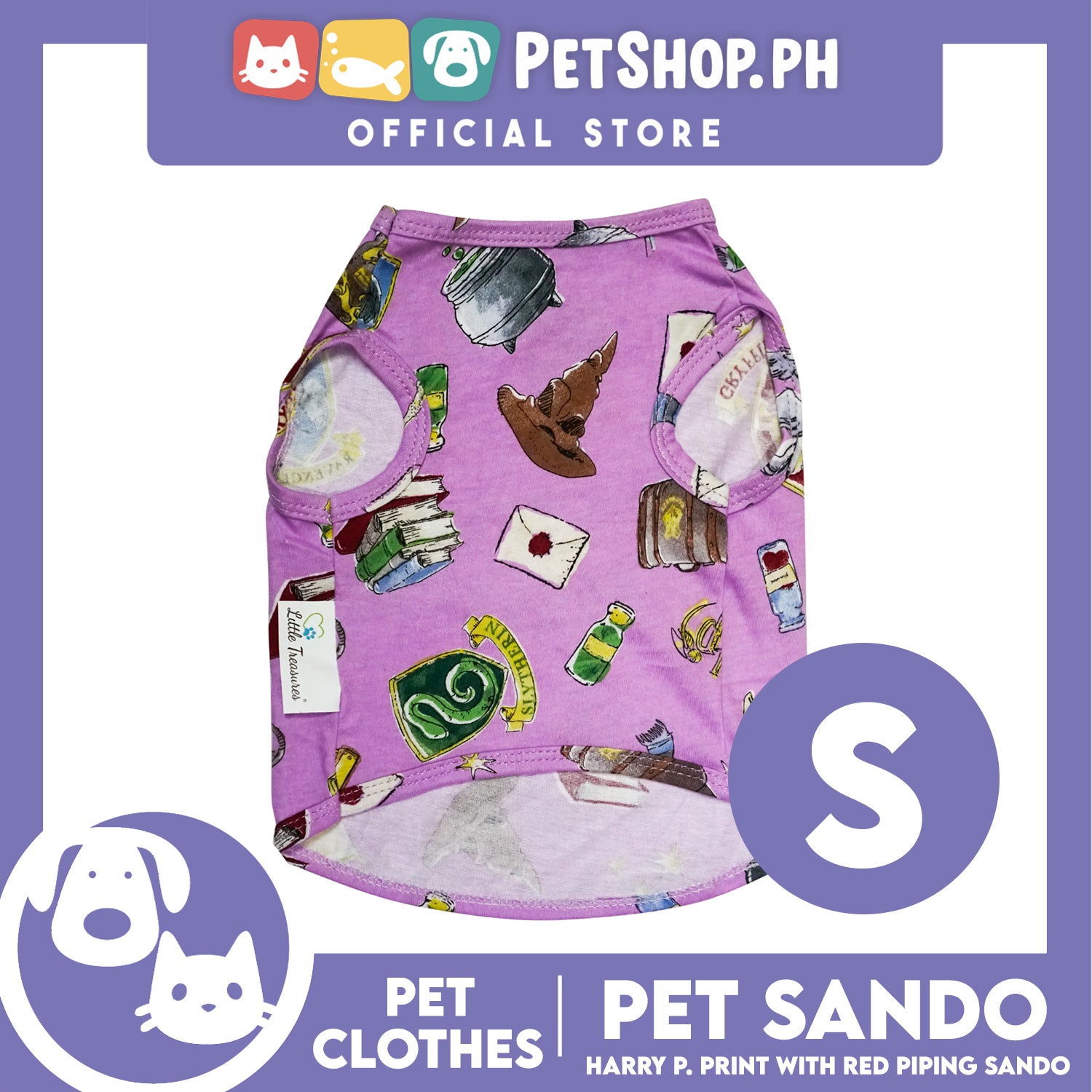 Pet Sando School of Wizardry Print with Red Piping (Small) Pet Shirt Clothes Perfect fit for Dogs