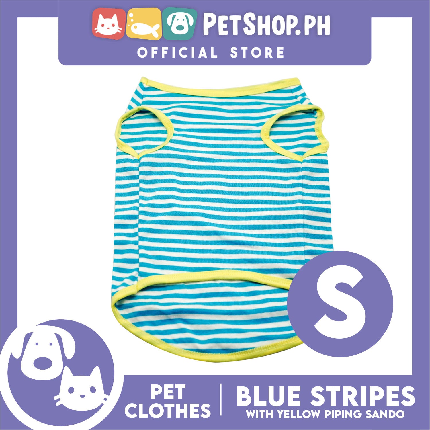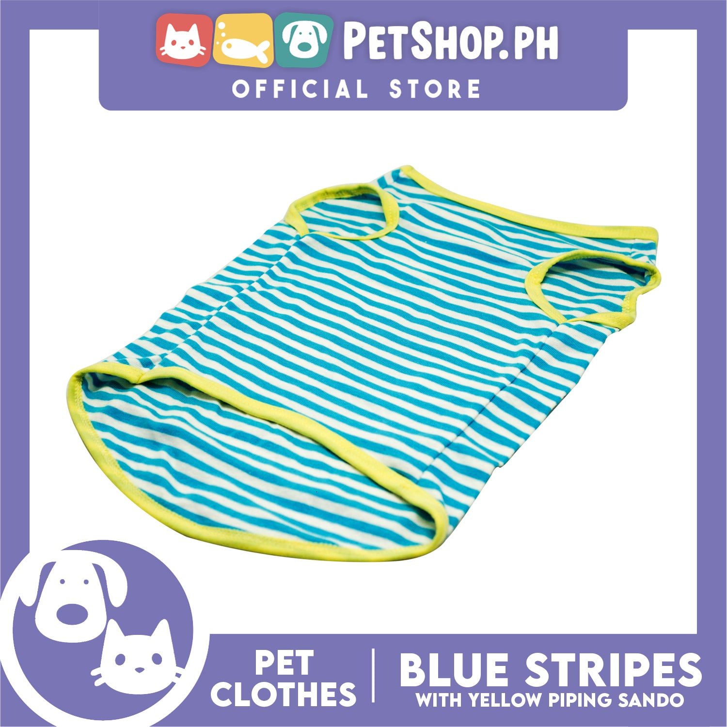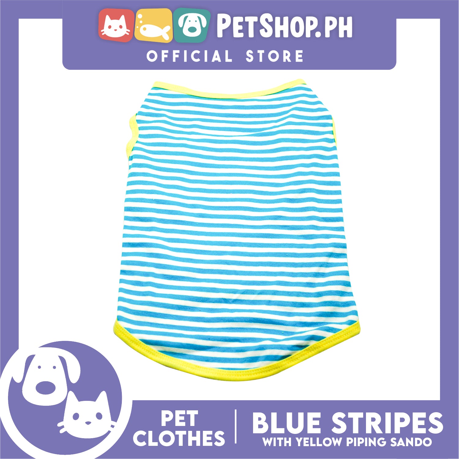 Pet Sando (Small) Blue and White Stripes with Yellow Piping Design Sando Pet Shirt