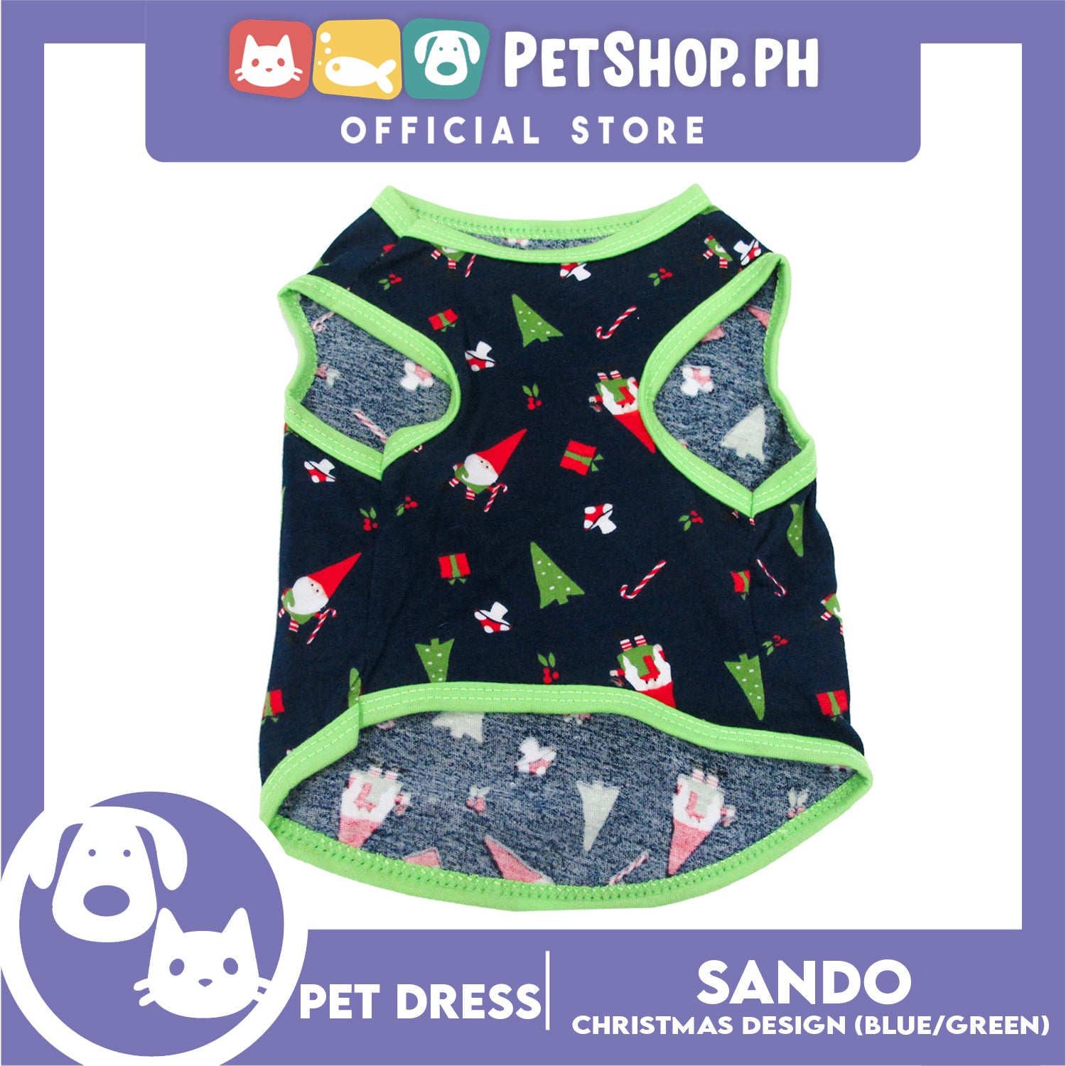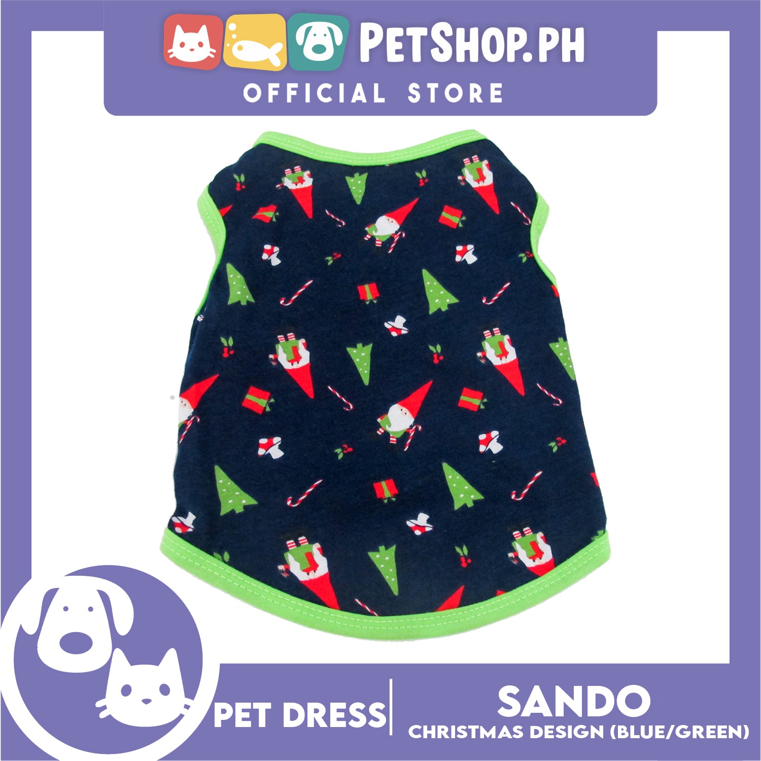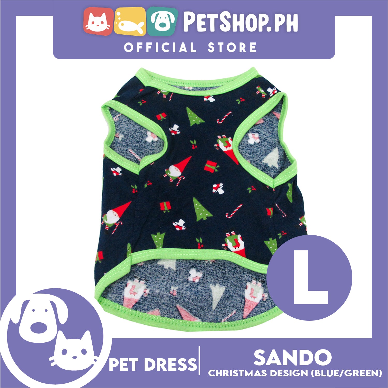 Pet Shirt Christmas Design with Green Piping Sleeveless (Large) for Puppy, Small Dog & Cats- Sando Breathable Clothes, Pet T-shirt, Sweatshirt