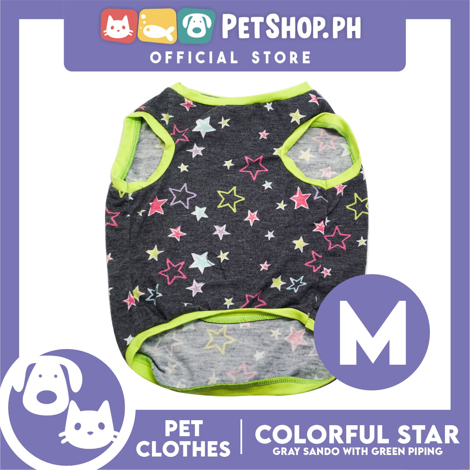 Pet Shirt Gray Sando with Colorful Stars (Medium) Perfect Fit for Dogs and Cats
