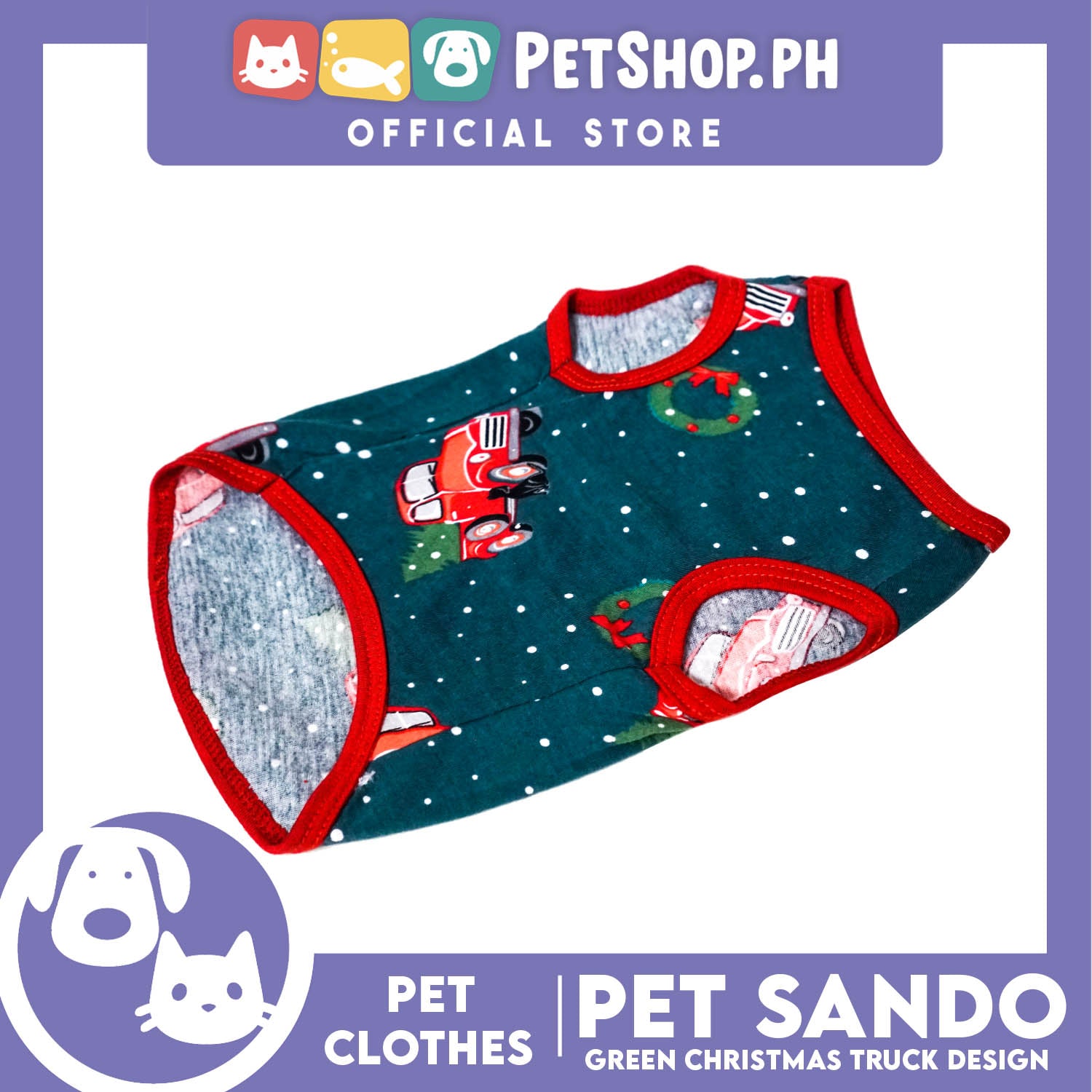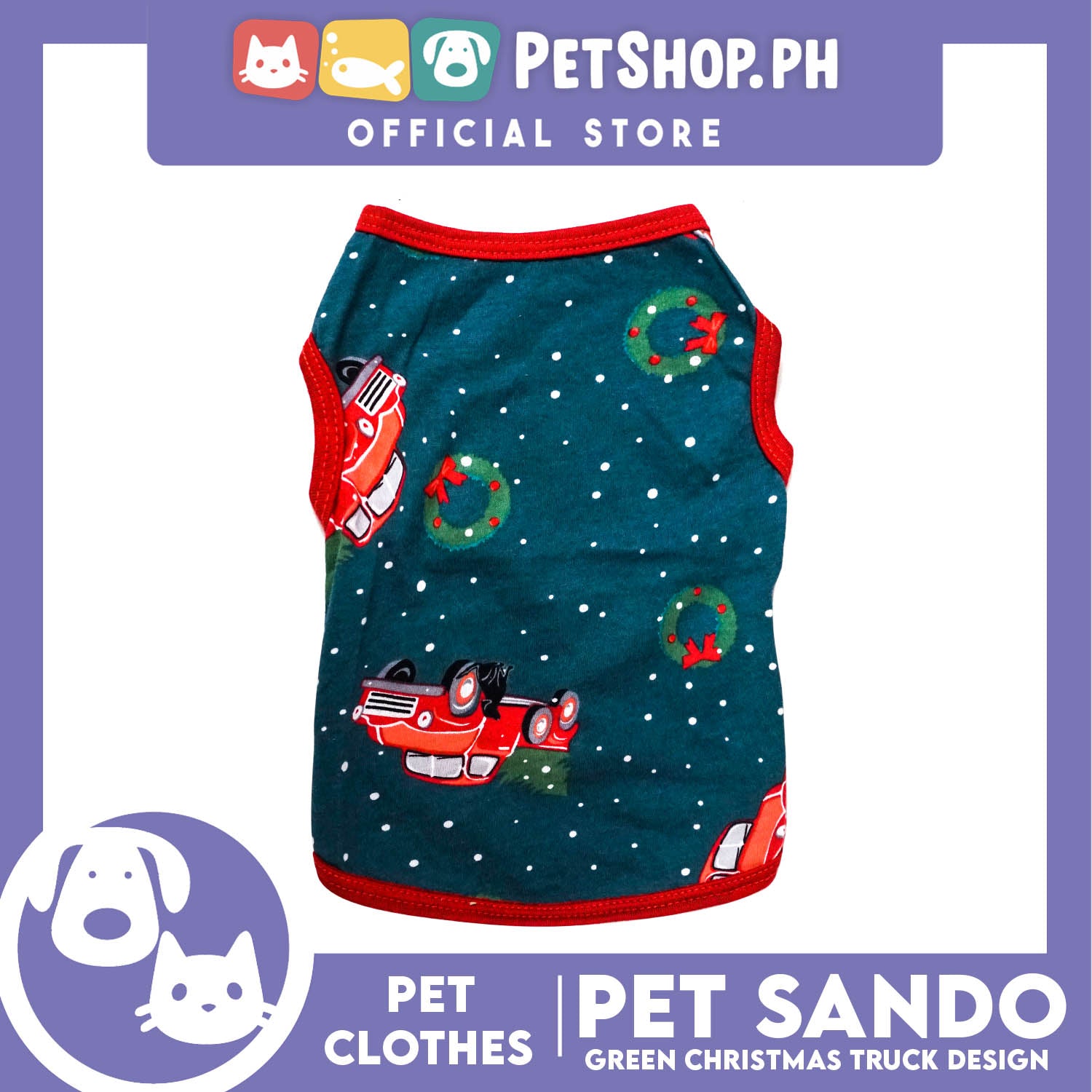 Pet Shirt Green Christmas Truck Design with Red Piping Sleeveless (Large) Perfect Fit for Dogs
