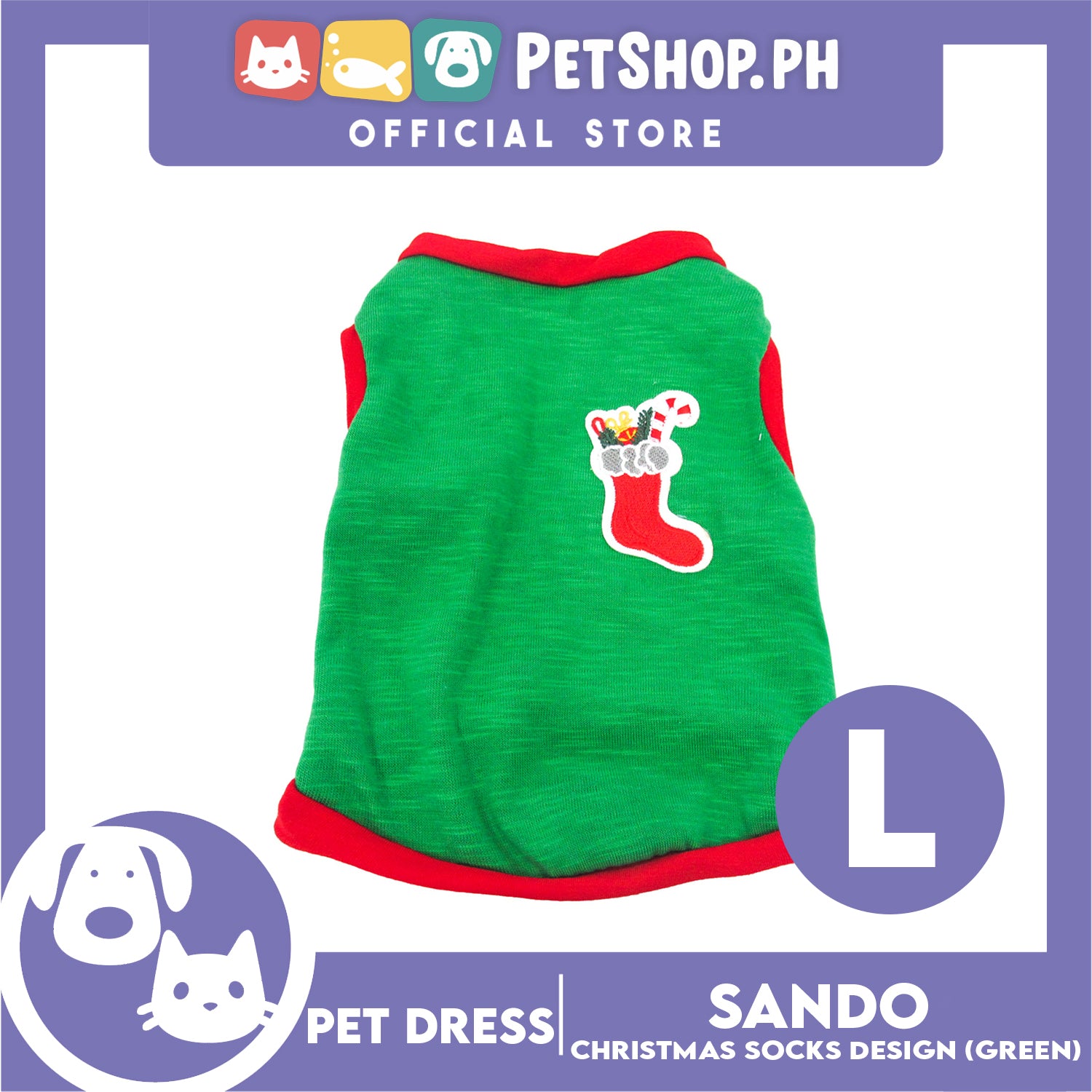 Pet Shirt (Large) Christmas Stocking with Red Piping Sleeveless for Puppy, Small Dog and Cats- Sando Breathable Clothes,Pet T-shirt,Sweat Shirt