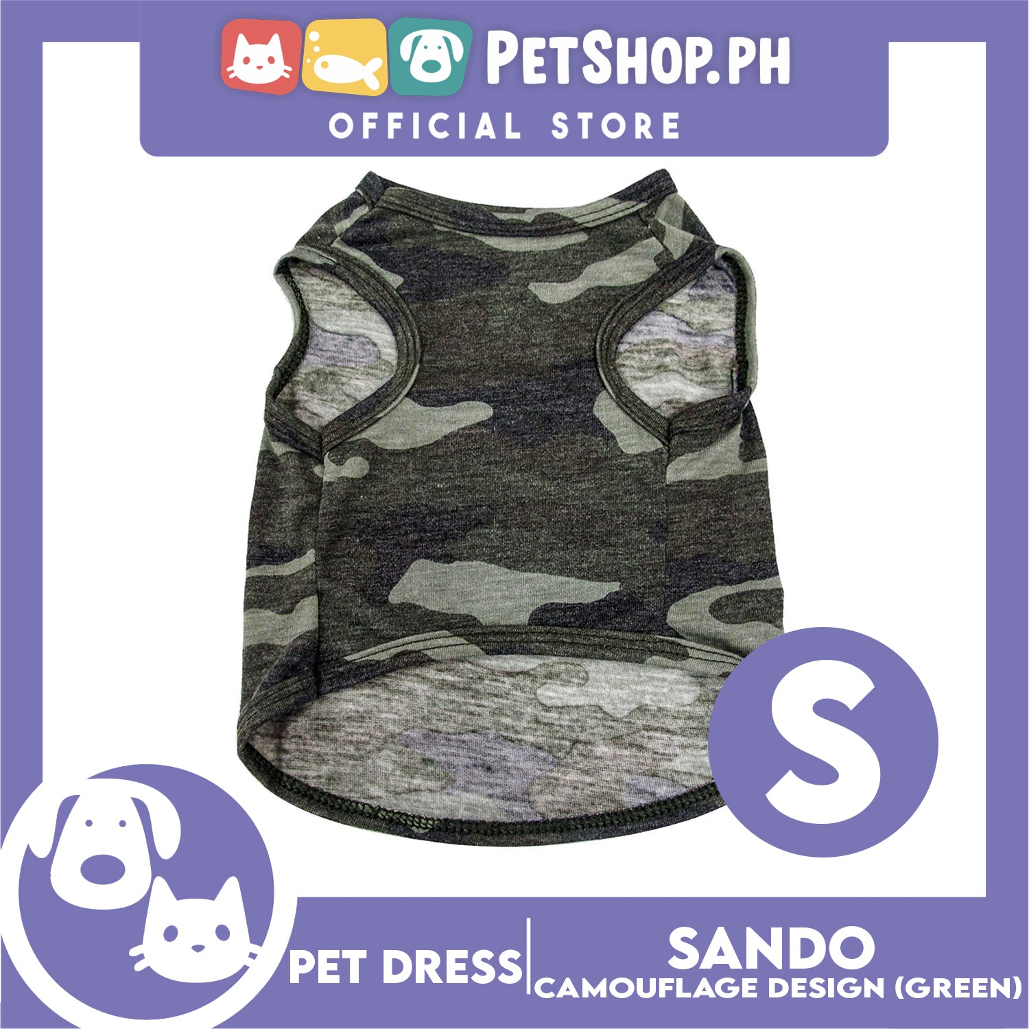 Pet Shirt Pet Sando Camouflage Design Sleeveless Green (Small) for Puppy, Small Dogs and Cats