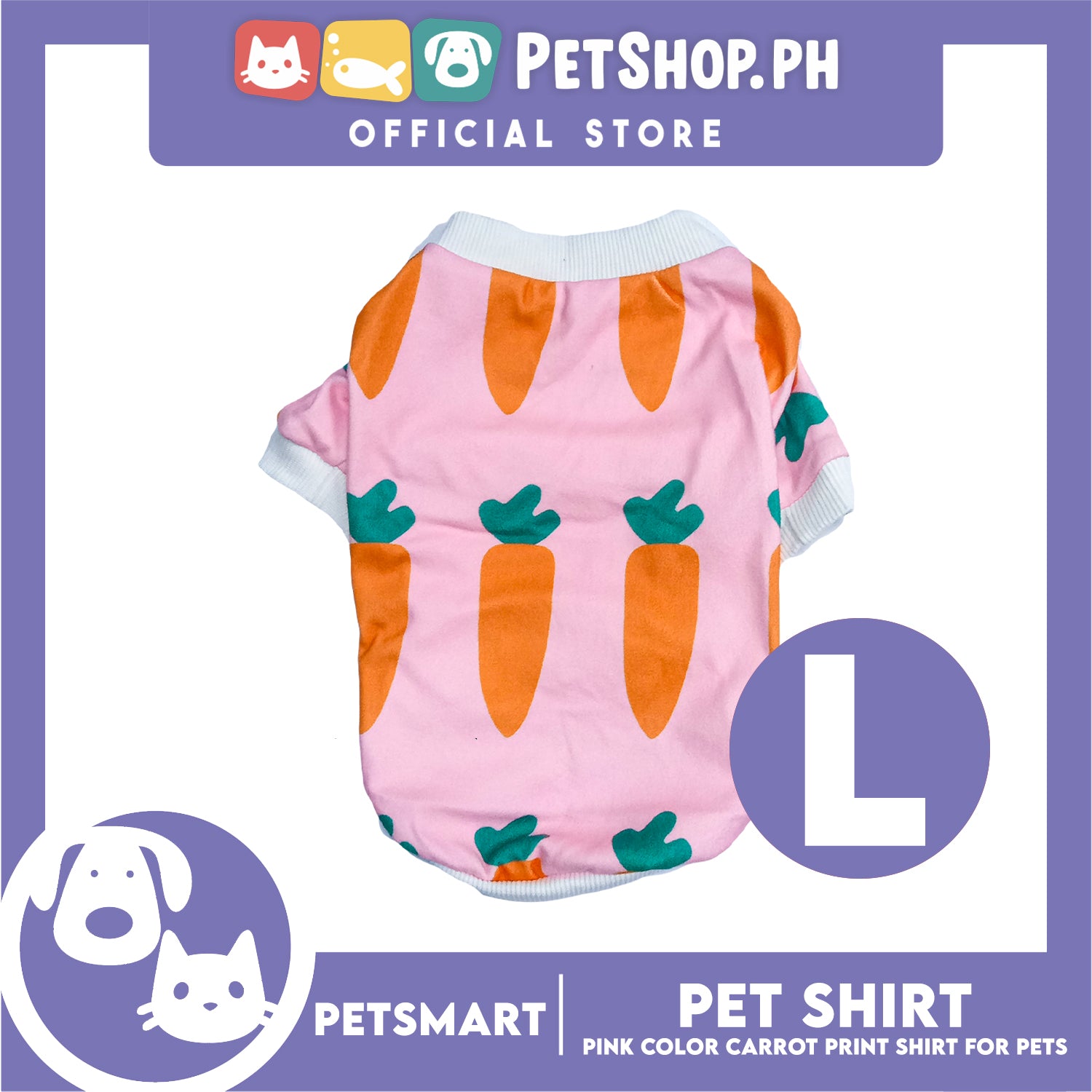 Pet Shirt Pink Color Carrot Print Shirt (Large) for Cats and Dogs Pet Clothes