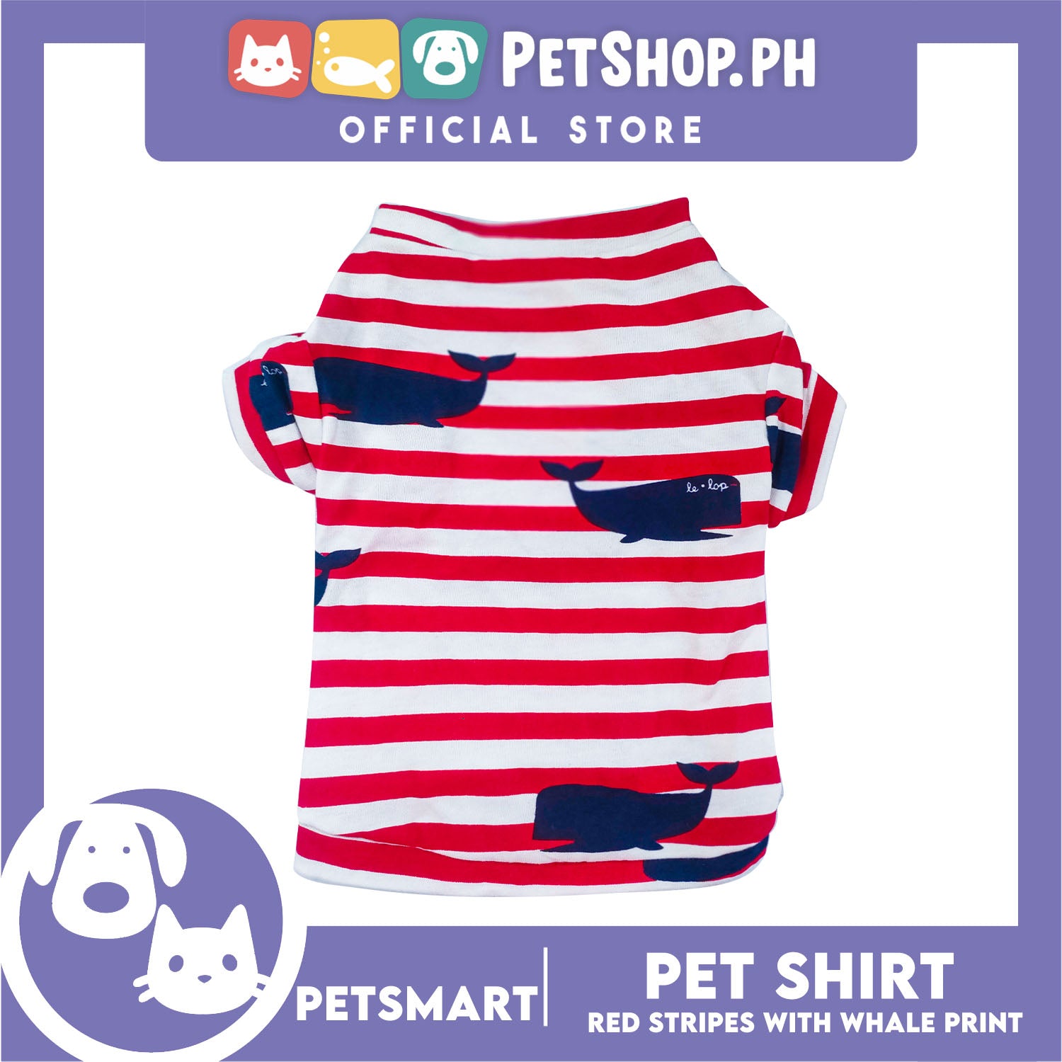 Pet Shirt Red Stripes with Whale Print Design DG-CTN150L (Large) Perfect Fit For Dogs And Cats