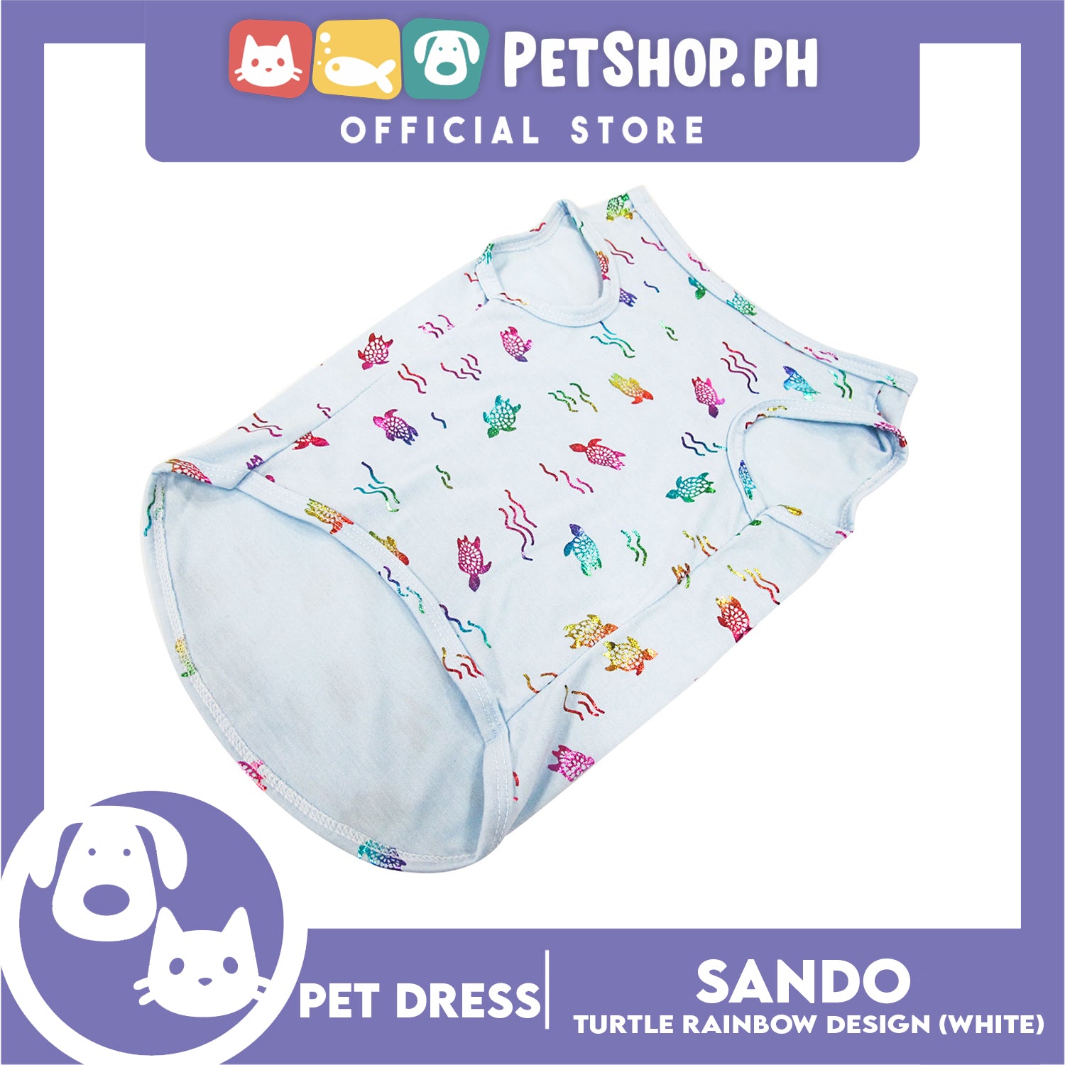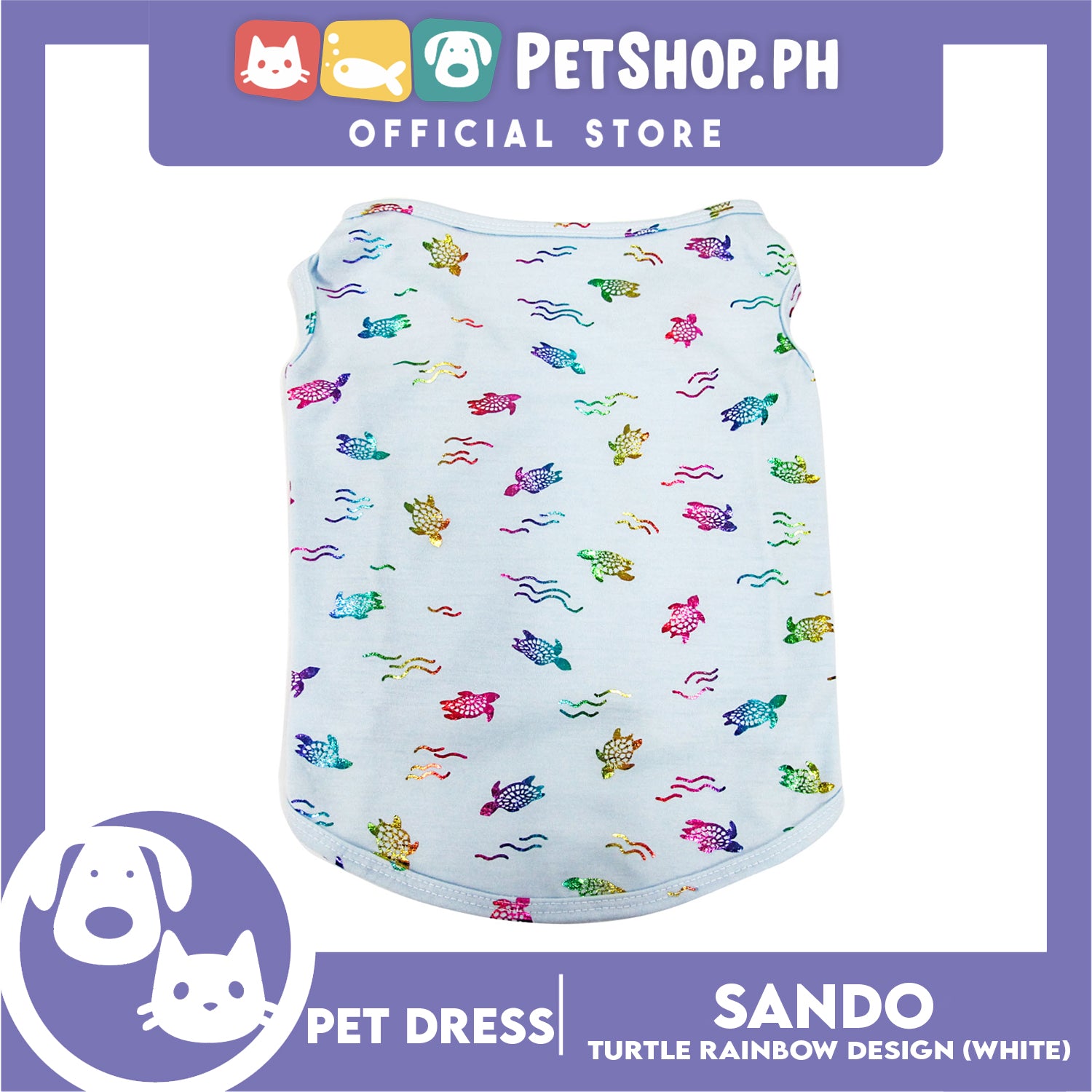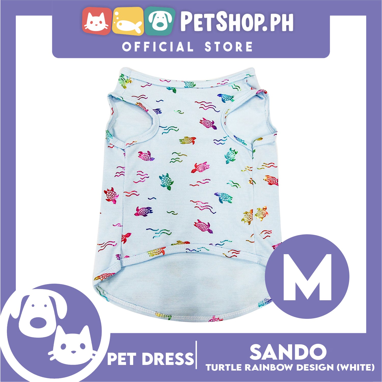Pet Shirt Sea Turtle Silky Print Rainbow Sleeveless (Medium Size) for Puppy, Small Dog and Cats- Sando Breathable Clothes, Pet T-shirt, Sweatshirt