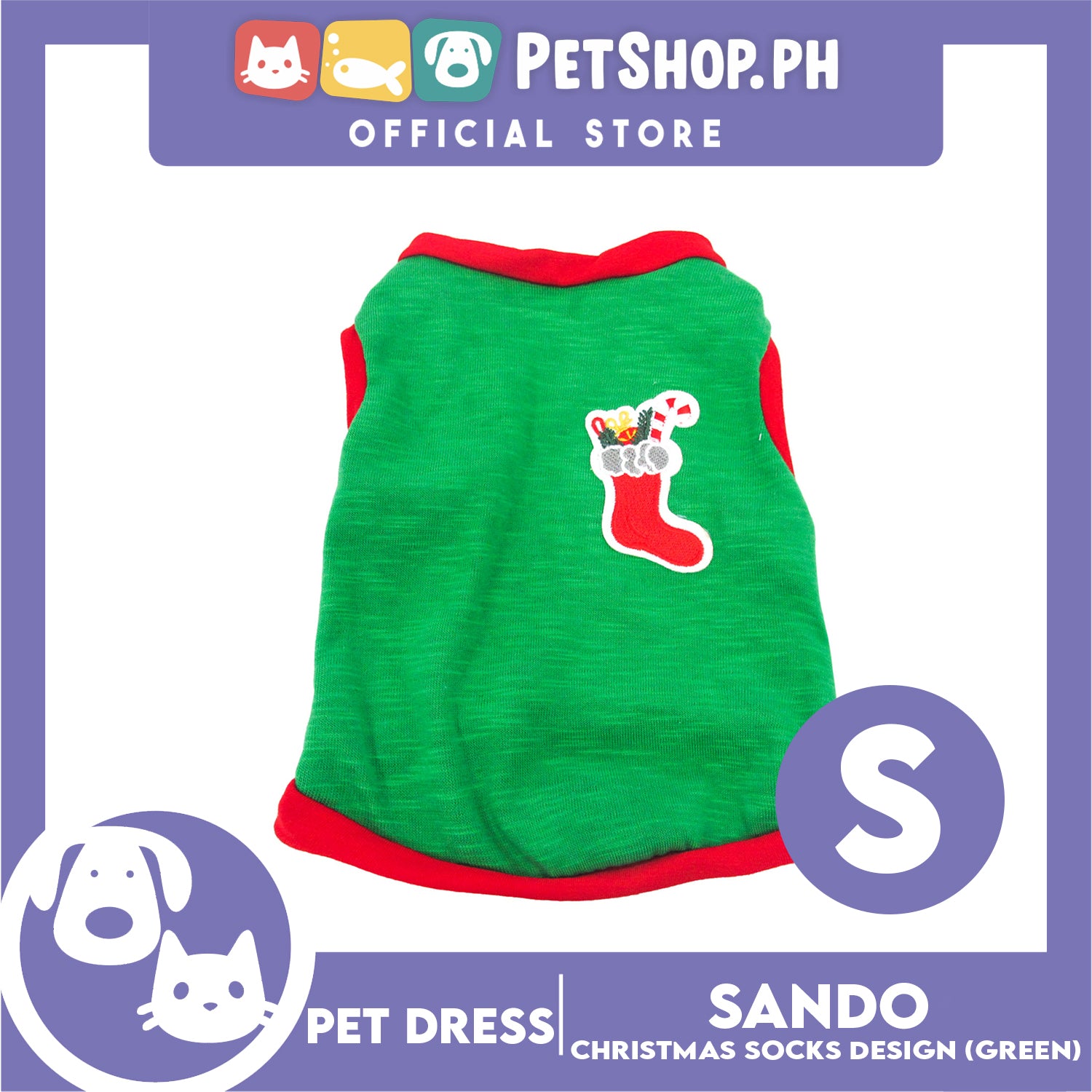 Pet Shirt (Small) Christmas Stocking with Red Piping Sleeveless for Puppy, Small Dog and Cats- Sando Breathable Clothes,Pet T-shirt, Sweat Shirt