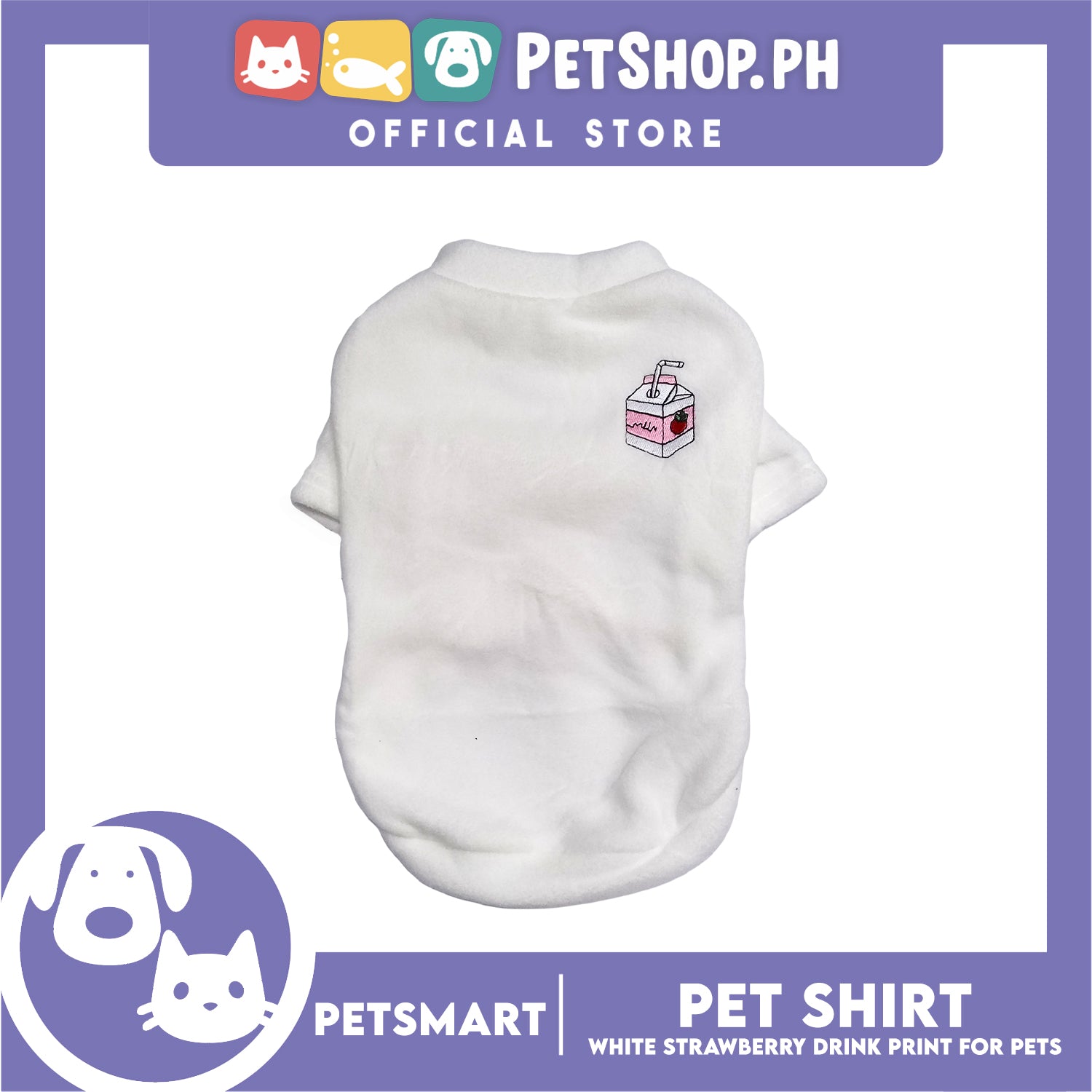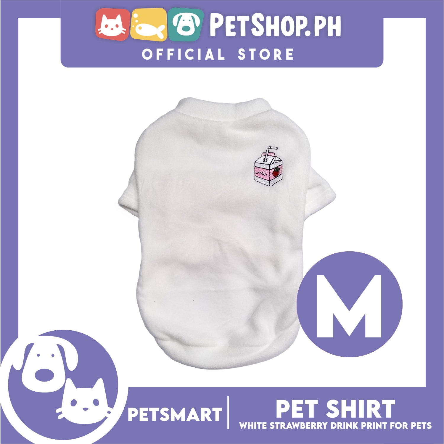 Pet Shirt White Strawberry Drink Design (Medium) for Cats and Dogs Pet Clothes