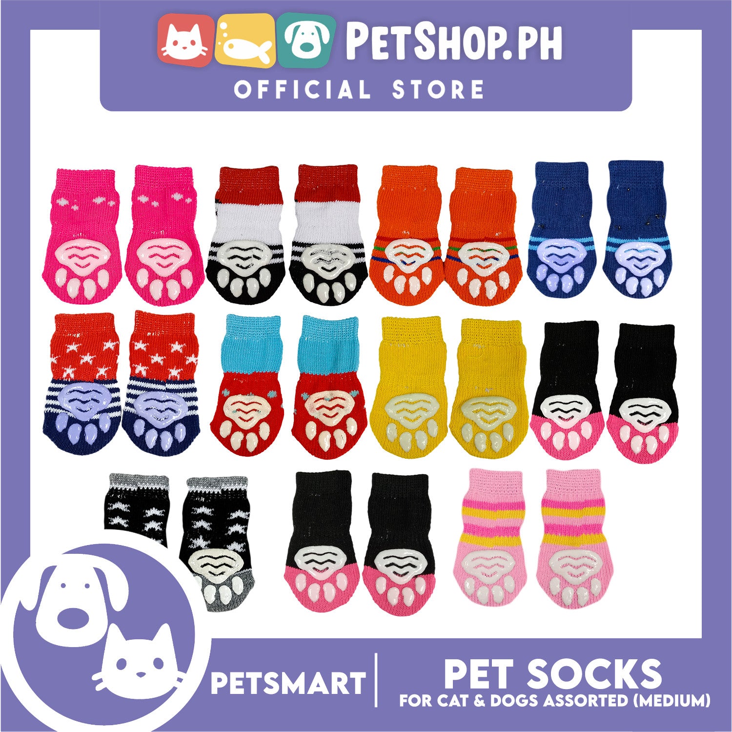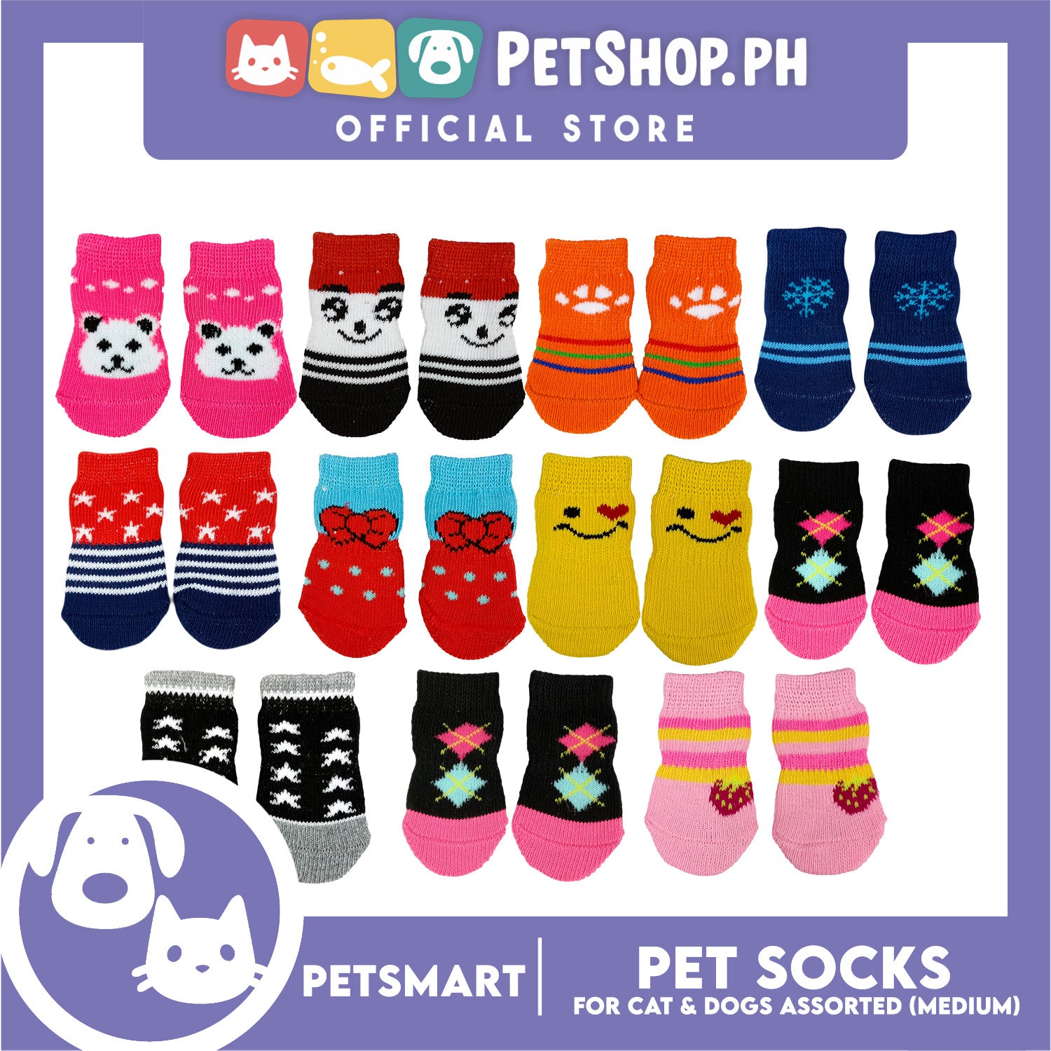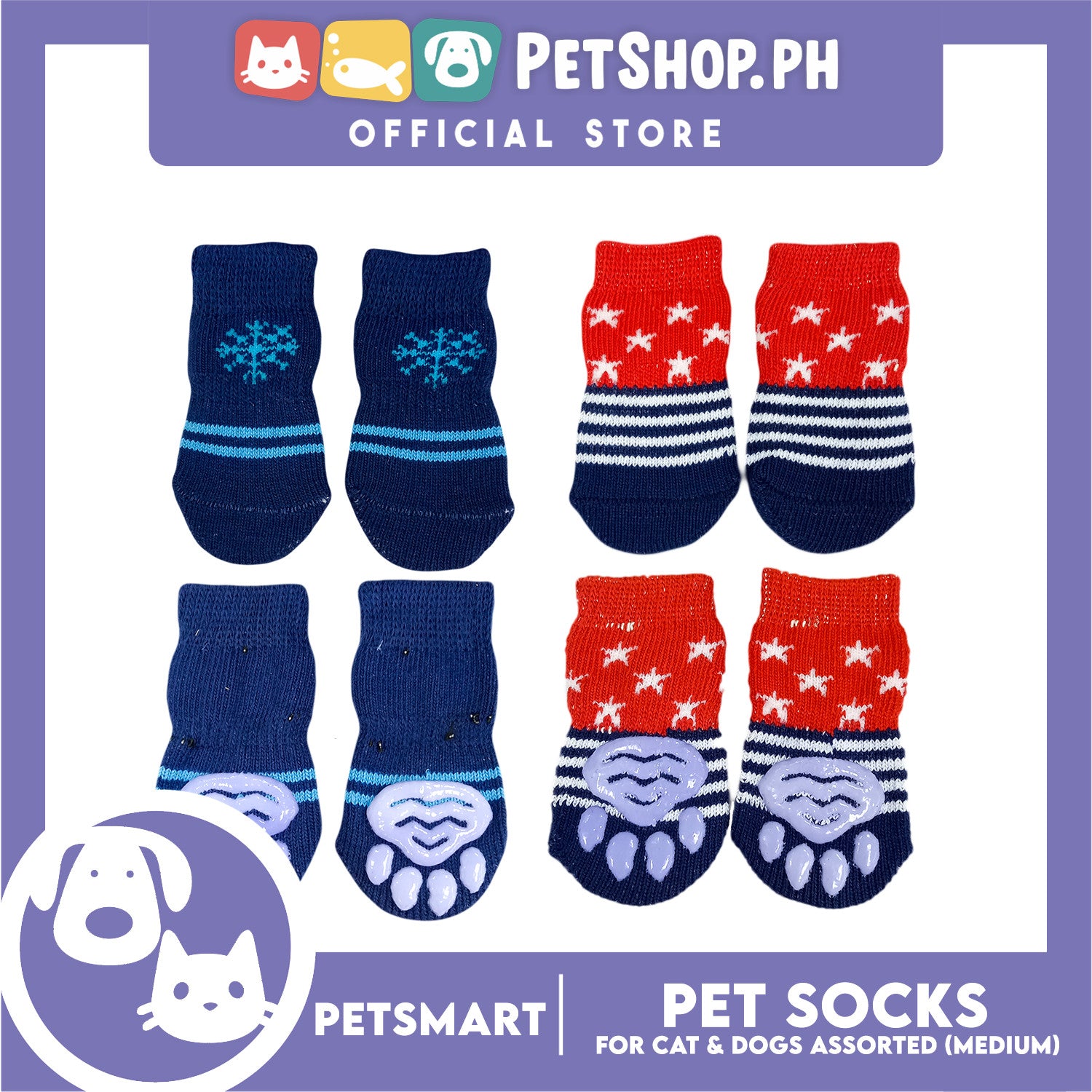 Pet Socks for Cats and Dogs Assorted Designs (Medium)