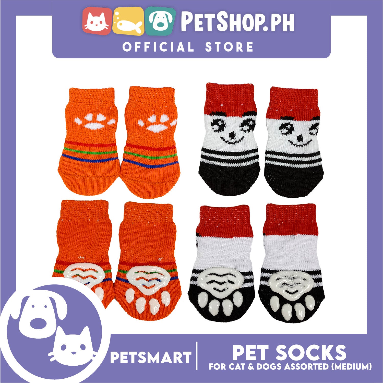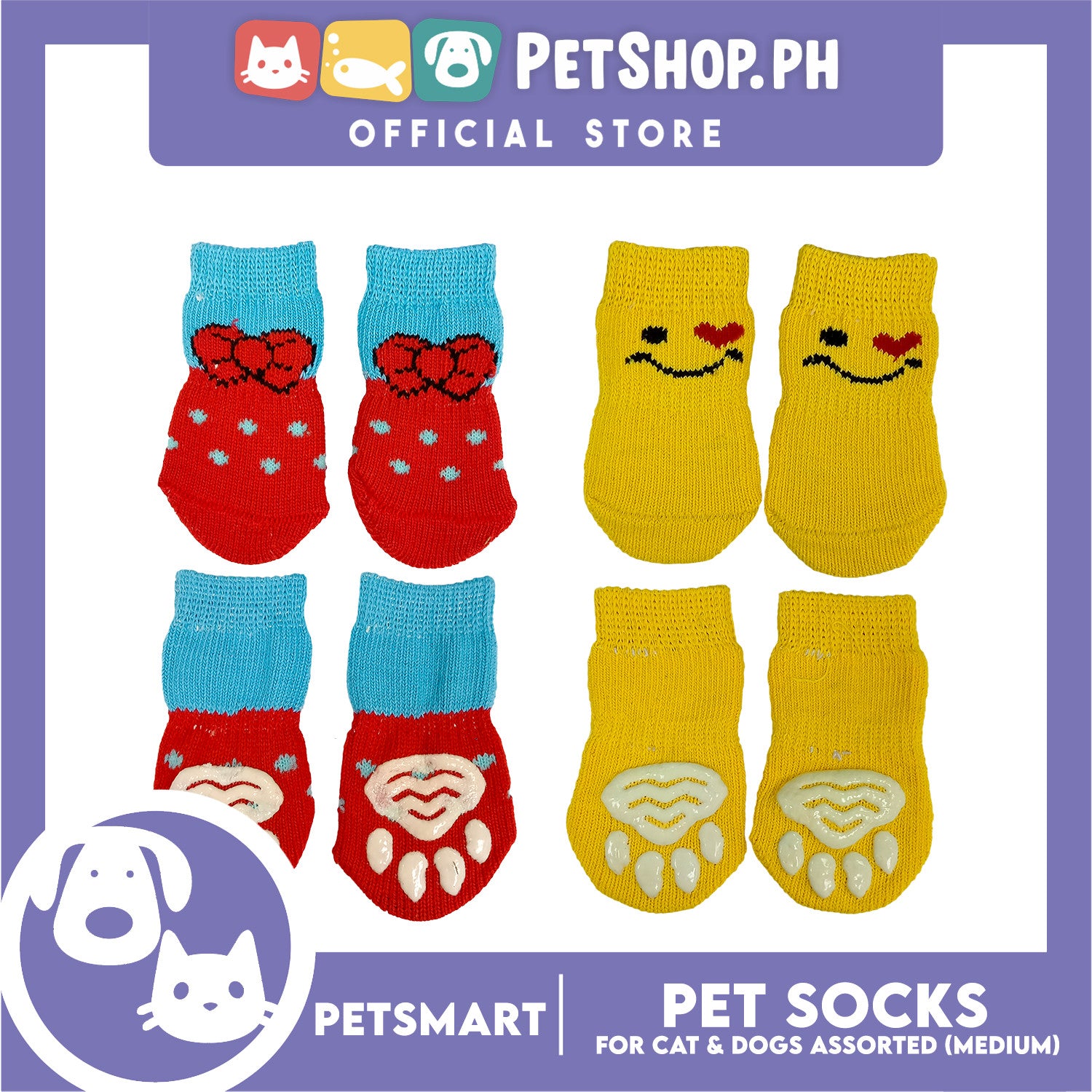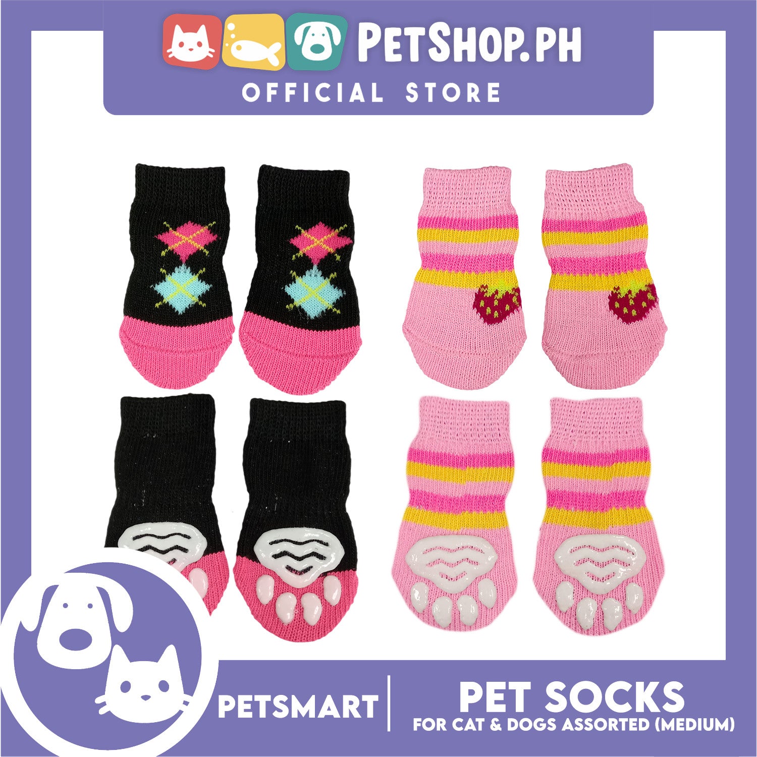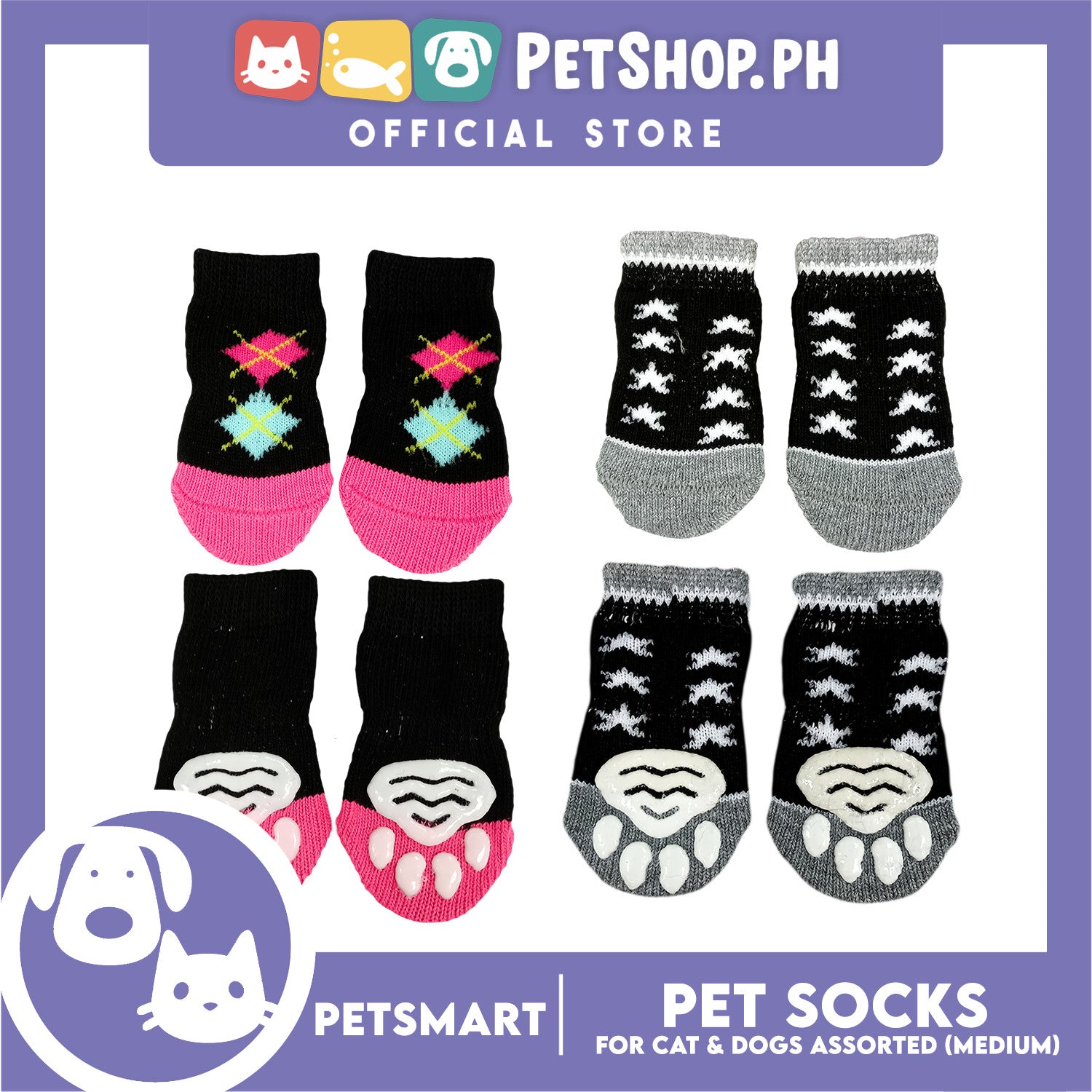 Pet Socks for Cats and Dogs Assorted Designs (Medium)