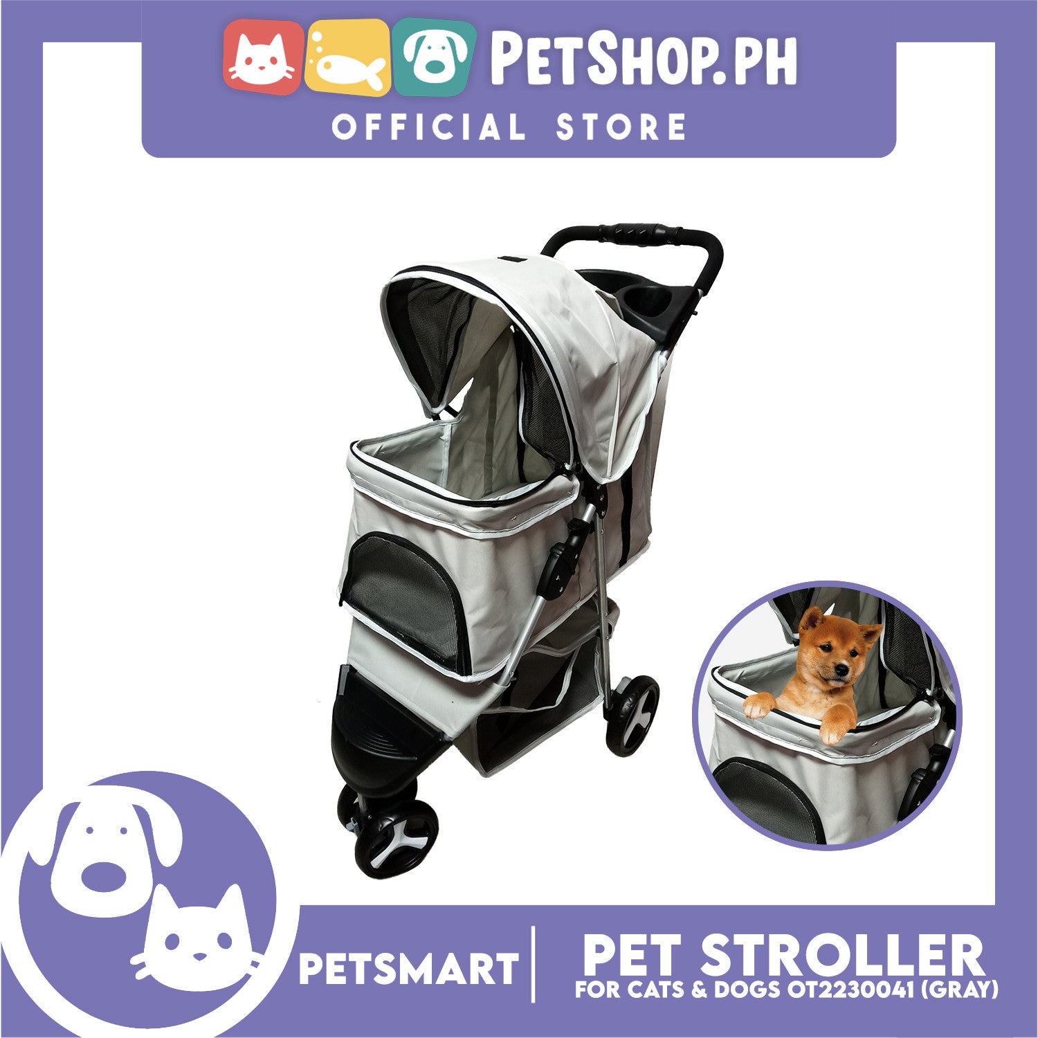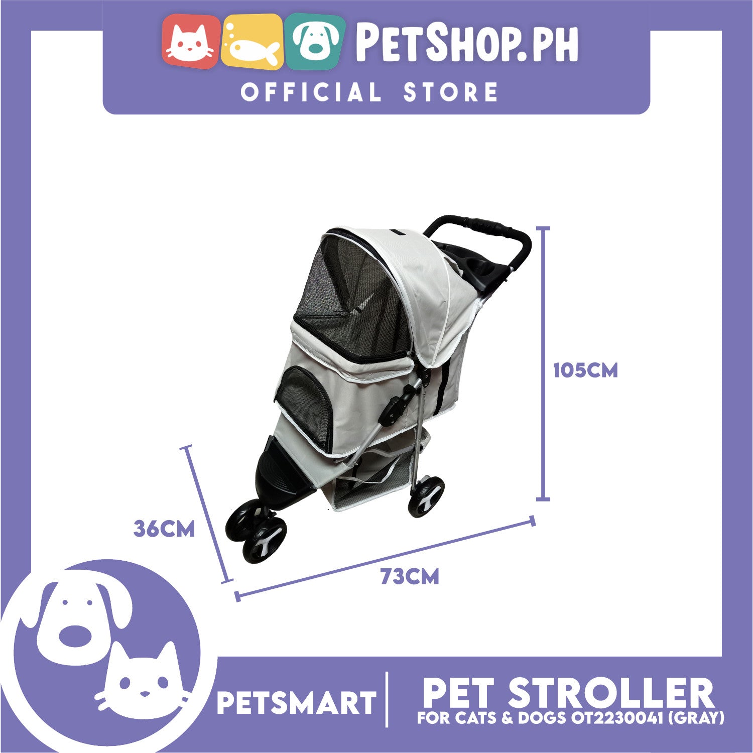 Pet Stroller 3 Wheels for Cats and Dogs, Gray Color (OT2230041) 36cm x 73cm x 105cm