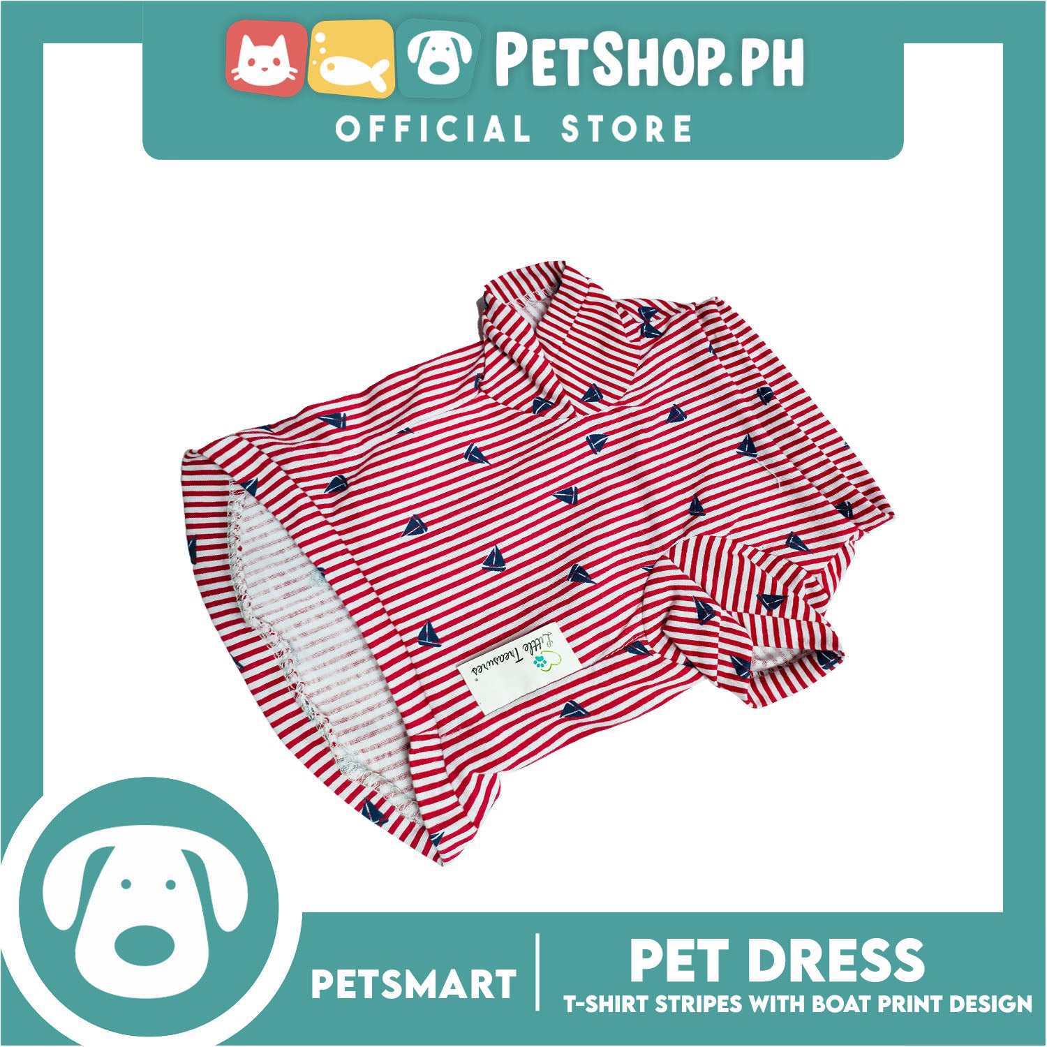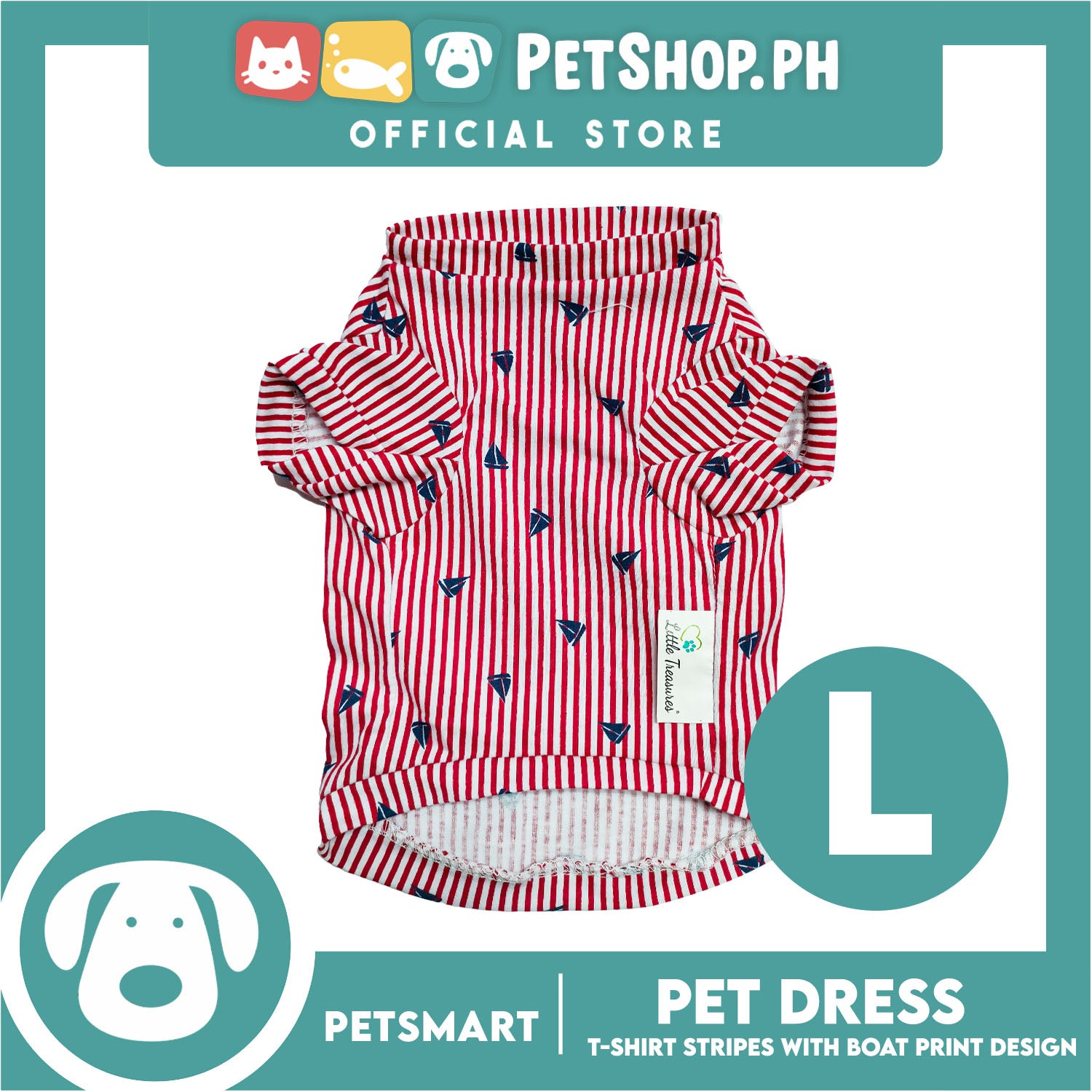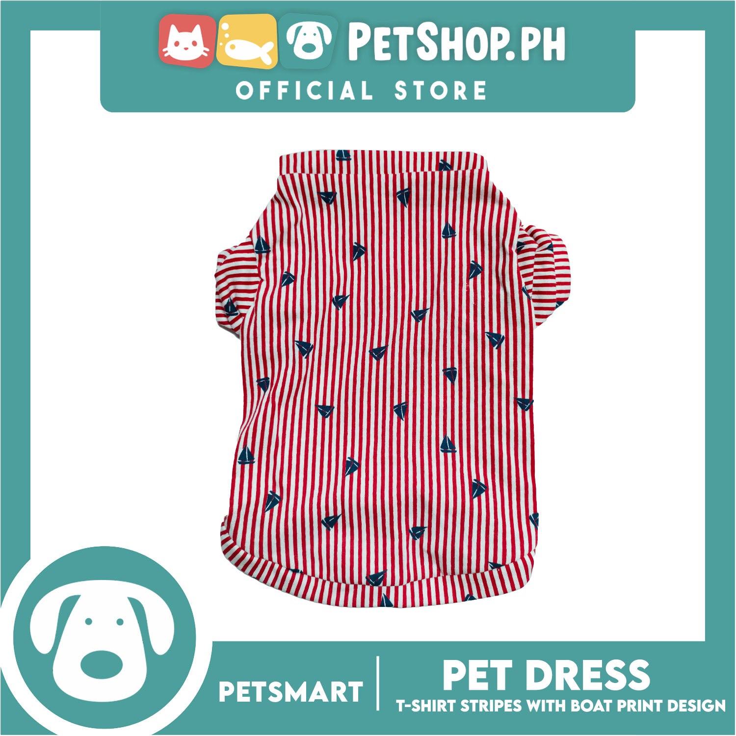 Pet T-Shirt Stripes With Boat Print Design, Red Color DG-CTN108L (Large) Perfect Fit For Dogs And Cats, Breathable Clothes, Soft Lightweight Pet Clothing