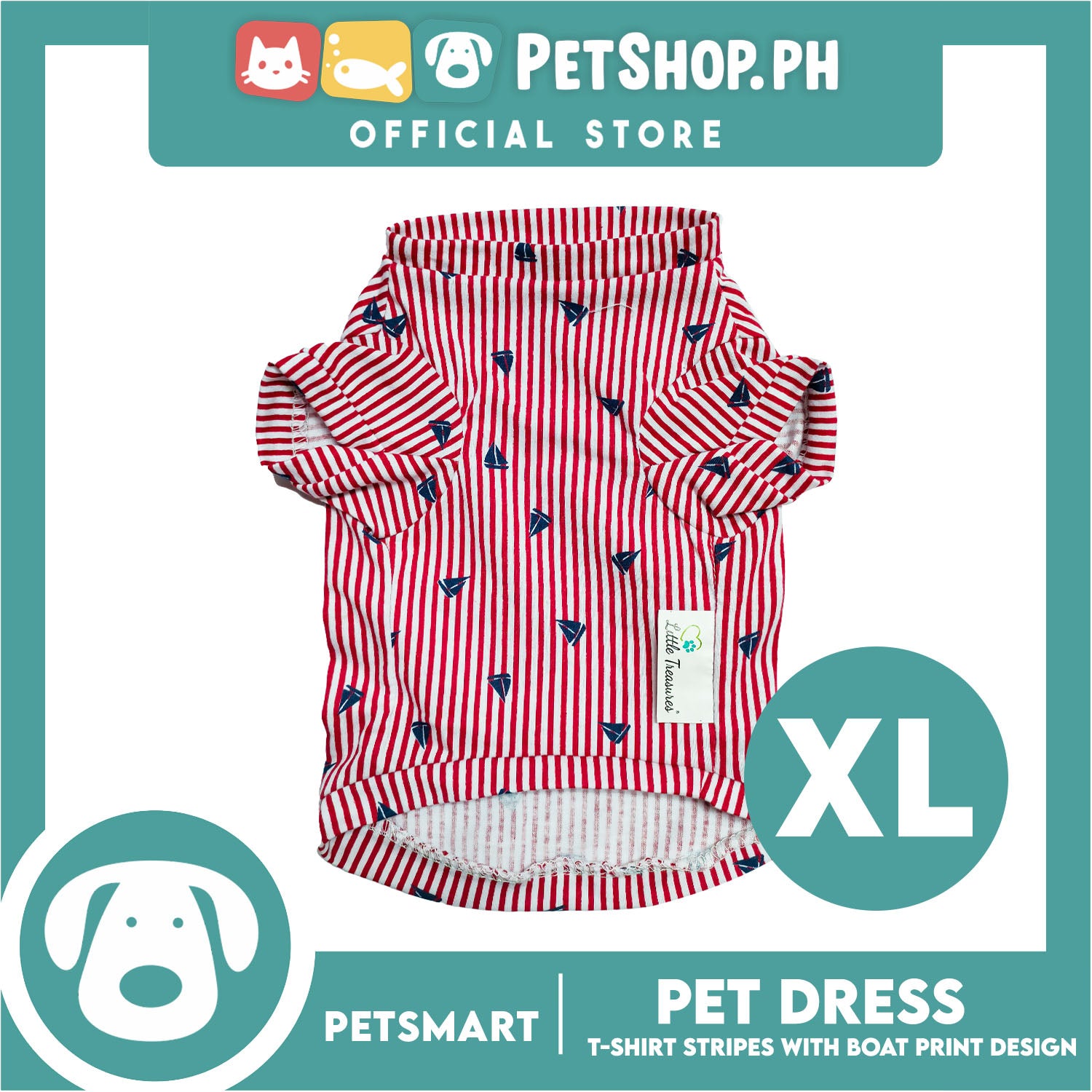Pet T-Shirt Stripes With Boat Print Design, Red Color DG-CTN108XL (XL) Perfect Fit For Dogs And Cats, Breathable Clothes, Soft Lightweight Pet Clothing