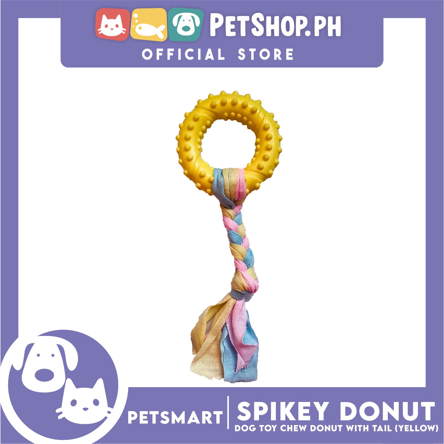 Pet Toy Dog Chew Donut Design with Tail (Yellow)