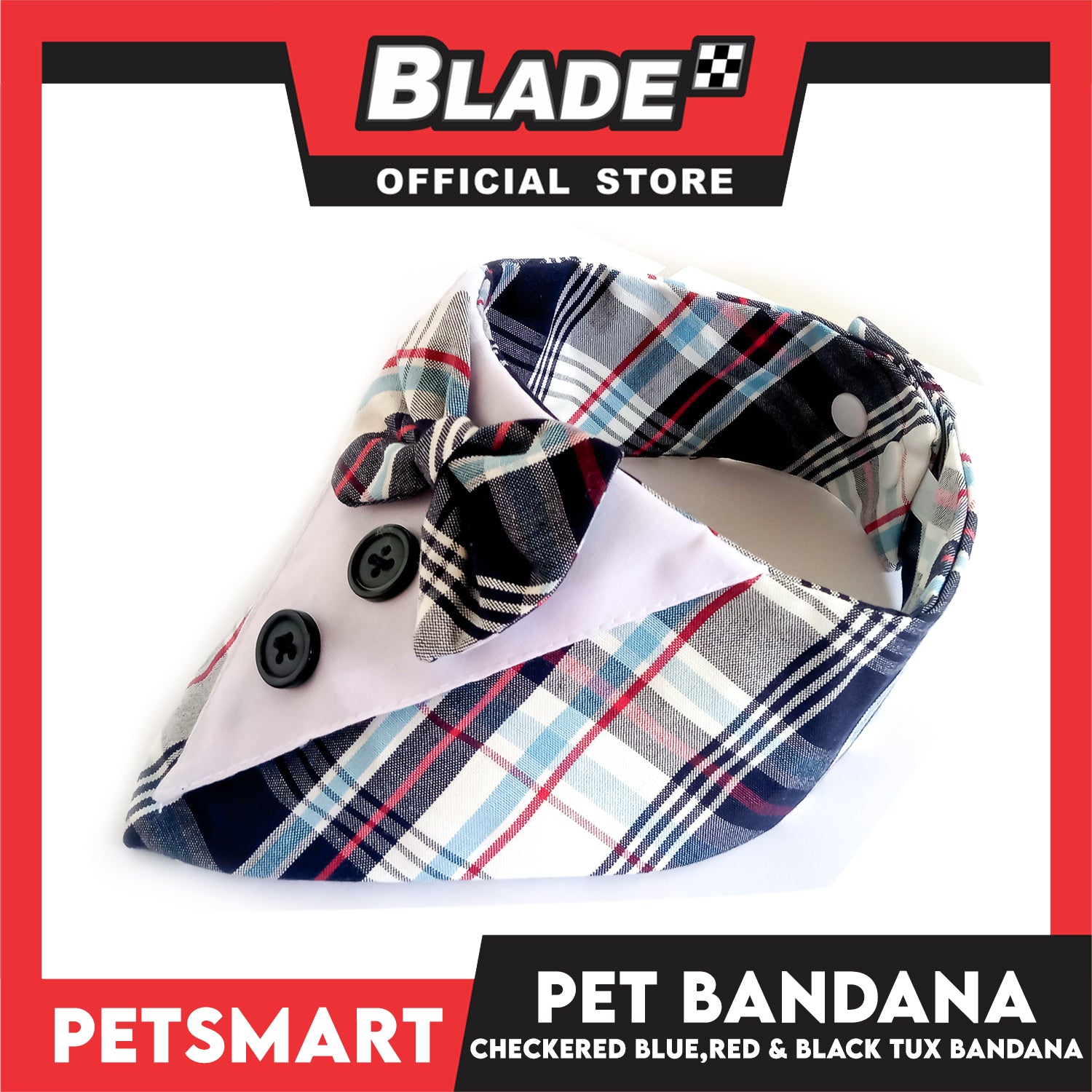 Pet Tuxedo Bandana, Checkered Blue Red And Black Color DB-CTN34M (Medium) Perfect Fit For Dogs And Cats