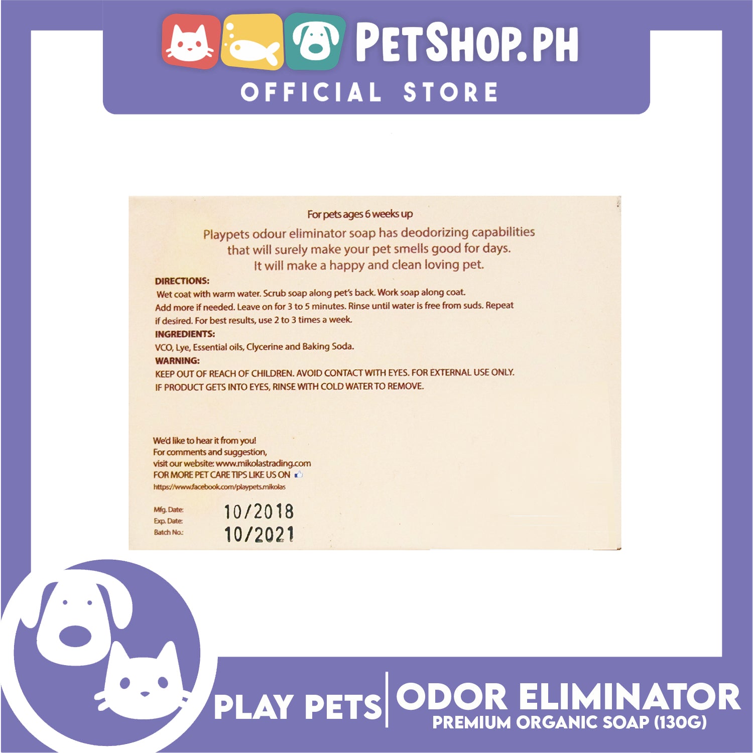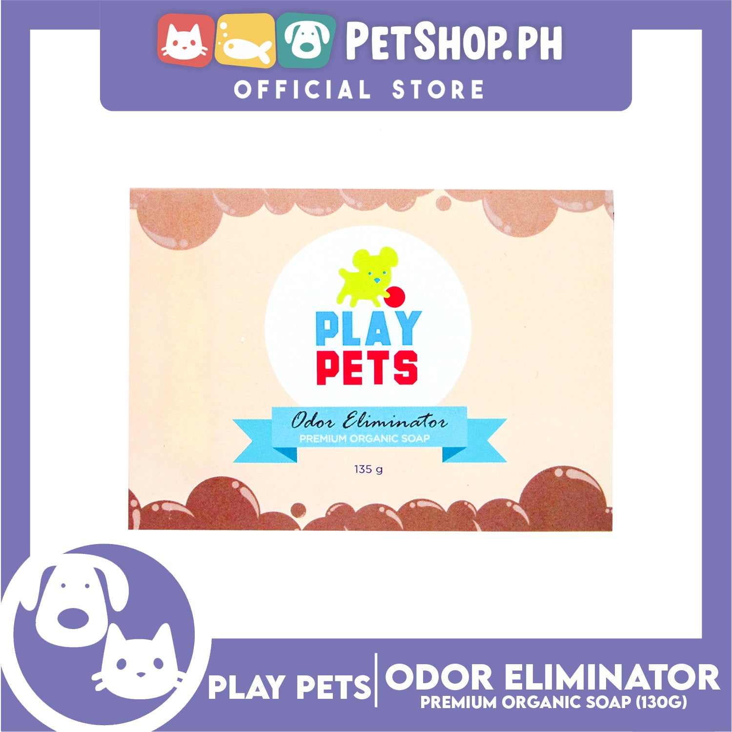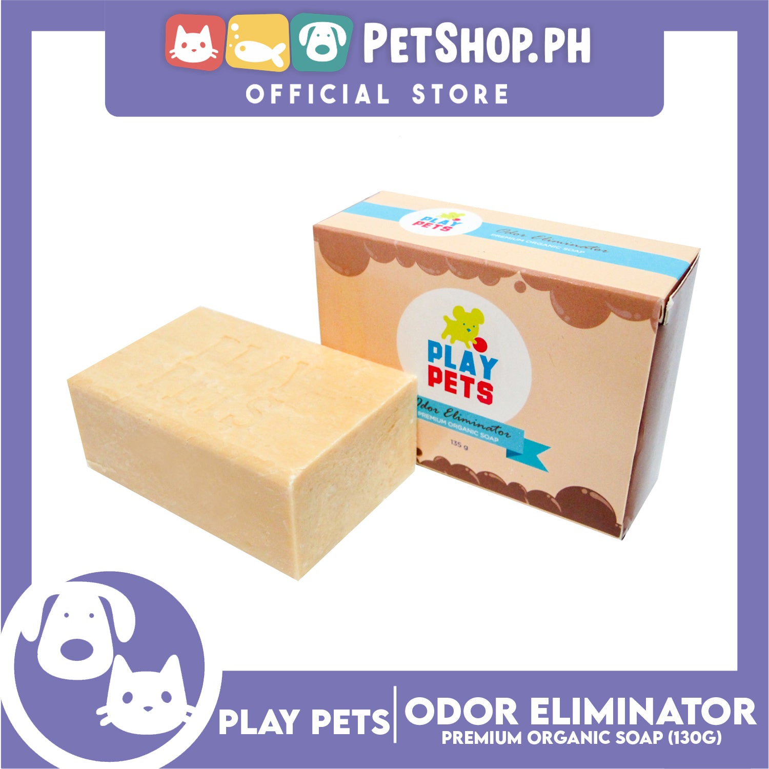 Play Pets Premium Organic Soap 135g (Odor Eliminator) Dog Soap