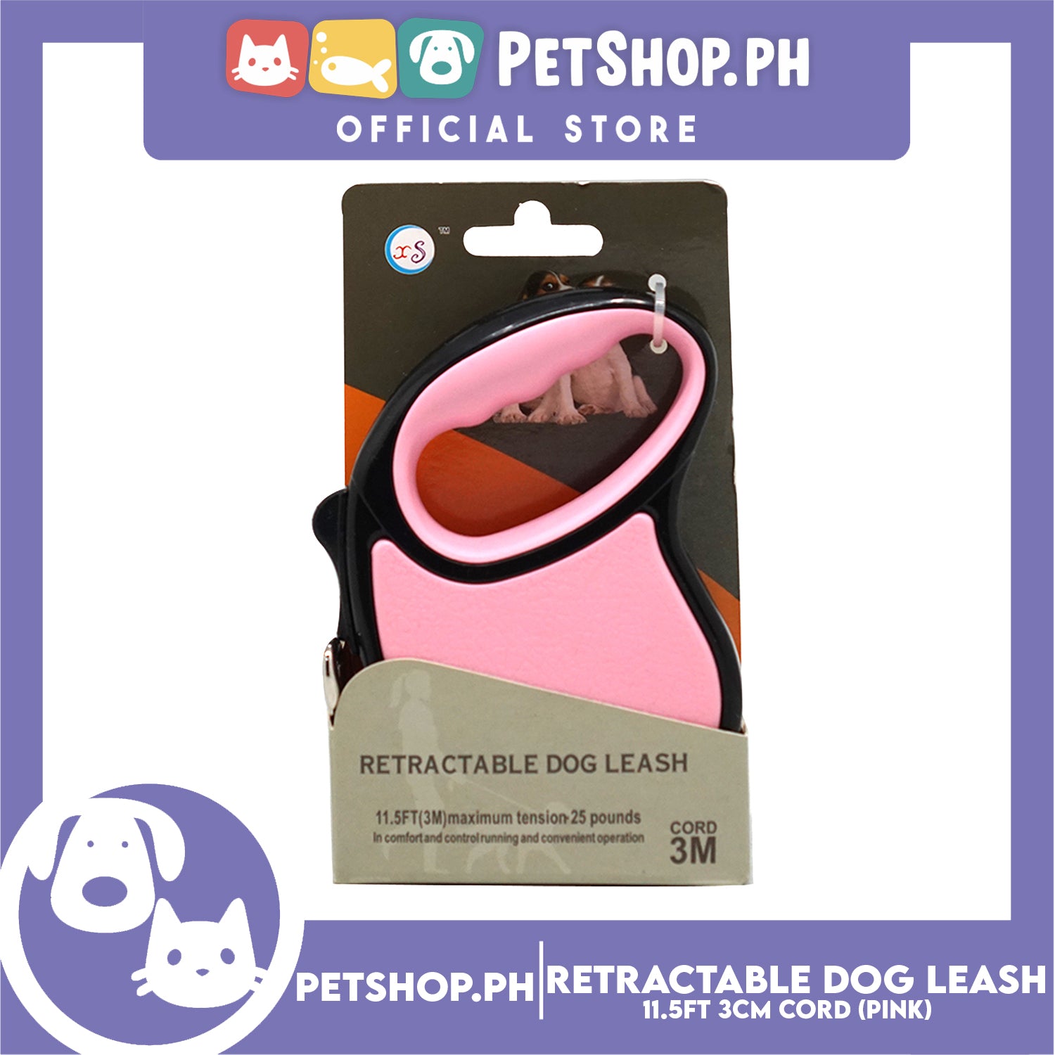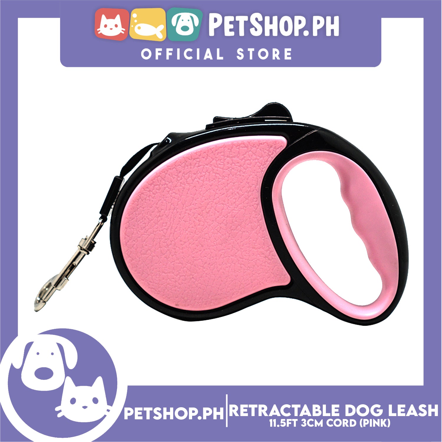 Retractable Dog Leash 11.5ft (3M) Cord with One Button Lock and Release for Up to 25lbs. Dog and Cats (Pink)