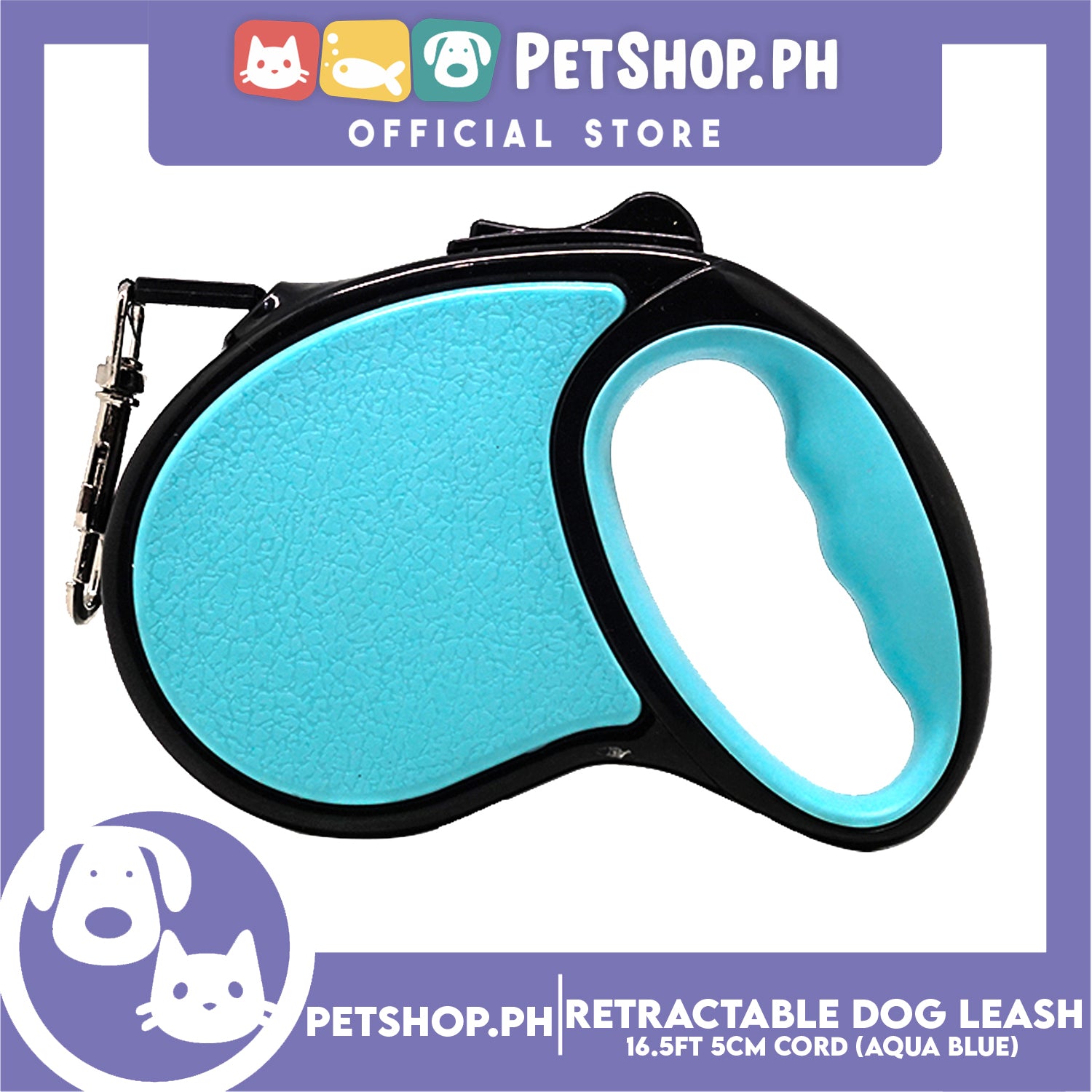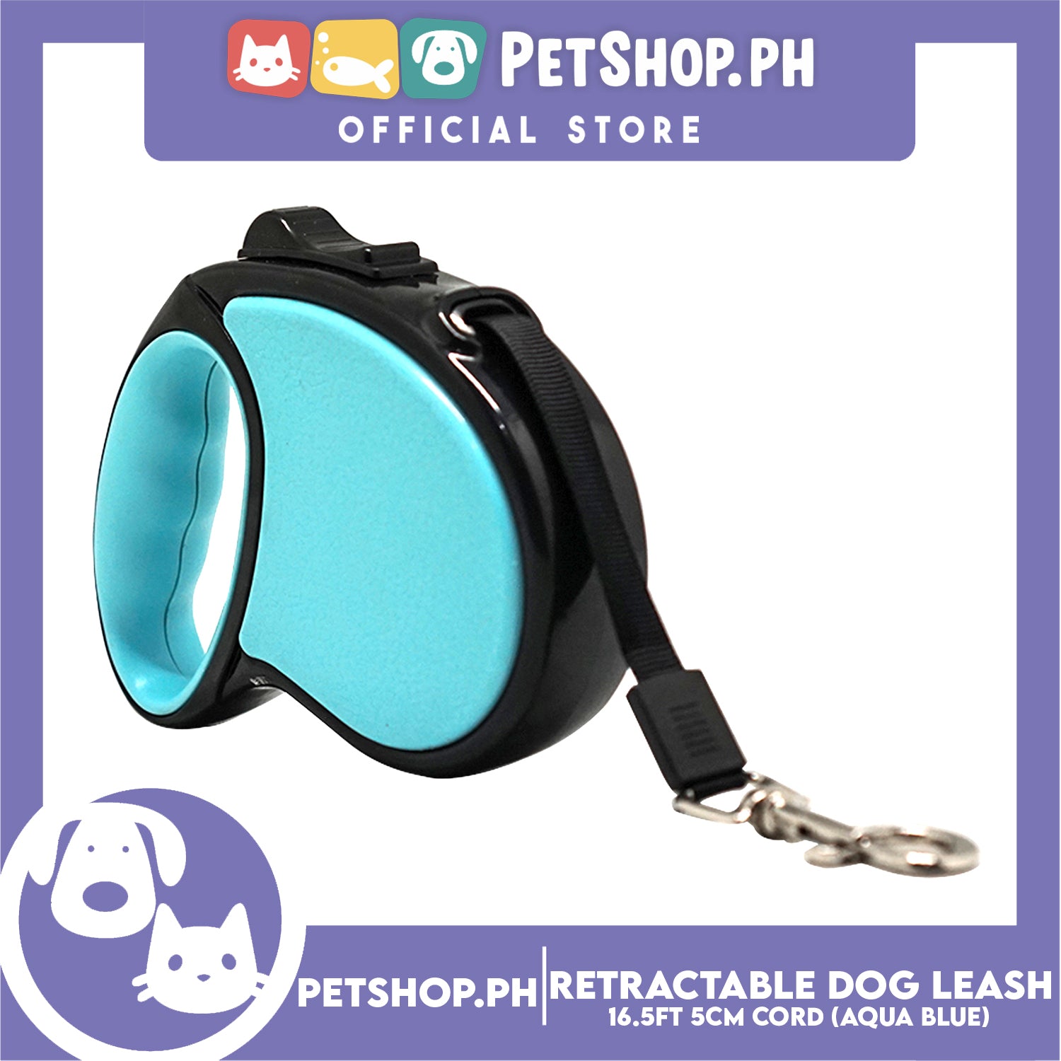 Retractable Dog Leash 16.5ft (5M) Cord with One Button Lock and Release for Up to 33lbs. Dog & Cats (Aqua Blue)