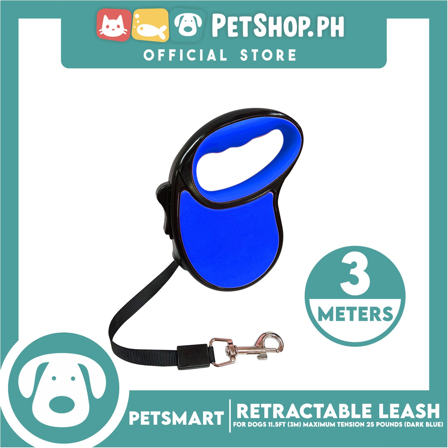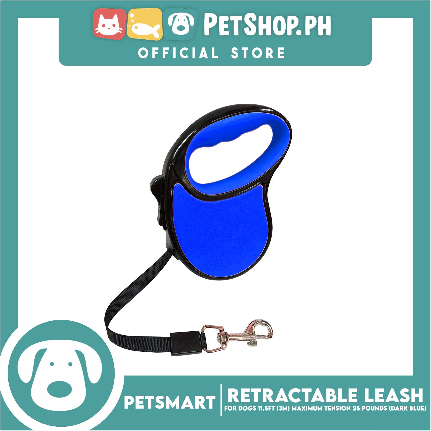 Retractable Leash for Dogs 11.5ft (3M) Maximum Tension 25pounds (Dark Blue)