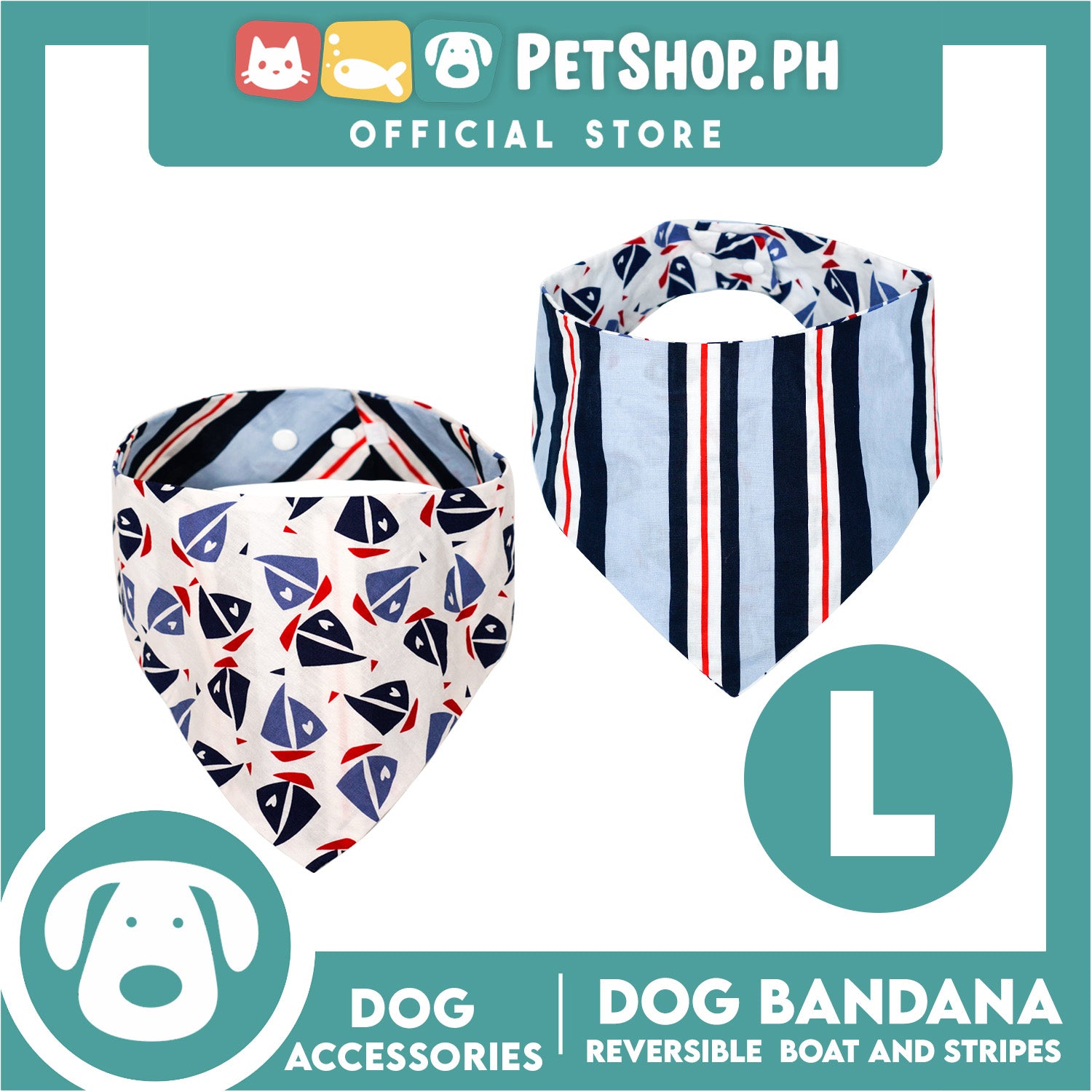 Reversible Dog Pet Bandana Scarf Boat and Stripes Design Washable Scarf (Large)