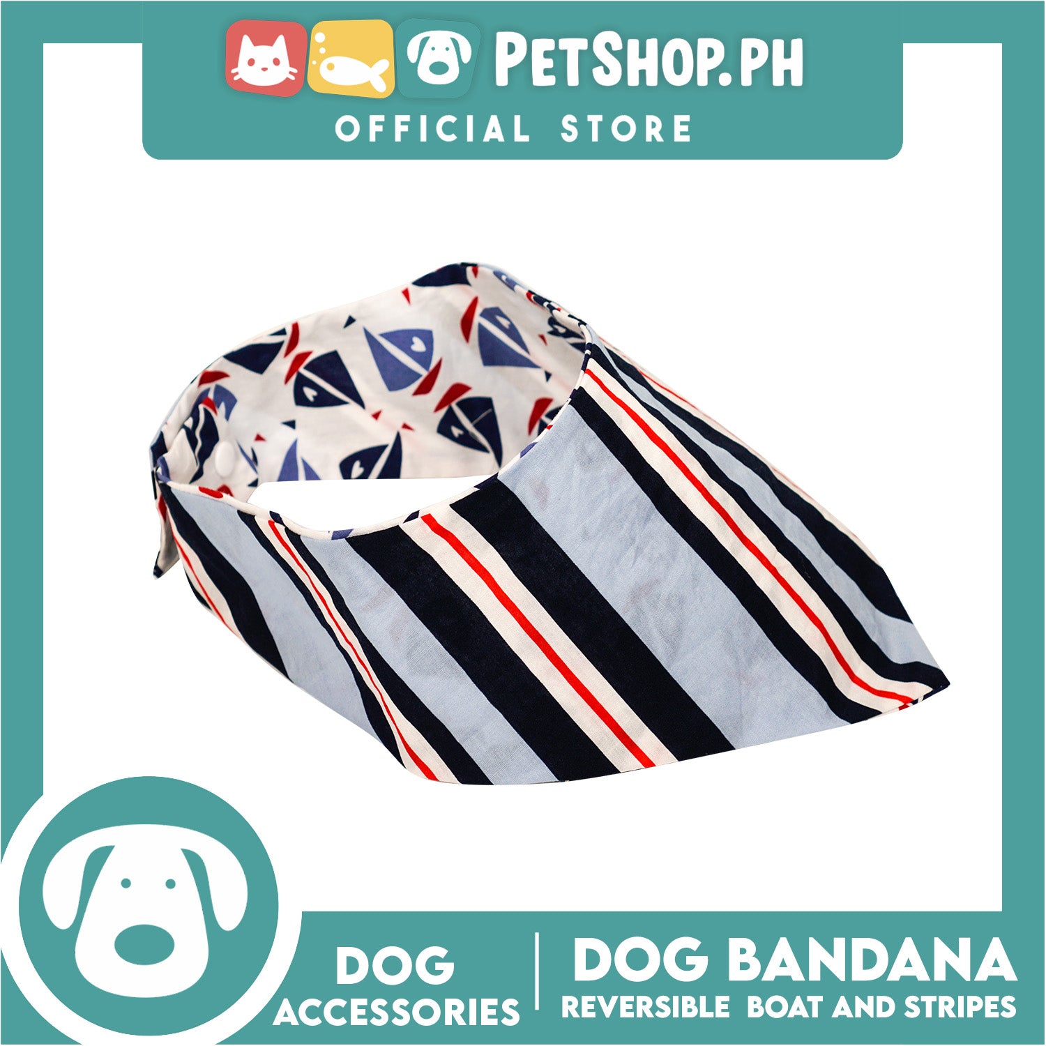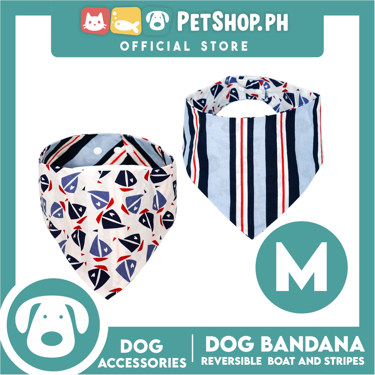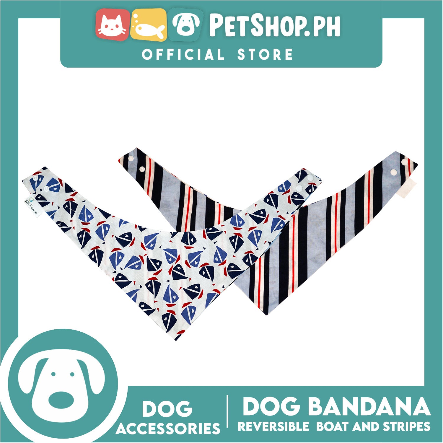 Reversible Dog Pet Bandana Scarf Boat and Stripes Design Washable Scarf (Medium)