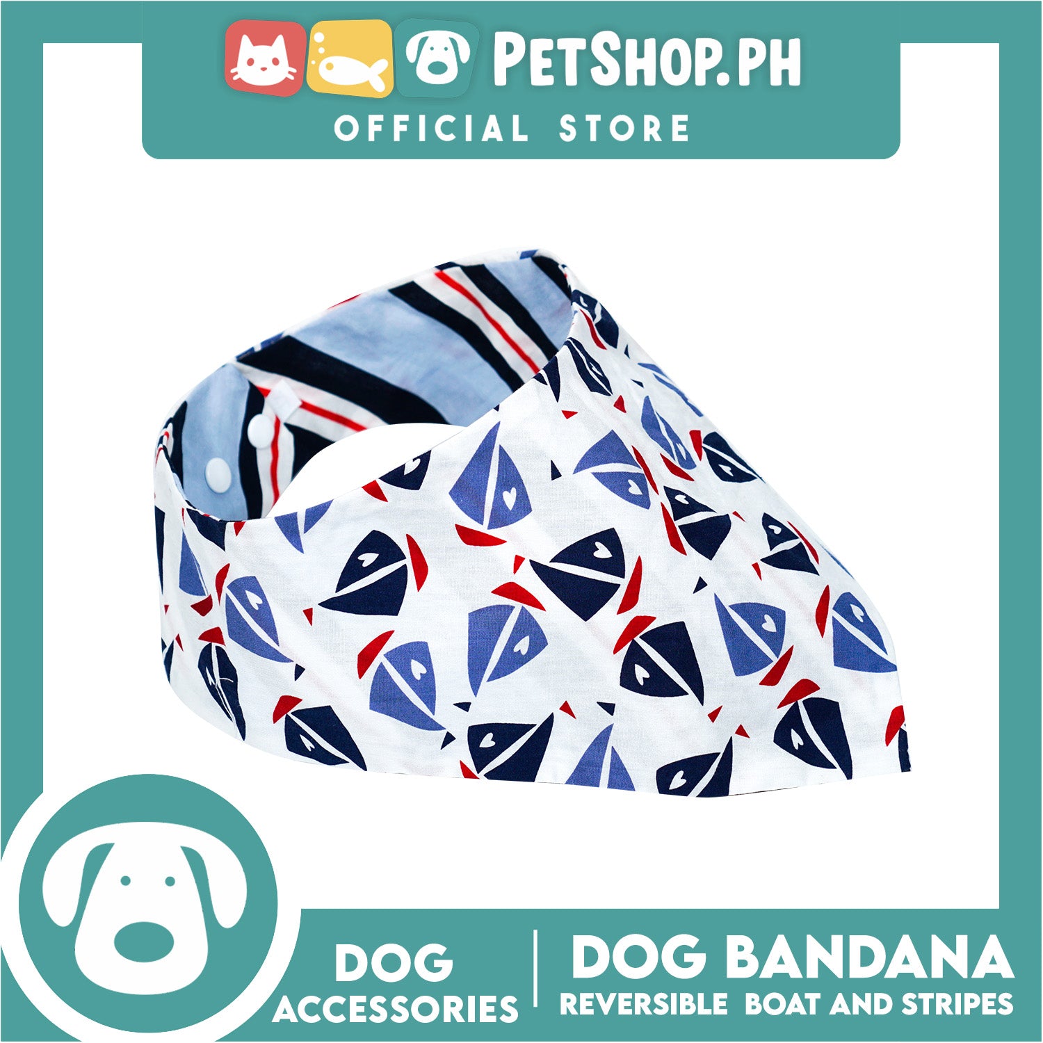 Reversible Dog Pet Bandana Scarf Boat and Stripes Design Washable Scarf (Small)