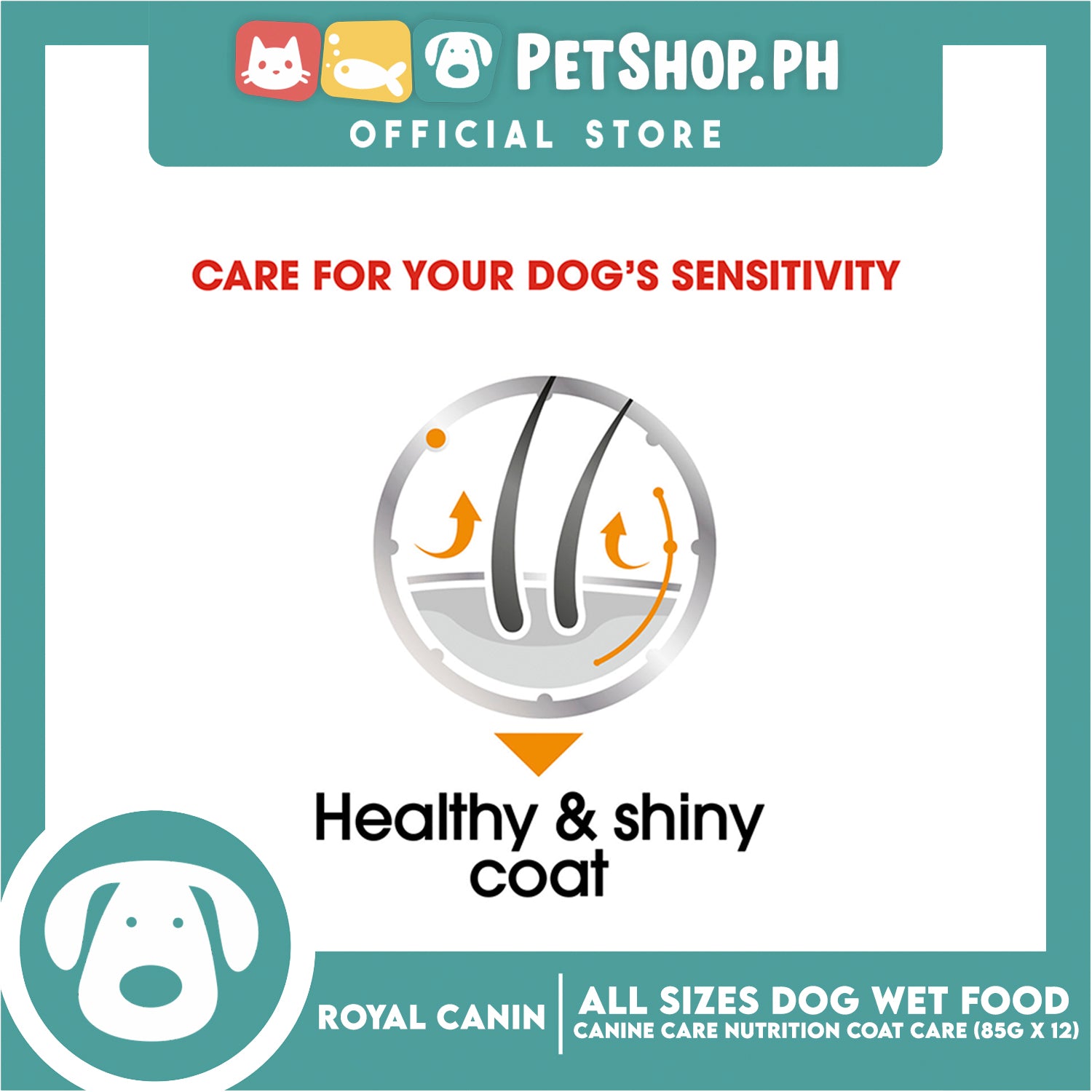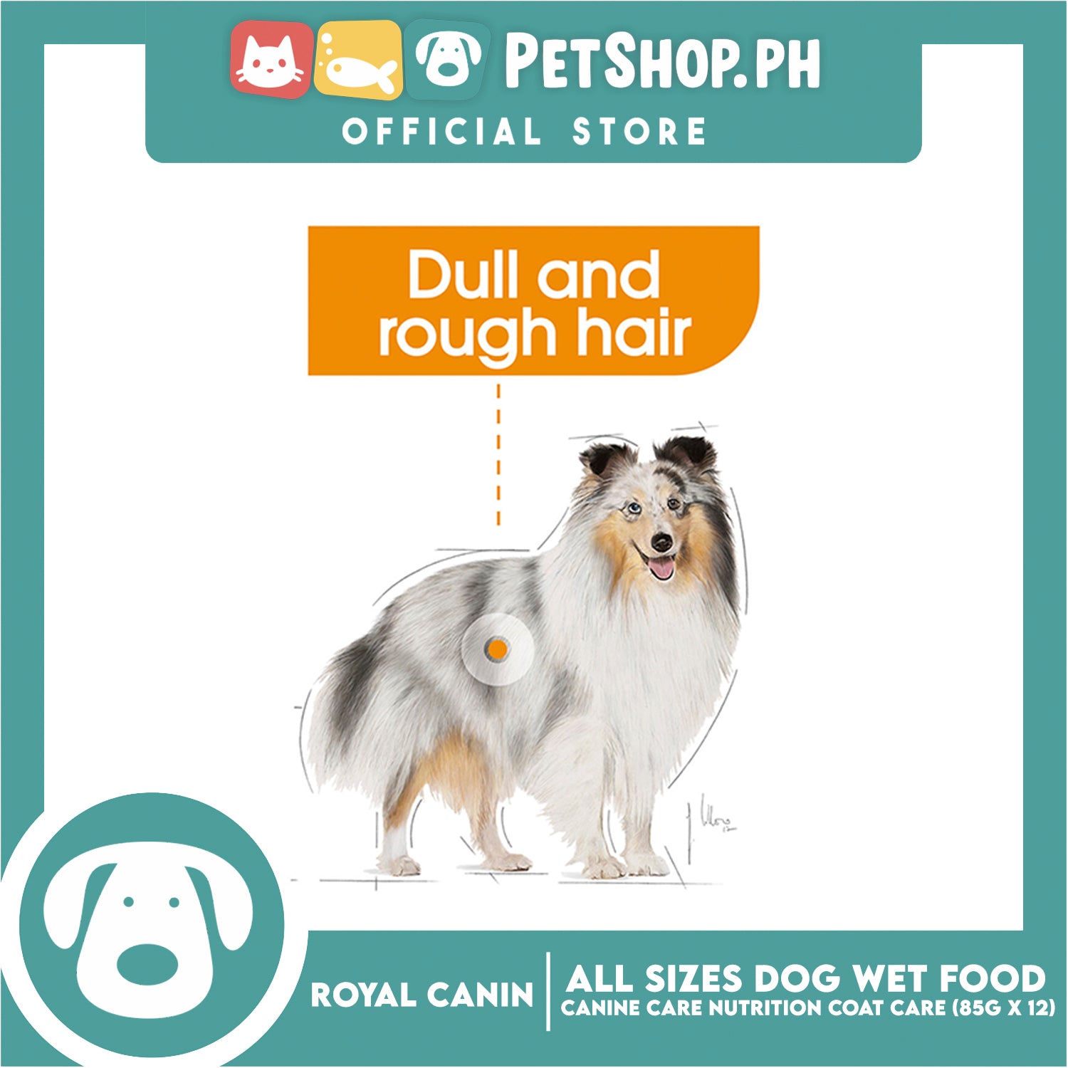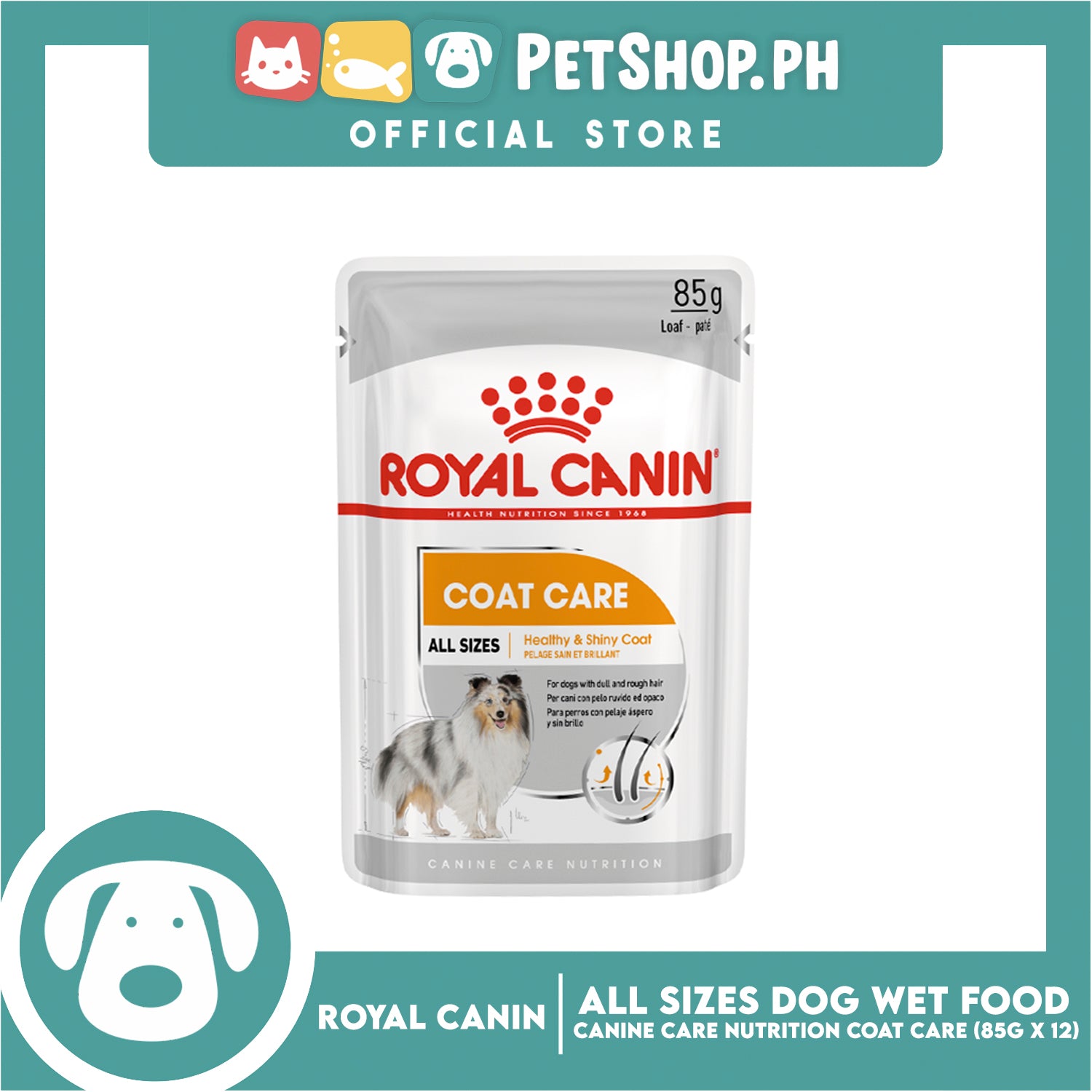 - ROYAL CANIN® Coat Care Loaf wet food is formulated exclusively to support your dog’s skin and coat health. Suitable for adult dogs of all shapes, sizes and breeds, this nutritionally complete formula is specially tailored to help soothe and nourish your dog’s sensitive skin while also enriching the vitality of your dog’s coat.