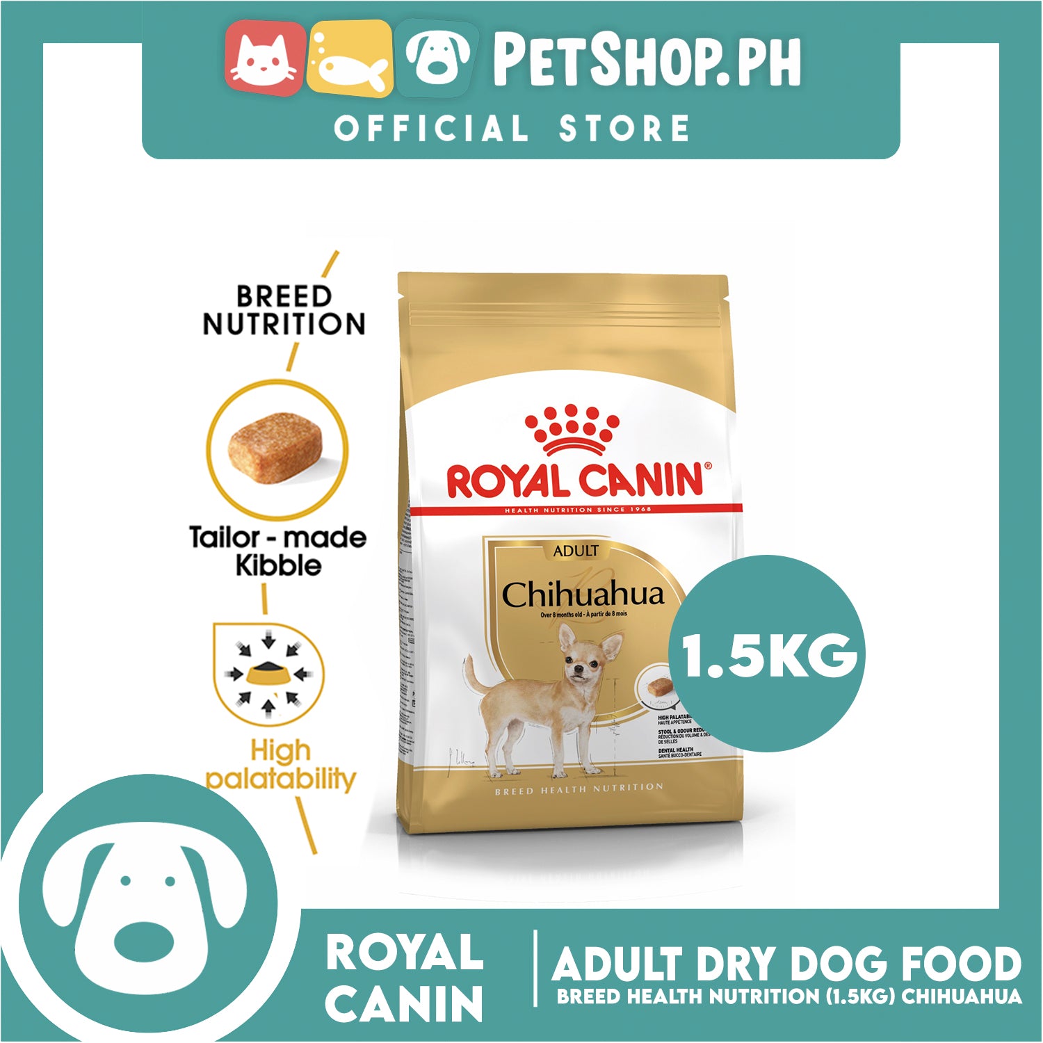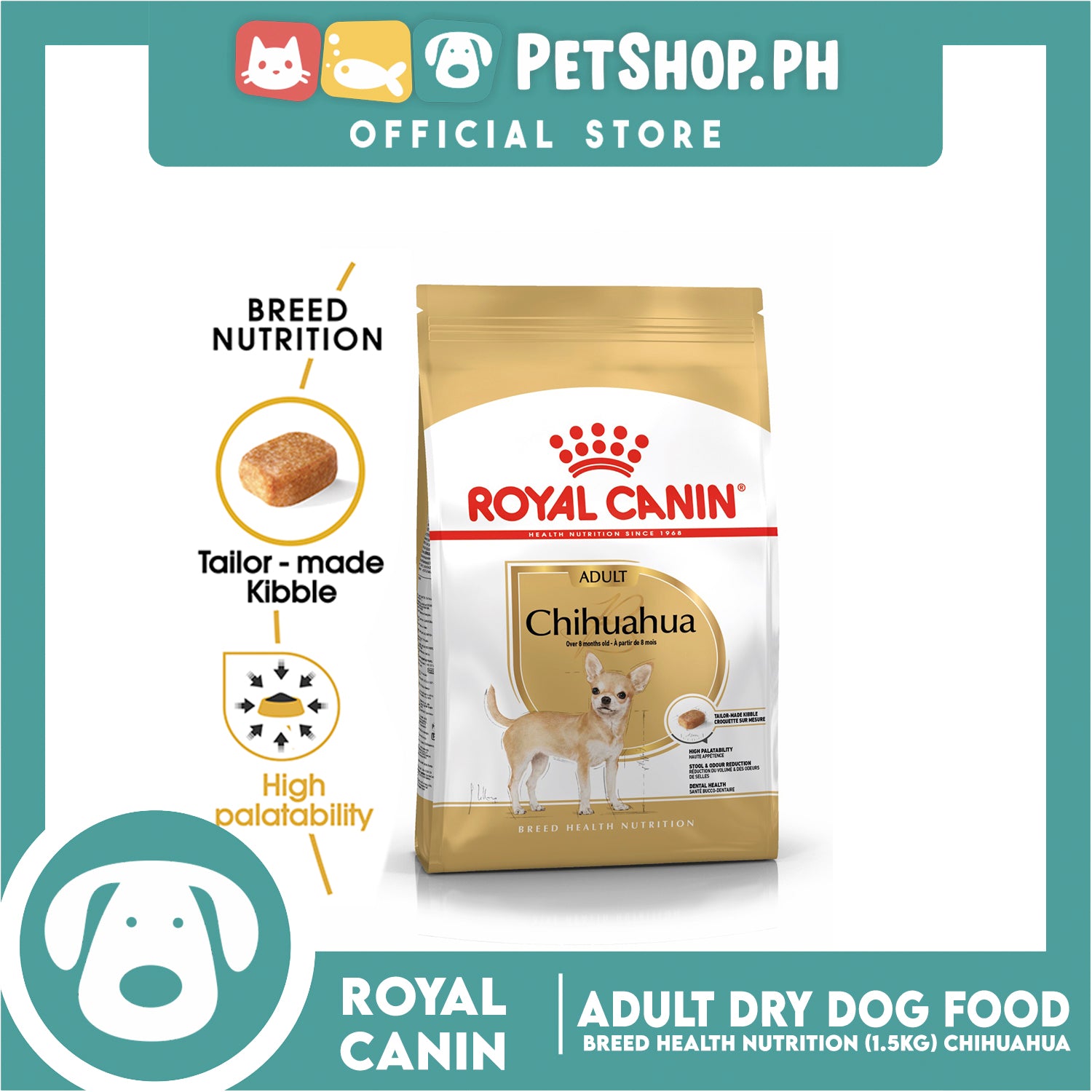 - It's not unusual for small breed dogs like the Chihuahua to have a fussy appetite. If your dog has been known to display signs of fussiness when it comes to mealtimes, rest assured that this formula takes that into account. ROYAL CANIN® Chihuahua Adult is highly palatable and satisfies the appetites of even the fussiest Chihuahuas, thanks to the combination of these 3 factors: a careful selection of exceptional aromas and flavors along with a customized kibble size and shape. The nutrients in ROYAL CANIN® Chihuahua Adult also help to support your dog's digestive function, resulting in a reduced quantity of stool - and a reduced odour! To help support your adult Chihuahua's dental health, ROYAL CANIN® Chihuahua Adult contains calcium chelators which help to slow down the formation and build-up of tartar.