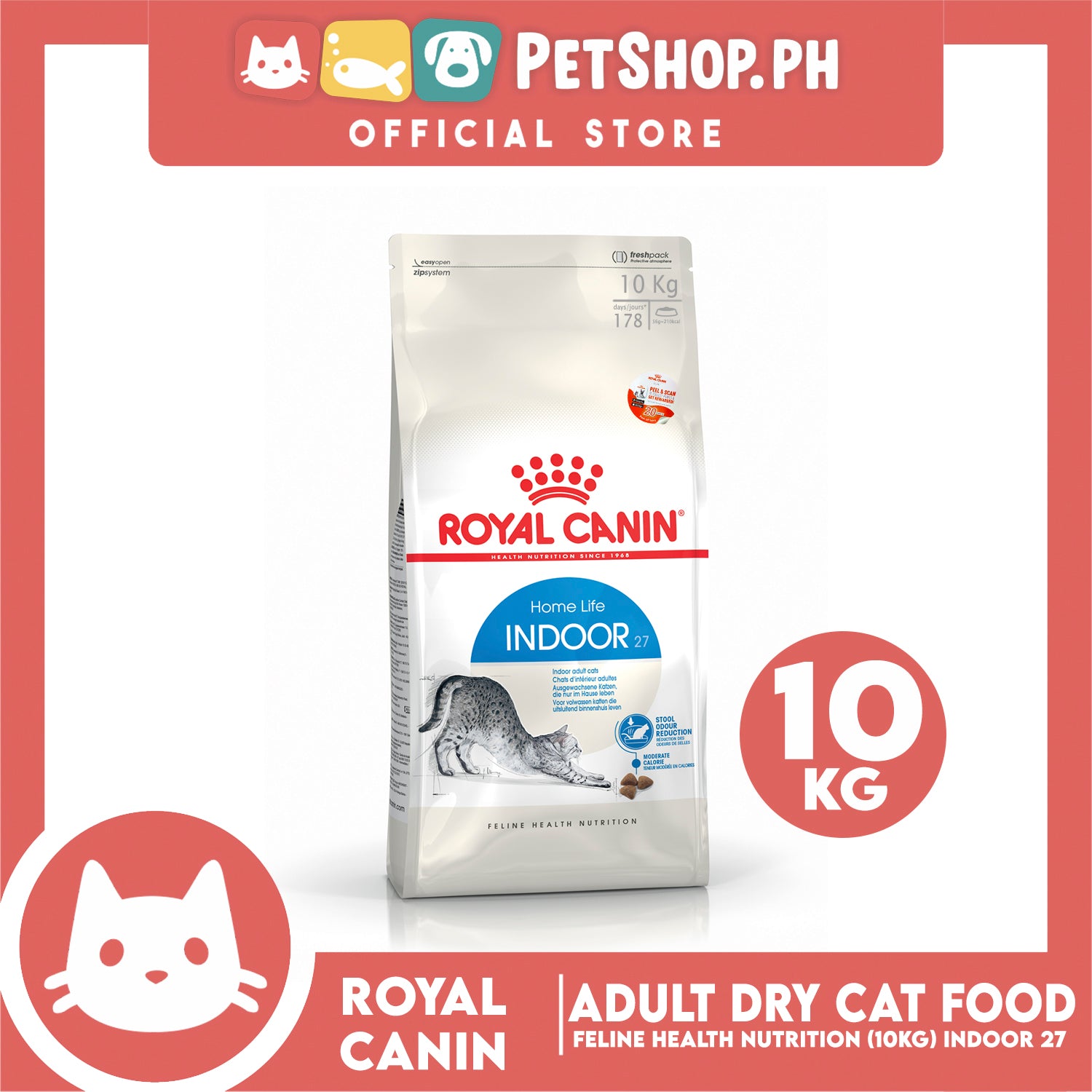 Royal Canin Indoor 27 (10kg) Adult Dry Cat Food - Feline Health Nutrition