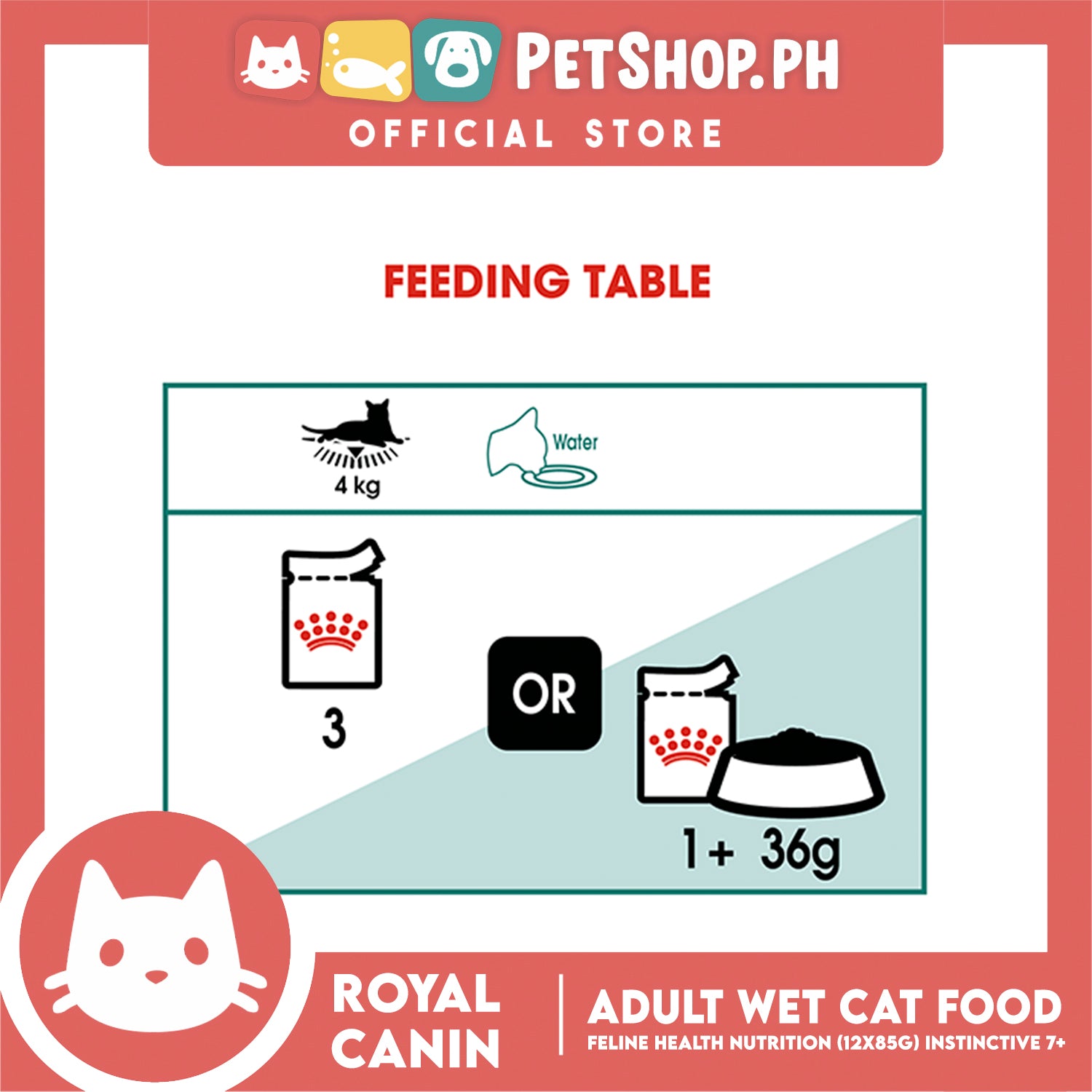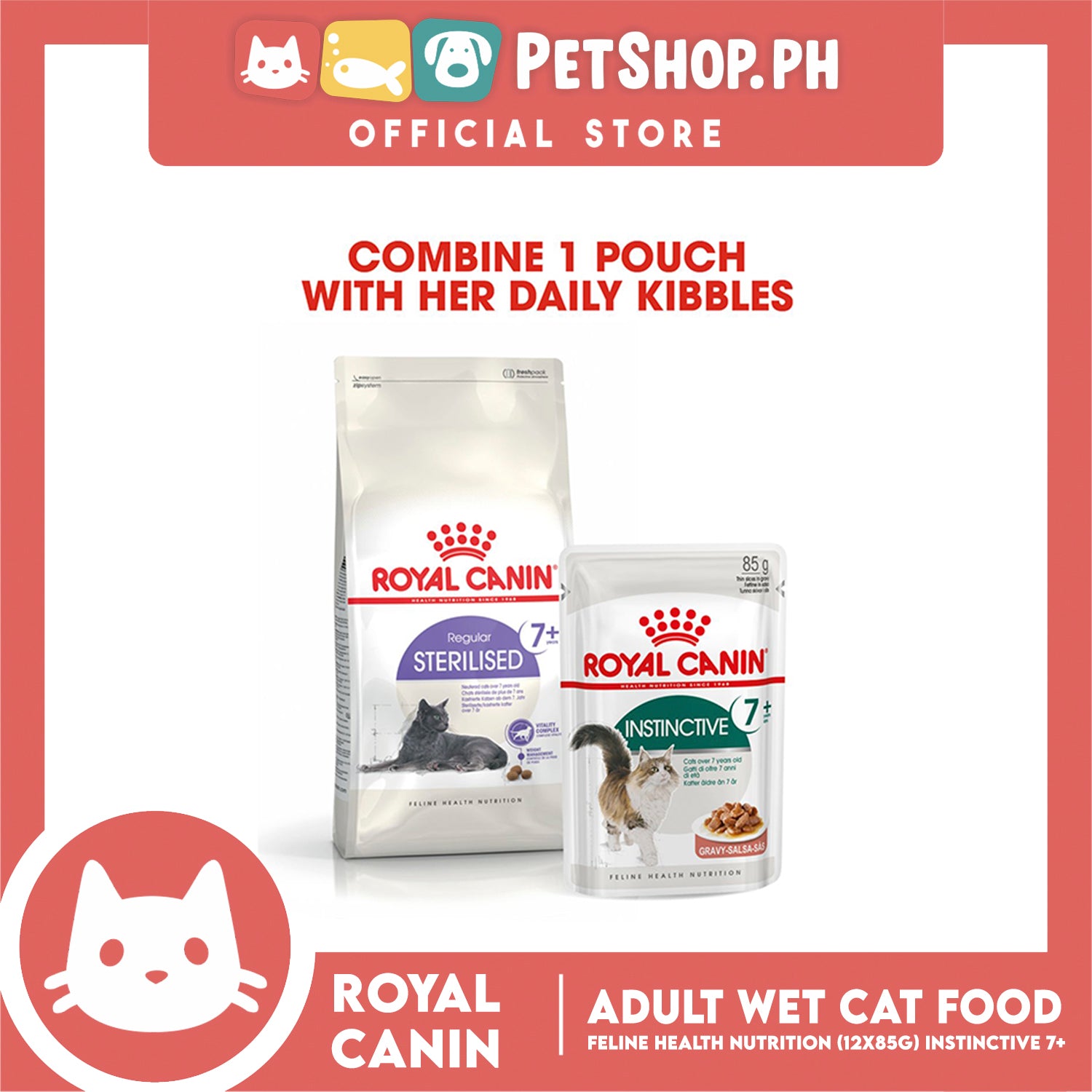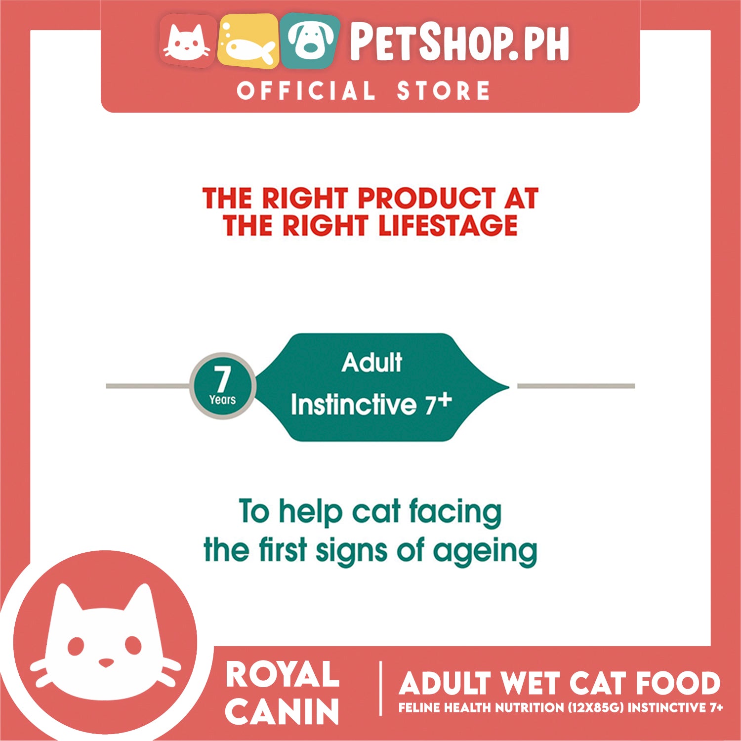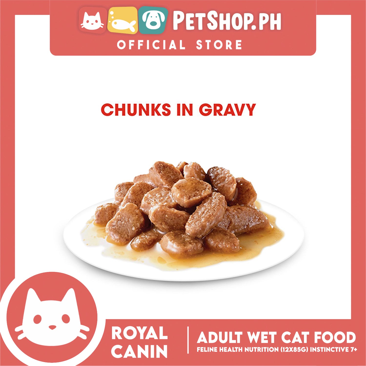 - Suitable for adult cats over 7 years of age, ROYAL CANIN® Instinctive 7+ in Gravy wet cat food is specially formulated with all the nutritional needs of your adult cat in mind. As your cat gets older, its activity levels will naturally decrease over time. ROYAL CANIN® Instinctive 7+ in Gravy contains an exclusive complex of antioxidants that help to support your cat's vitality.
