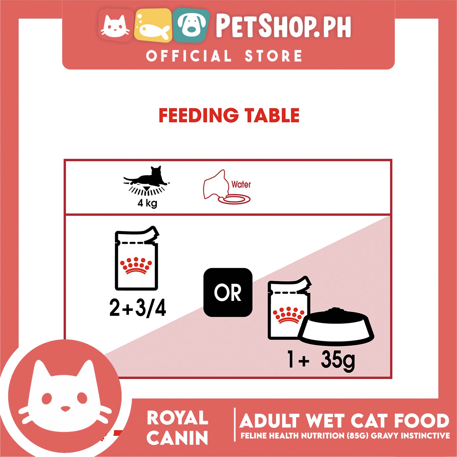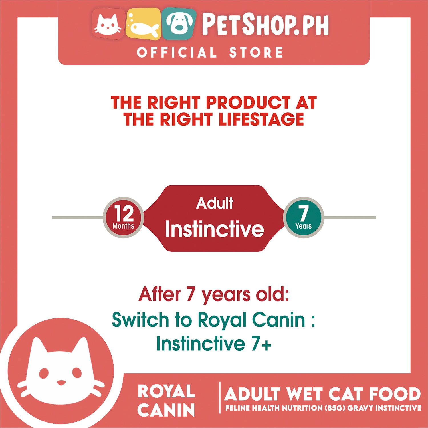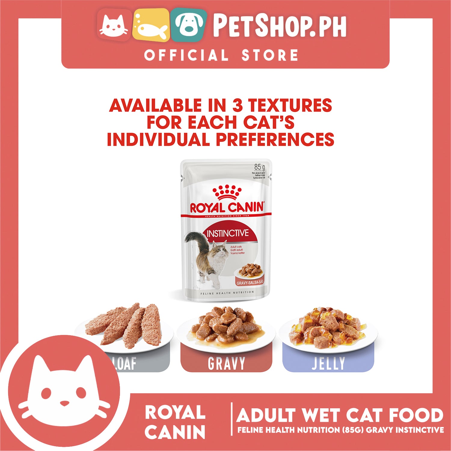 - When feeding your cat, it is possible to align what it actually wants to eat with what it needs to eat in order to maintain nutritional health. Choosing the right food for your cat is essential in supporting a healthy lifestyle, and the benefit of your cat enjoying its food makes it all the better. ROYAL CANIN® Instinctive in Gravy wet cat food is formulated to match the optimal Macro Nutritional Profile instinctively preferred by adult cats. With carefully selected nutrients included for optimal palatability, the end product is a dish that your cat simply won't be able to resist. Thanks to the inclusion of a vast assortment of vitamins, minerals and amino acids (all needed to maintain general health and regular growth), your cat will be consuming a highly-digestible and nutritionally-balanced food.