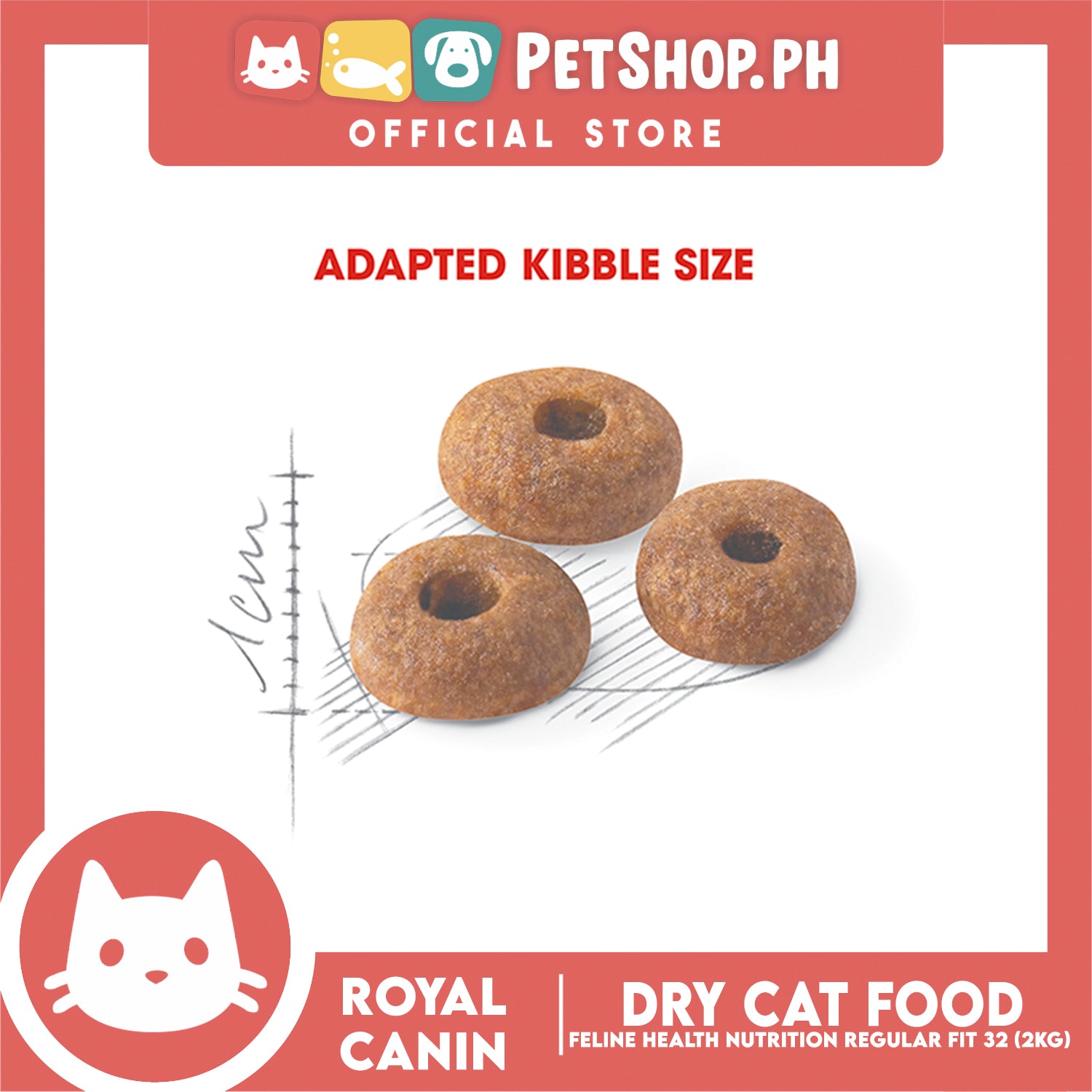 - ROYAL CANIN® Fit 32 dry food has a kibble with a unique shape and flavour that ensures high acceptance and can support jaw muscles.