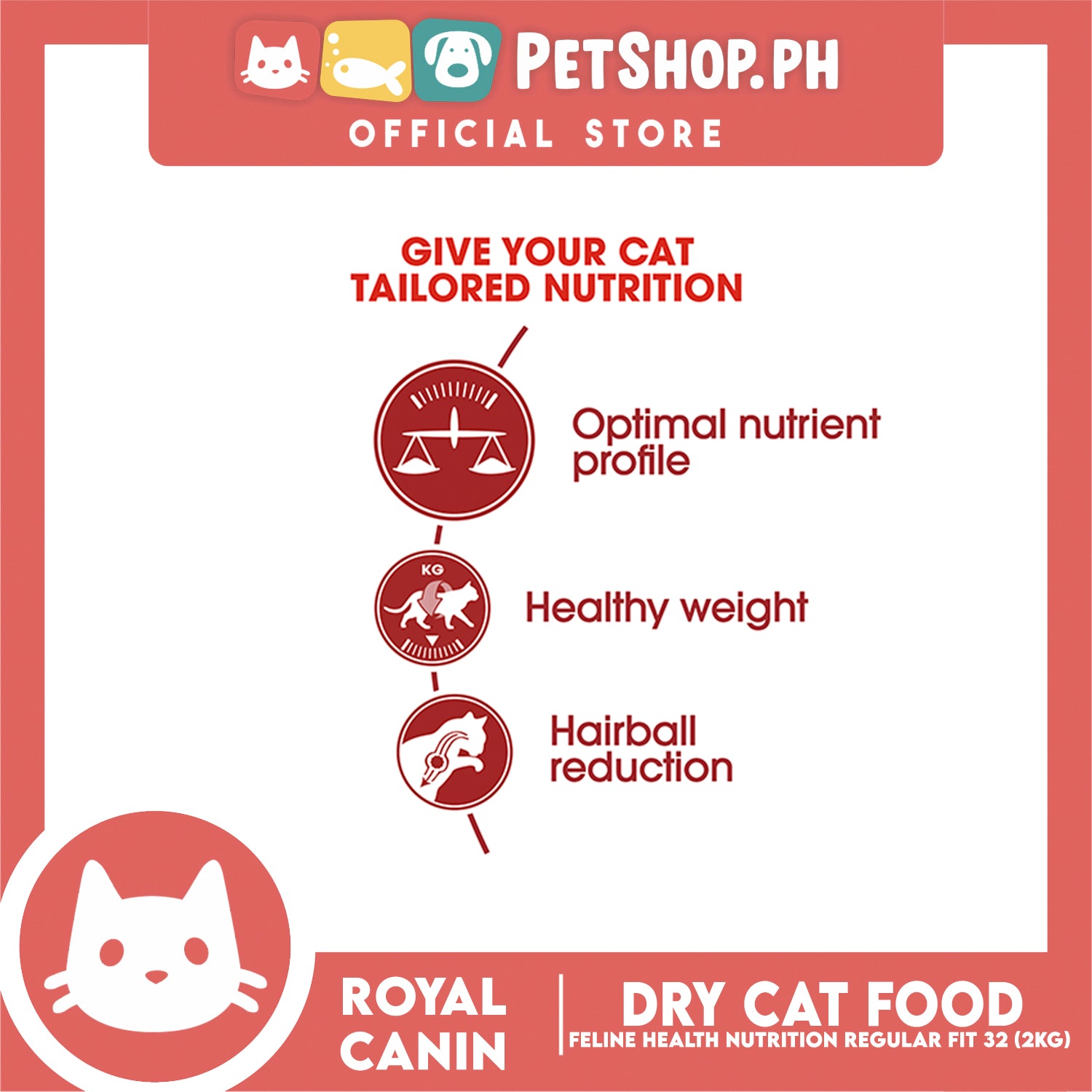 - Although your adult cat is active and in good health, maintaining its health is important. Even healthy cats require a high quality, healthy diet that contains the right level of beneficial nutrients to support them throughout their adult years.ROYAL CANIN® Fit 32 is suitable for adult cats between 1-7 years old, it's been specially designed to meet all of your cat's nutritional requirements for supporting and maintaining the healthy situation that your cat is currently in.