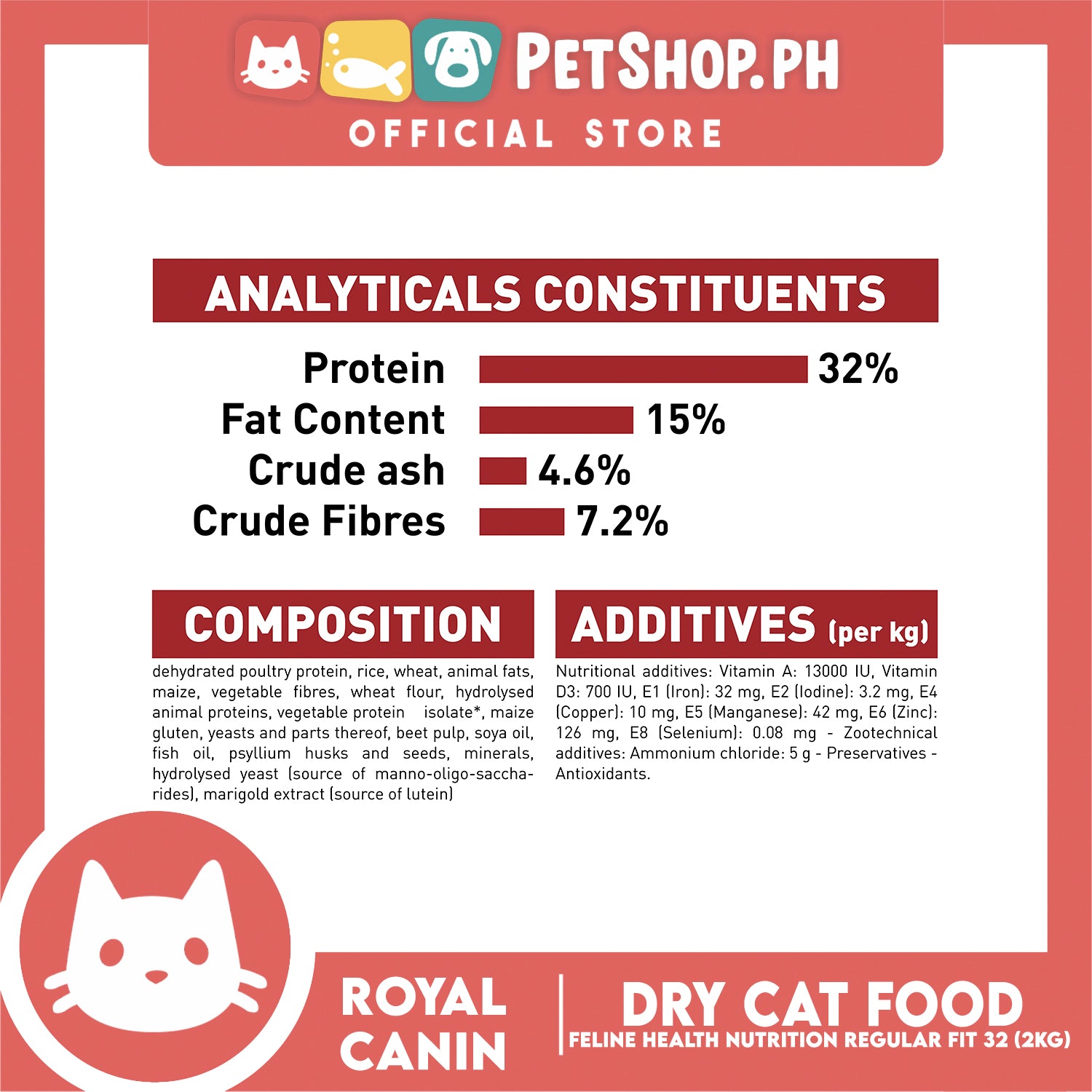 - To meet all the requirements of adulthood, cats need nutrition of a high quality. FIT 32 is a balanced and complete feed which contains the right level of beneficial nutrients to maintain adult cats in good health.