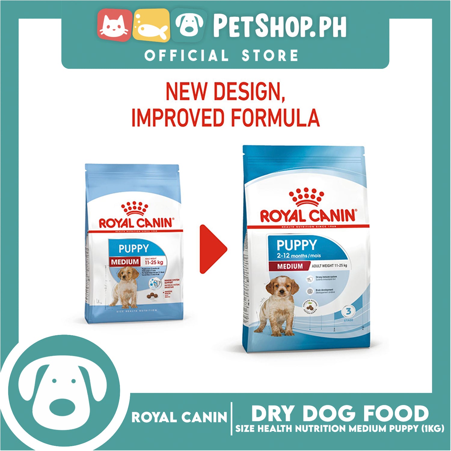- ROYAL CANIN® Medium Puppy dry food is specially formulated to support the nutritional needs of medium-sized puppies. This formula is suitable for 2 to 12-month-old puppies that should reach an adult weight of 11kg to 25kg.