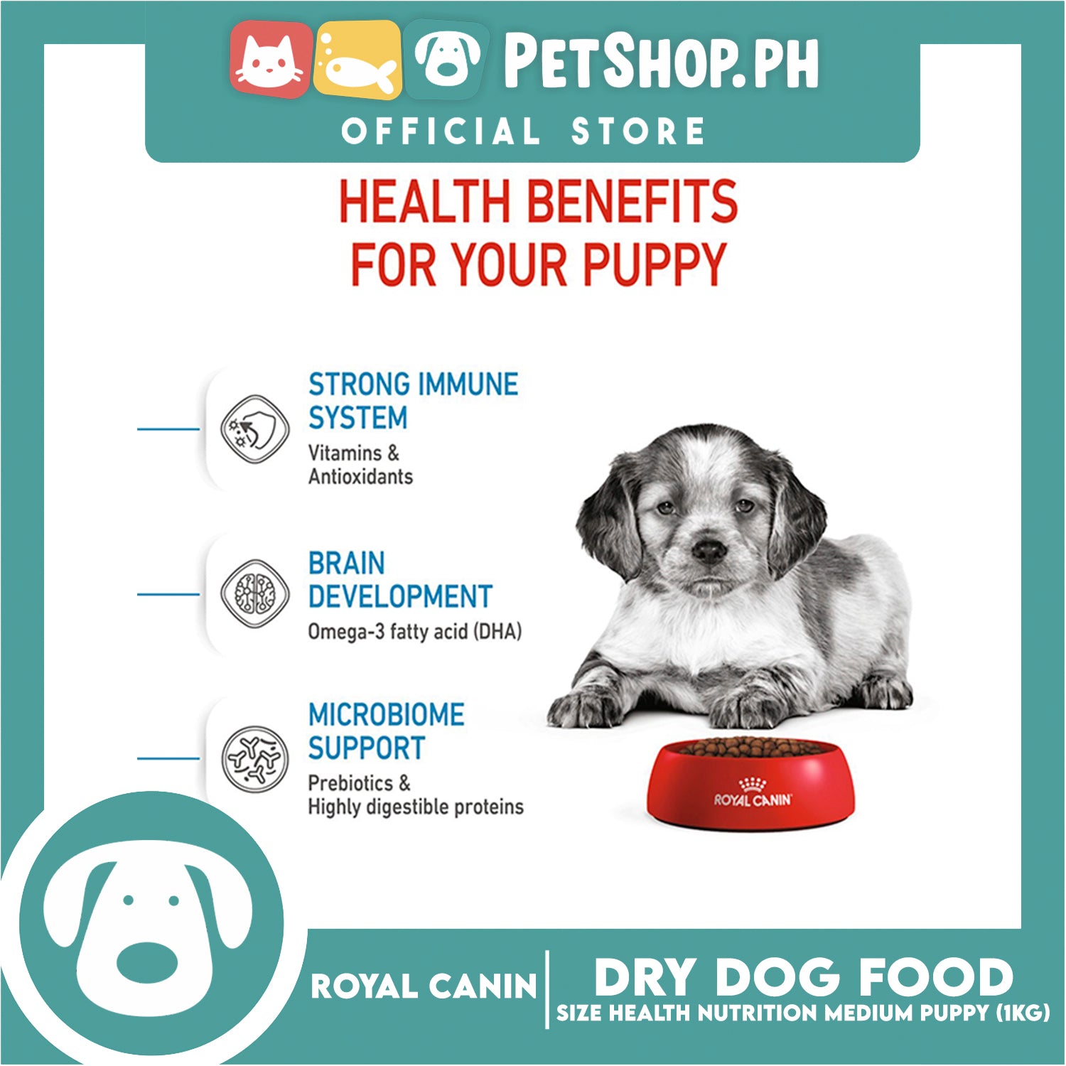 - The kibble in ROYAL CANIN® Medium Puppy has been designed to be large enough to discourage bolting but not so big that a puppy becomes reluctant to eat. A mechanical brushing effect as your puppy chews helps to support dental health.