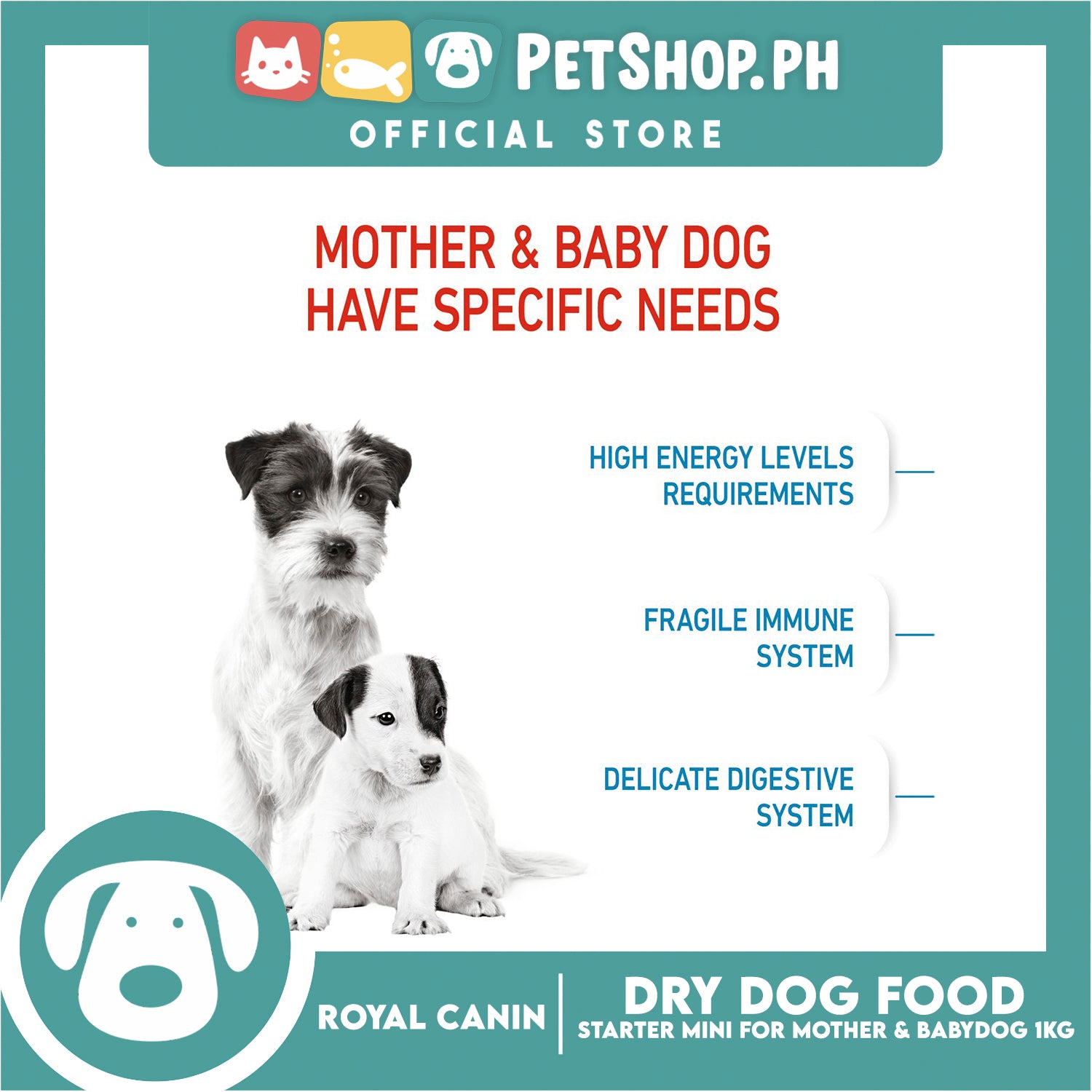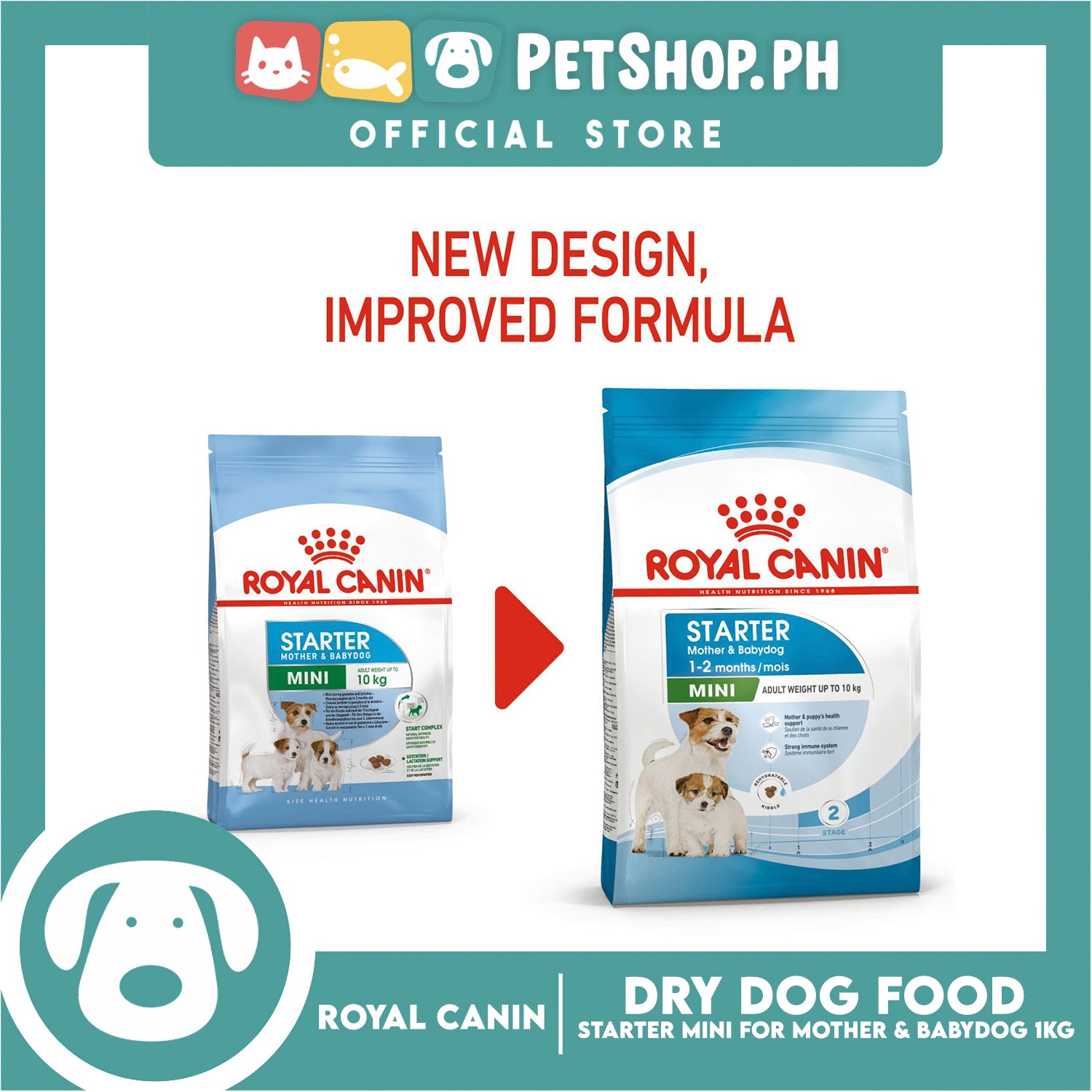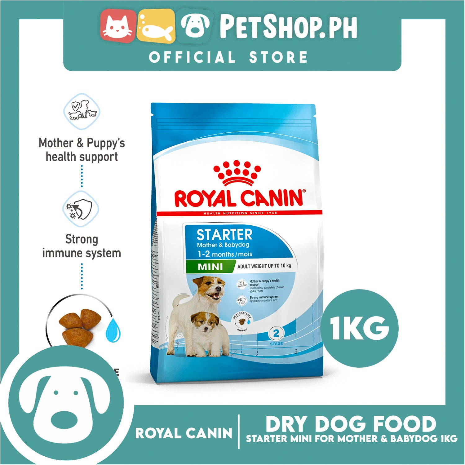 - ROYAL CANIN® Mini Starter Mother & Babydog dry food is specially formulated to support the nutritional needs of new mothers and their puppies. This formula is suitable for small-sized mother dogs that weigh up to 10 kg, and weaning puppies up to 2 months old.