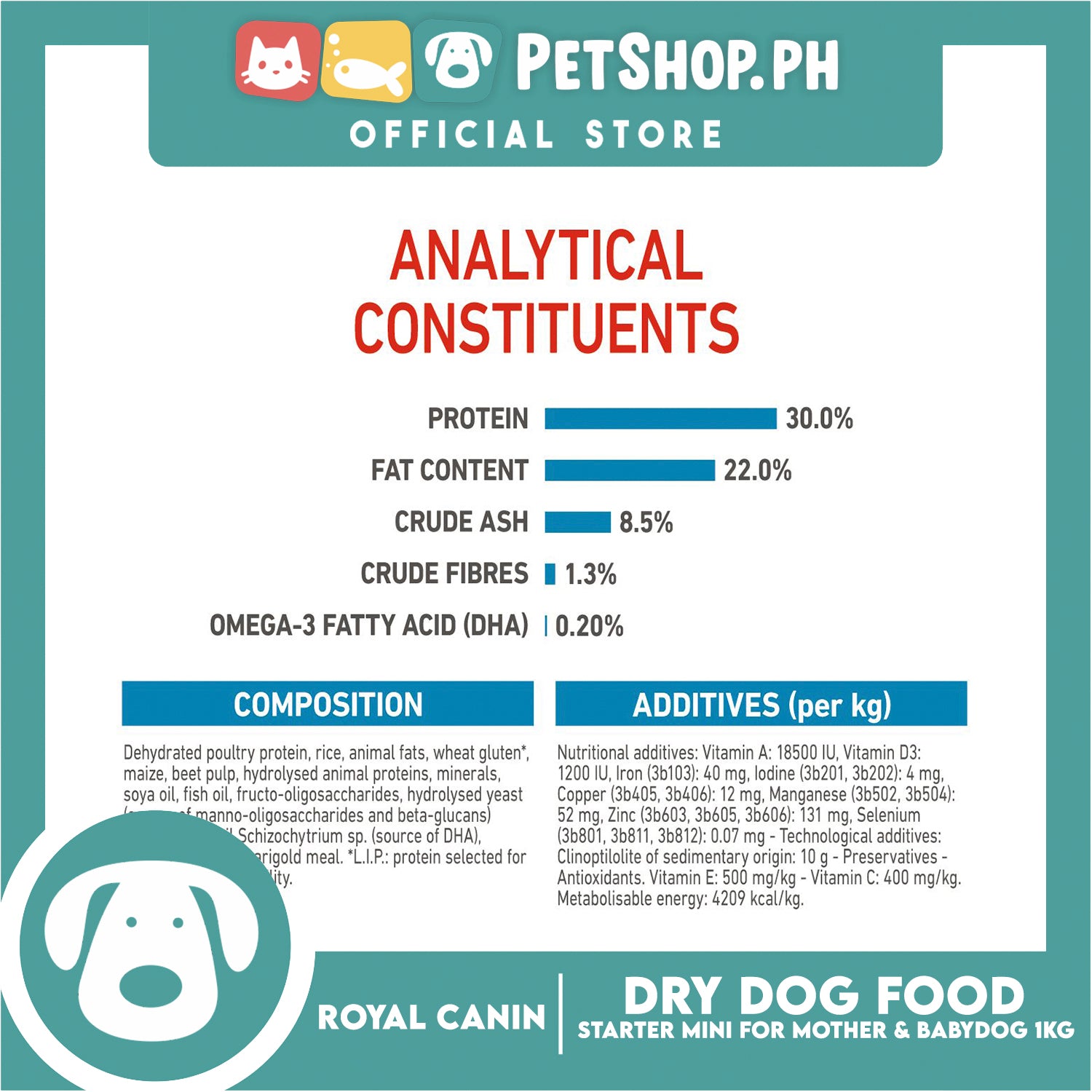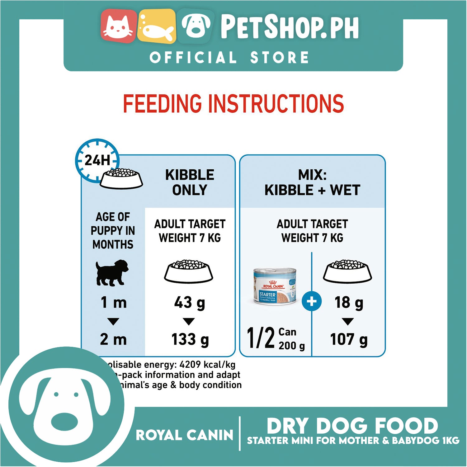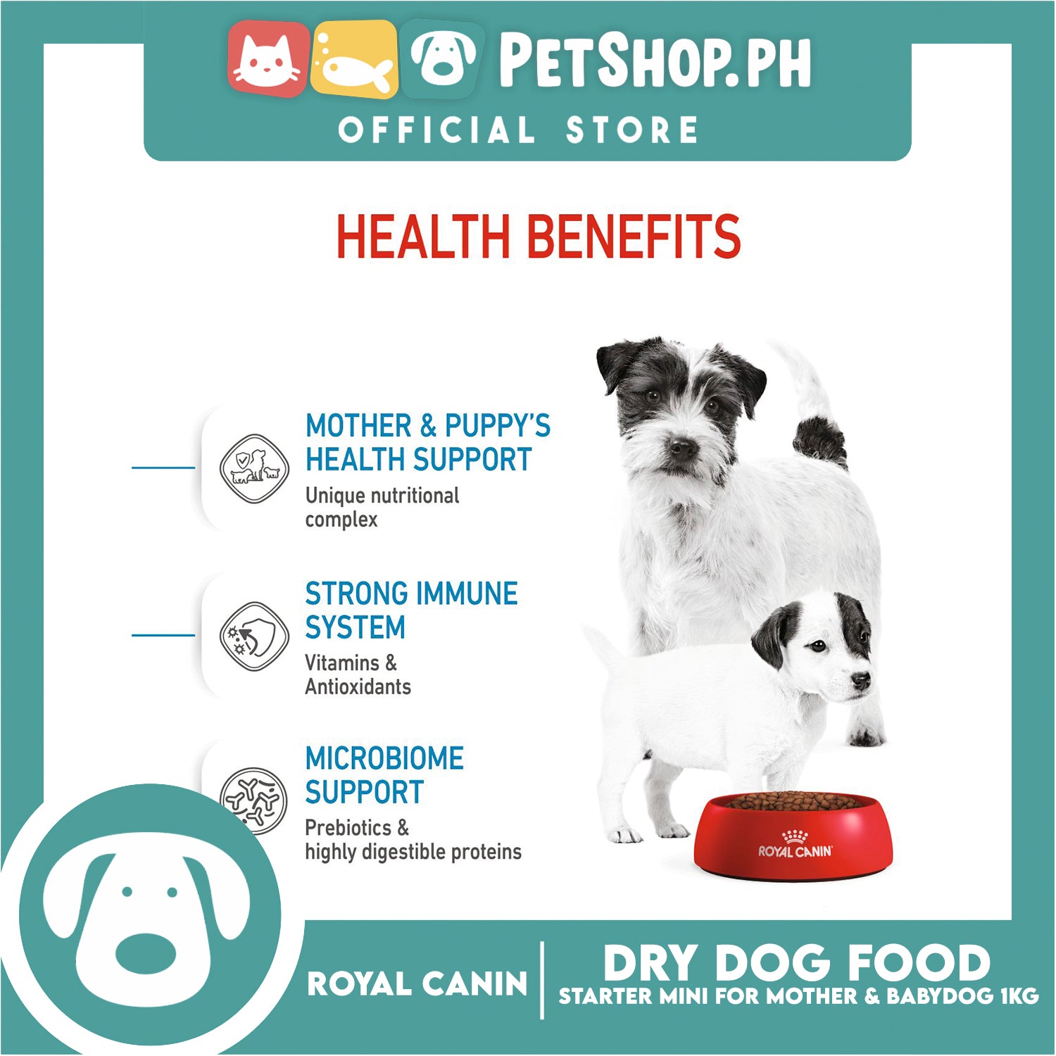 - ROYAL CANIN® Mini Starter Mother & Babydog dry food is specially formulated to support the nutritional needs of new mothers and their puppies. This formula is suitable for small-sized mother dogs that weigh up to 10 kg, and weaning puppies up to 2 months old.