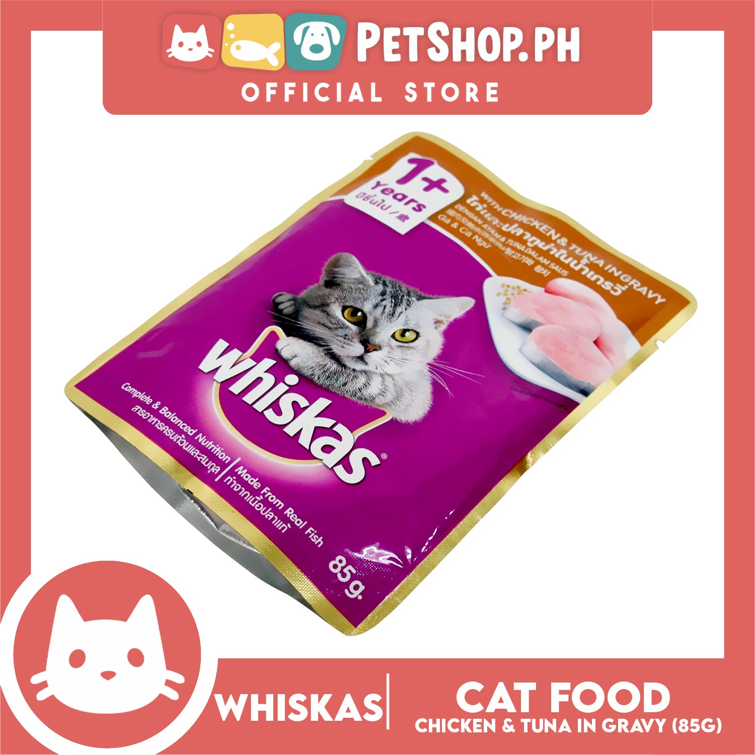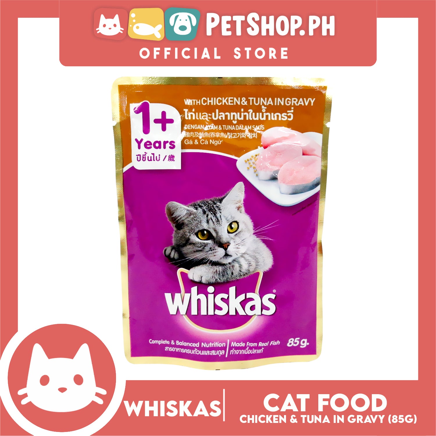 - Whiskas chicken and tuna is made from real fish, gently cooked to perfection to bring out the very best in taste in a convenient single serve format.
