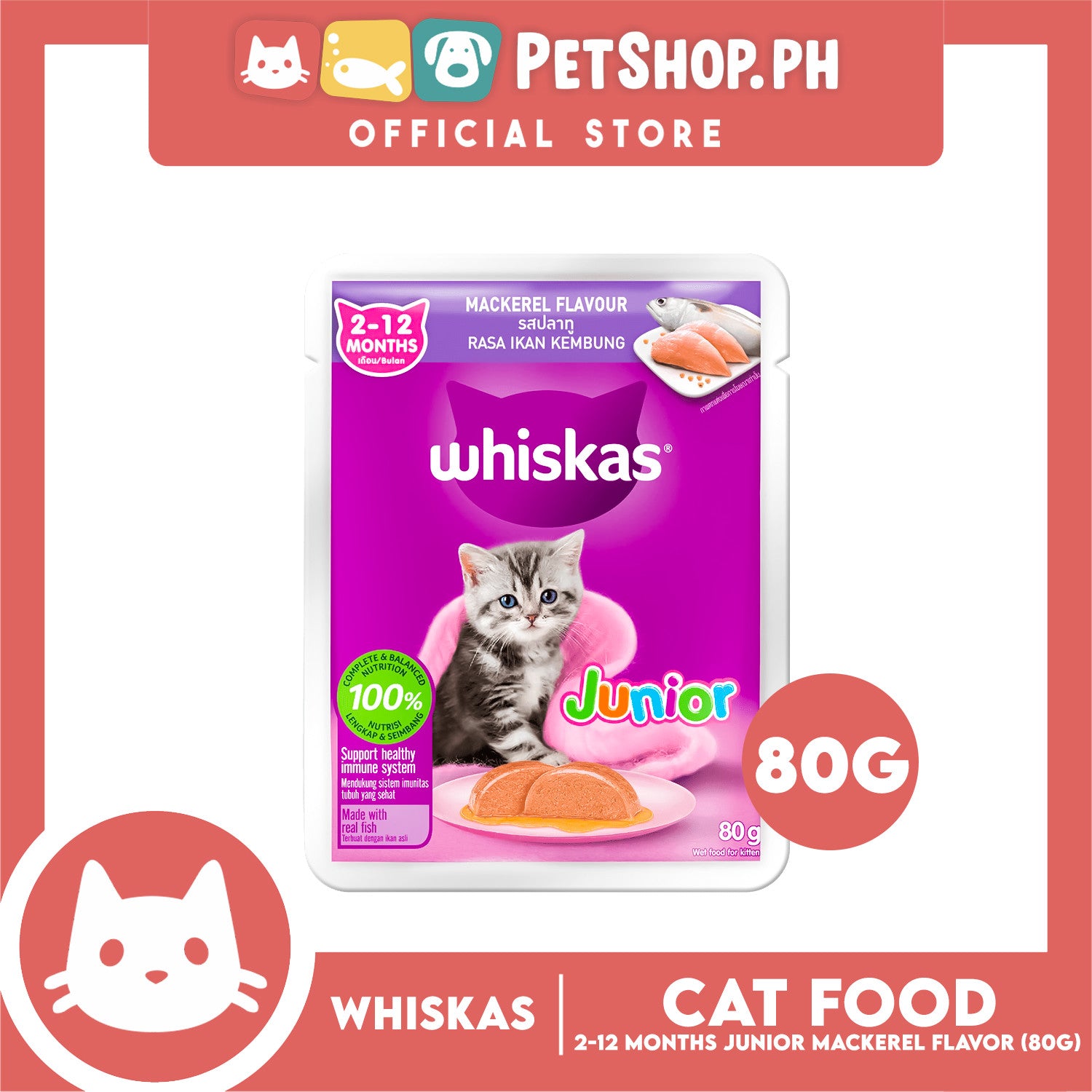 Whiskas Junior Mackerel Pouch Wet Cat Food 80g